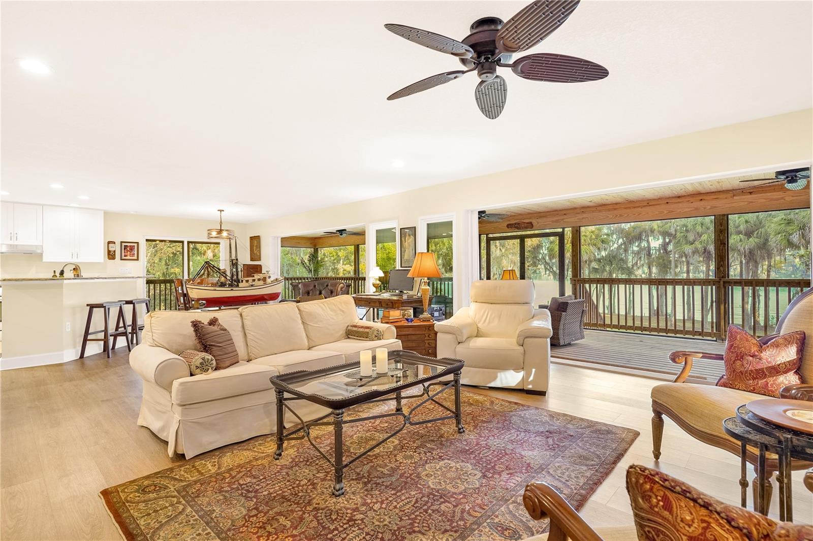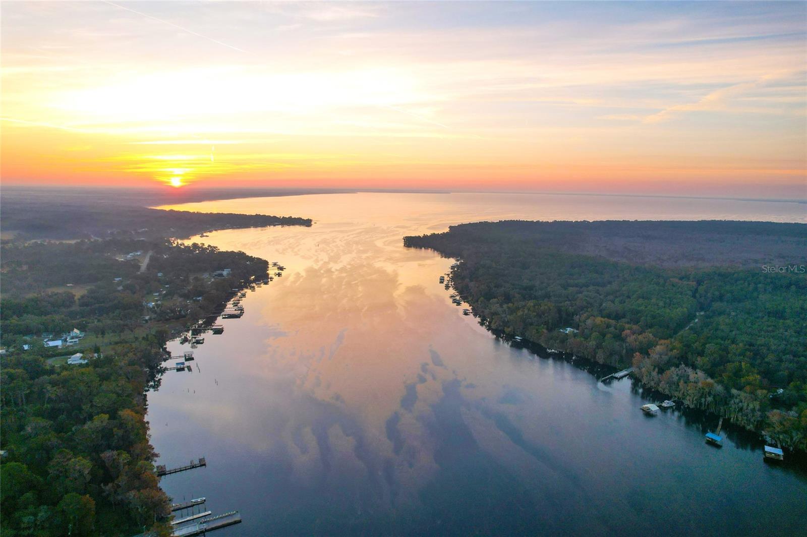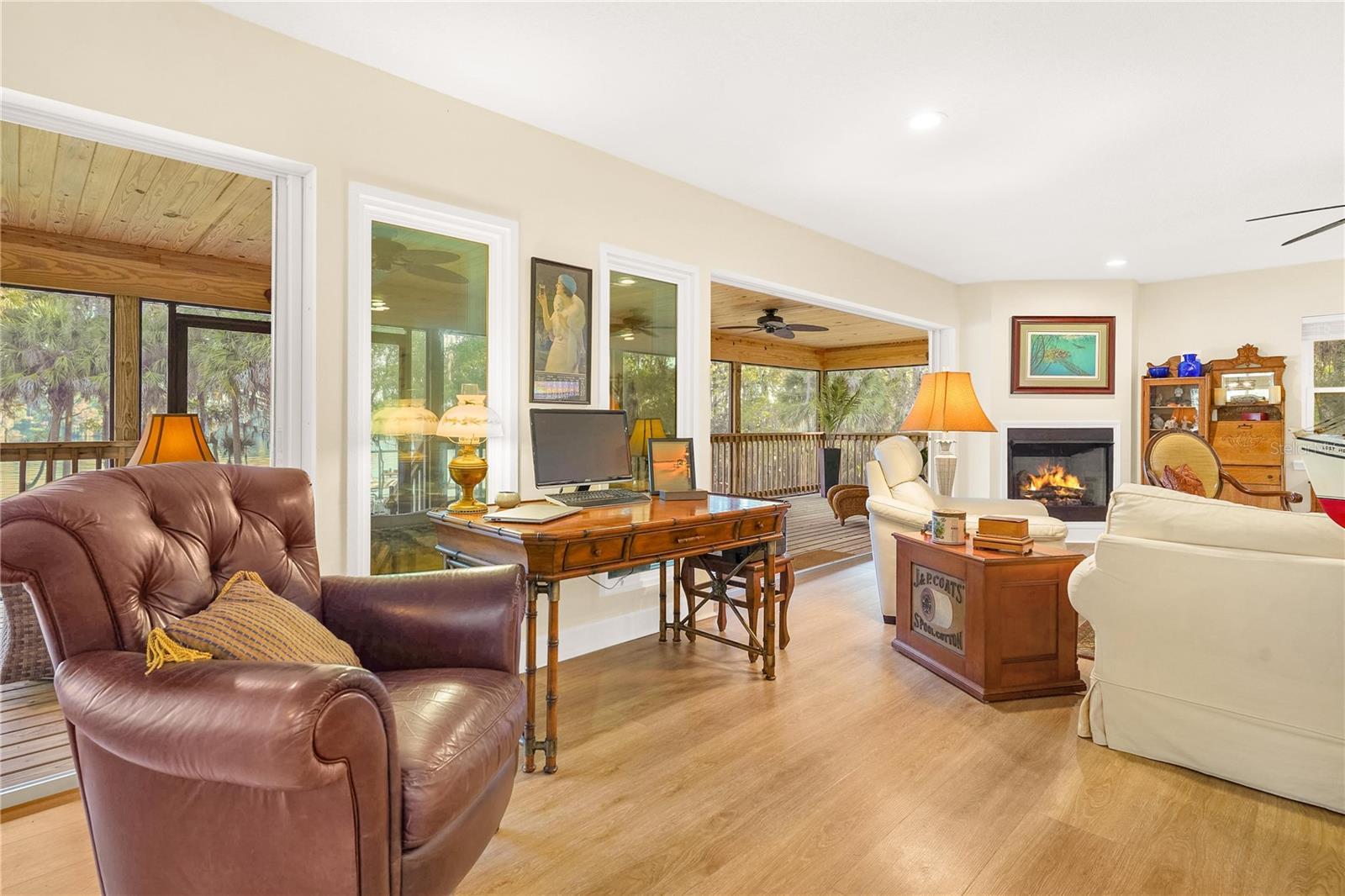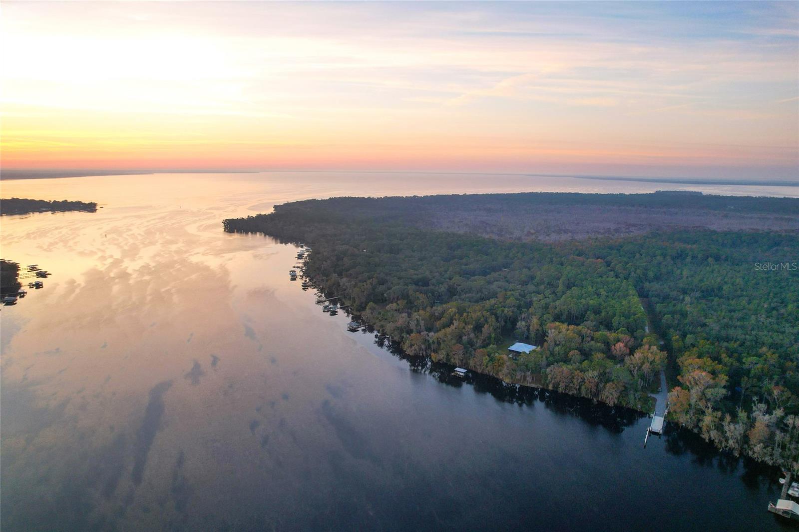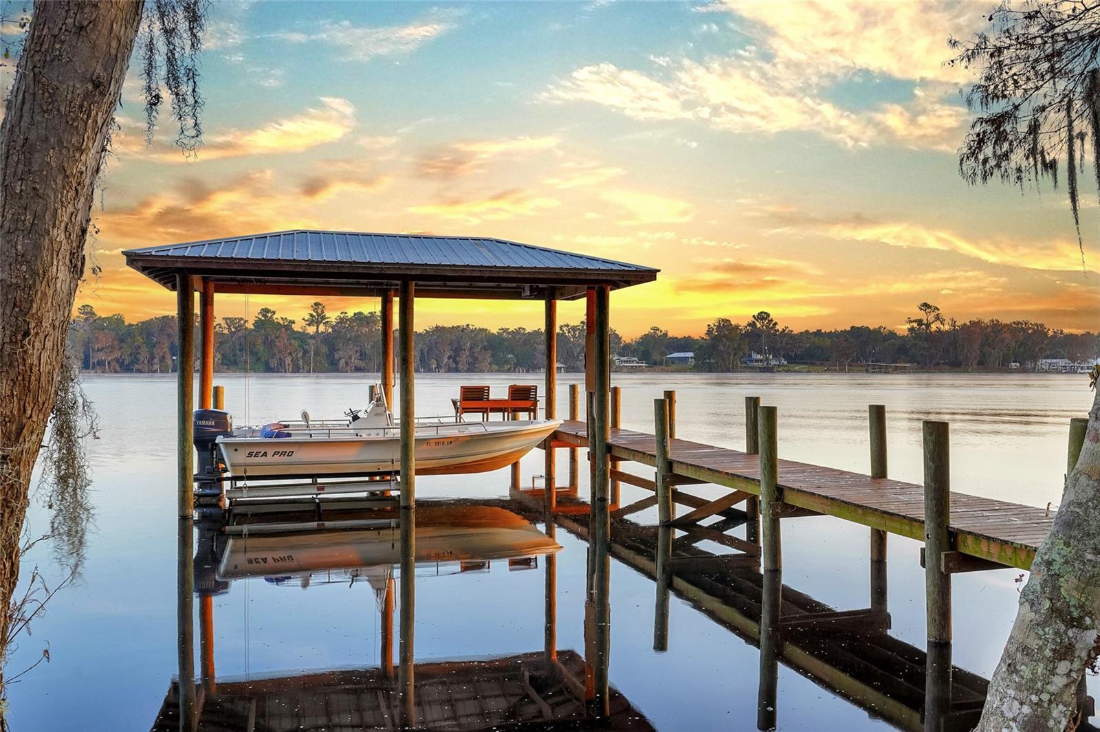Discover an extraordinary private retreat where modern craftsmanship meets untouched natural beauty. Set on 6.37 secluded acres with 284 ft of pristine St. Johns River frontage on two build-able lots, this elevated 2- bedroom, 2.5 bath residence built in 2017 offers a rare blend of sophistication, serenity, and exclusivity. A grand wrap of 1,536 sq ft of screened porches frames the home, creating effortless indoor/outdoor living with panoramic river views. Inside, 1,915 sq ft of living space features an open-concept great room with gas fireplace and river-facing sliders. The chef’s kitchen showcases hand-selected granite with river-inspired veining, Bosch appliances, a walk-in pantry, and abundant cabinet storage with pullouts. The primary suite opens through French doors to the back porch where tranquil wooded views and evening breezes create a relaxing respite from city life. This room features a large walk-in closet and private bathroom with double-sink vanity and beautifully crafted tile shower. The guest suite has large windows with wooded views and two closets for extra storage, while the separate, second bathroom features a walk-in shower and large single vanity. A spacious, spray-insulated walk-able attic, meticulously maintained systems, and interior weather-protected staircase ensure year-round comfort and convenience. The enclosed portion of the ground level includes a mudroom, half bath, storage room, utility sink, and a secondary refrigerator – ideal for extended stays or entertaining. Outdoor living is unparalleled. A remote-controlled covered boat lift with 5,000 pound weight capacity, private dock, fortified concrete seawall, pavered fire-pit, and spacious covered patio with 1,100 square feet of pavers create the perfect setting for boating, fishing, wildlife viewing, or simply enjoying the peaceful surroundings. This unique property offers unmatched tranquility, natural beauty and a true escape to the laid-back lifestyle of Drayton Island living. With direct access to Lake George, Florida’s second largest lake, and close proximity to some of Florida’s most celebrated freshwater springs, recreation is right at your doorstep. Watch wild turkeys and deer stroll across the yard, spot manatees and river otters in the water, and enjoy prolific bird-life, including bald eagles, ospreys, herons, egrets, owls and other migrating species. World-class bass fishing, dark-sky stargazing, and sweeping river vistas elevate the experience to something truly extraordinary. Other notable features of this property include a fenced garden complete with its own irrigation system and a 12x20 custom shed for plenty of extra storage. Accessible only by private vessel or county run ferry, Drayton Island offers unmatched privacy and the rare luxury of true escape while still within reach of Orlando, Jacksonville, St. Augustine, and Daytona. Just minutes by boat to marinas, local restaurants and essential conveniences, this property presents a rare opportunity to own a waterfront estate surrounded by luxury, nature, and absolute tranquility... This is not just a home – it’s a lifestyle, a sanctuary, and a legacy property.