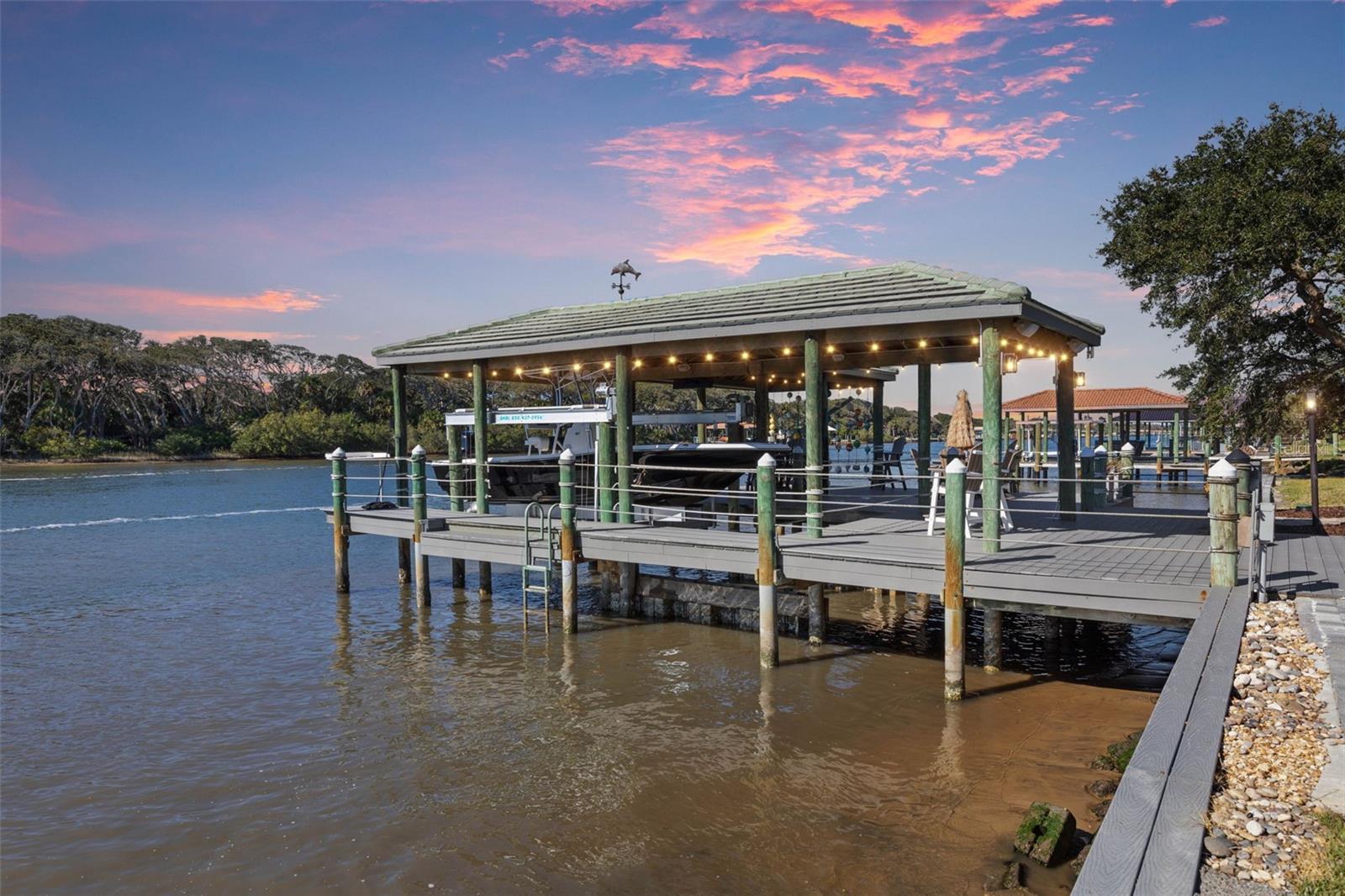 Spectacular Intracoastal Pool Estate with Private Dock & Covered Boat Lift Located within the prestigious gated enclave of Island Estates, this breathtaking, recently renovated five-bedroom, five-and-a-half-bathroom waterfront residence offers a seamless blend of refined design and relaxed coastal luxury, perfectly positioned along the Intracoastal Waterway. From the moment you arrive, elevated craftsmanship and meticulous attention to detail are immediately apparent. The open-concept layout spans over 5,500 square feet of beautifully curated living space, featuring a formal dining room and an elegant living area highlighted by a fireplace and new porcelain tile flooring throughout. At the heart of the home, the gourmet chef’s kitchen impresses with Viking stainless steel appliances, an oversized island, a butler’s pantry, and a spacious eat-in dining area—ideal for both intimate gatherings and grand entertaining. Soaring ceilings and a dramatic wall of glass doors flood the living areas with natural light while seamlessly connecting indoor living to the waterfront outdoors. Designed for unforgettable entertaining, the expansive screened lanai offers wrap-around lounging and dining areas, an outdoor gas fireplace, and an exceptional summer kitchen complete with a wine cooler and premium finishes. The solar-heated saltwater infinity-edge pool, accented by tranquil water features, overlooks sweeping Intracoastal views. The primary suite serves as a private waterfront sanctuary, offering tranquil water views and a spa-inspired ensuite featuring a luxurious soaking tub overlooking a secluded secret garden, a beautifully appointed walk-in shower, and an additional sunlit steam shower. Three additional bedrooms—two with ensuite baths and one offering flexibility as an office or media room—along with private guest or in-law quarters positioned above the two-car garage with a separate entrance, complete the interior living spaces. A third garage bay, currently designed as a private home gym, is seamlessly connected to the main residence. A second-story lookout provides panoramic views of the Intracoastal and nearby beaches, creating a spectacular vantage point for both sunrise and sunset. Outdoors, the property is further enhanced by a private dock featuring a brand-new covered 16,000-lb boat lift, along with both covered and open seating areas perfect for waterfront relaxation. Two fire pits in the backyard add warmth and ambiance to the serene setting. Additional highlights include 2023 A/C systems, a new hot water heater, and thoughtful upgrades throughout. This exceptional Florida estate represents a rare waterfront offering—ideally located near pristine beaches, world-class golf, and the very best of coastal living.