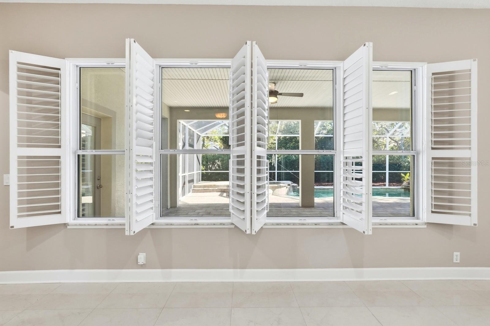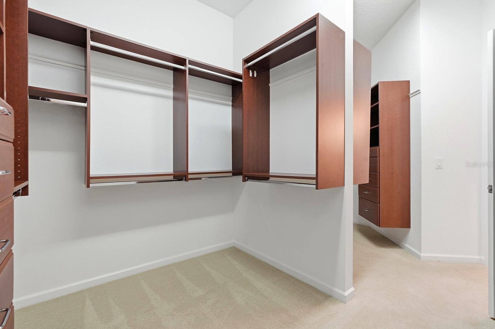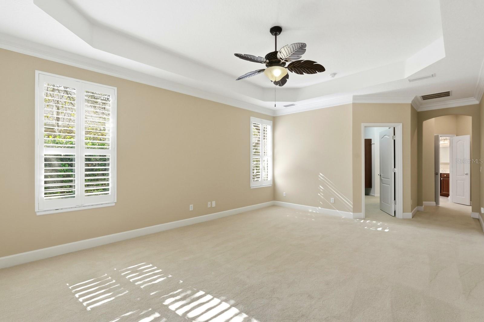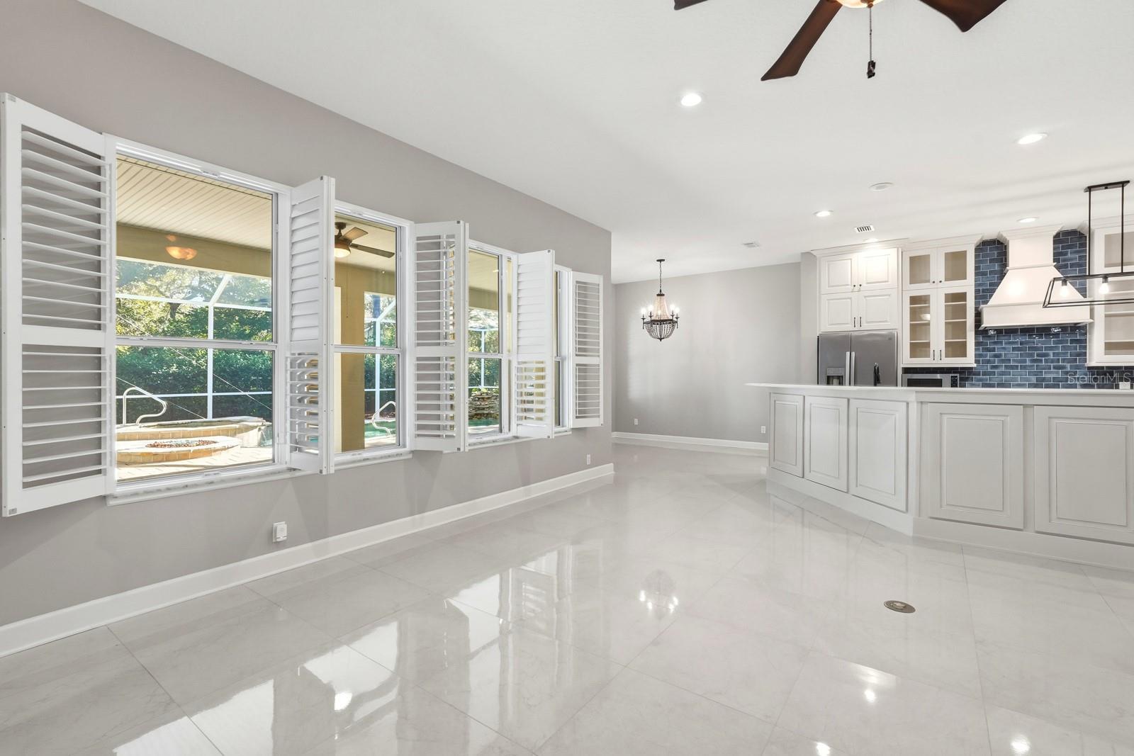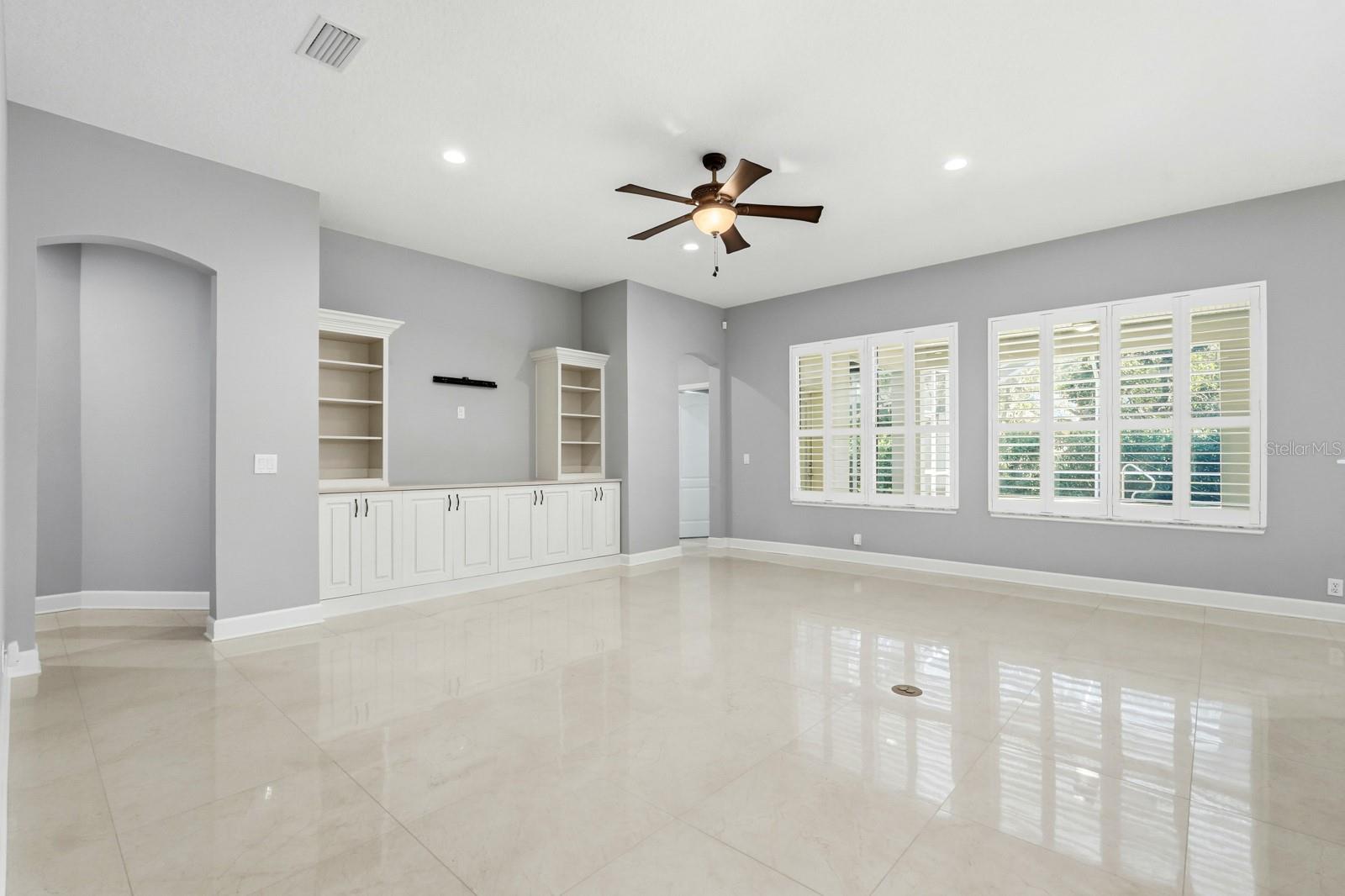 - Built-in Features, Ceiling Fans(s), Eat-in Kitchen, High Ceilings, Kitchen/Family Room Combo, Open Floorplan, Primary Bedroom Main Floor, Solid Wood Cabinets, Split Bedroom, Walk-In Closet(s), Window Treatments