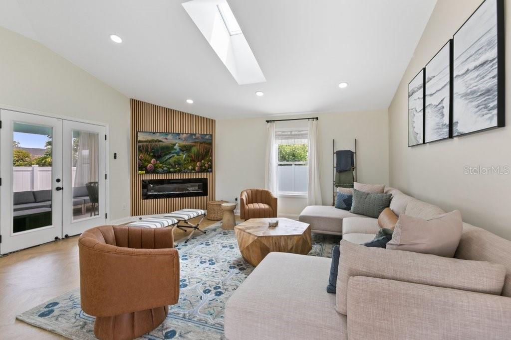Under contract-accepting backup offers. Beautifully updated 3BR/2BA home located just two blocks from Butler Beach. Offered with brand-new modern furnishings, this coastal retreat features a European-style kitchen and baths with sleek cabinetry and contemporary finishes. The primary suite boasts a spa-like bathroom with step-in shower, freestanding soaking tub, and modern fixtures. Light and airy interiors are enhanced by skylights and stylish beach-inspired décor. Enjoy an electric fireplace, screened porch, and private backyard with saltwater pool and paver patio—perfect for relaxing or entertaining. 2 Car garage was converted to a game room with AC/Heat but can easily be converted back. Ideal as a primary residence, 2nd home, or beachside investment. Frank Butler Public Park offers a public boat ramp to the Intracoastal Waterway, picnic tables and is 2 blocks away. With dining, shopping, and amenities nearby, this home offers the perfect coastal lifestyle. Turnkey, completely furnished including linens, silverware etc. Come home all salty from the beautiful Butler beach and its no problem with the outdoor shower at your disposal. Dates of improvements. Pool 2025, water heater 2025, roof 2023, Furniture & Appliances 2025, Pool is maintained weekly. Ring camara and security system convey.