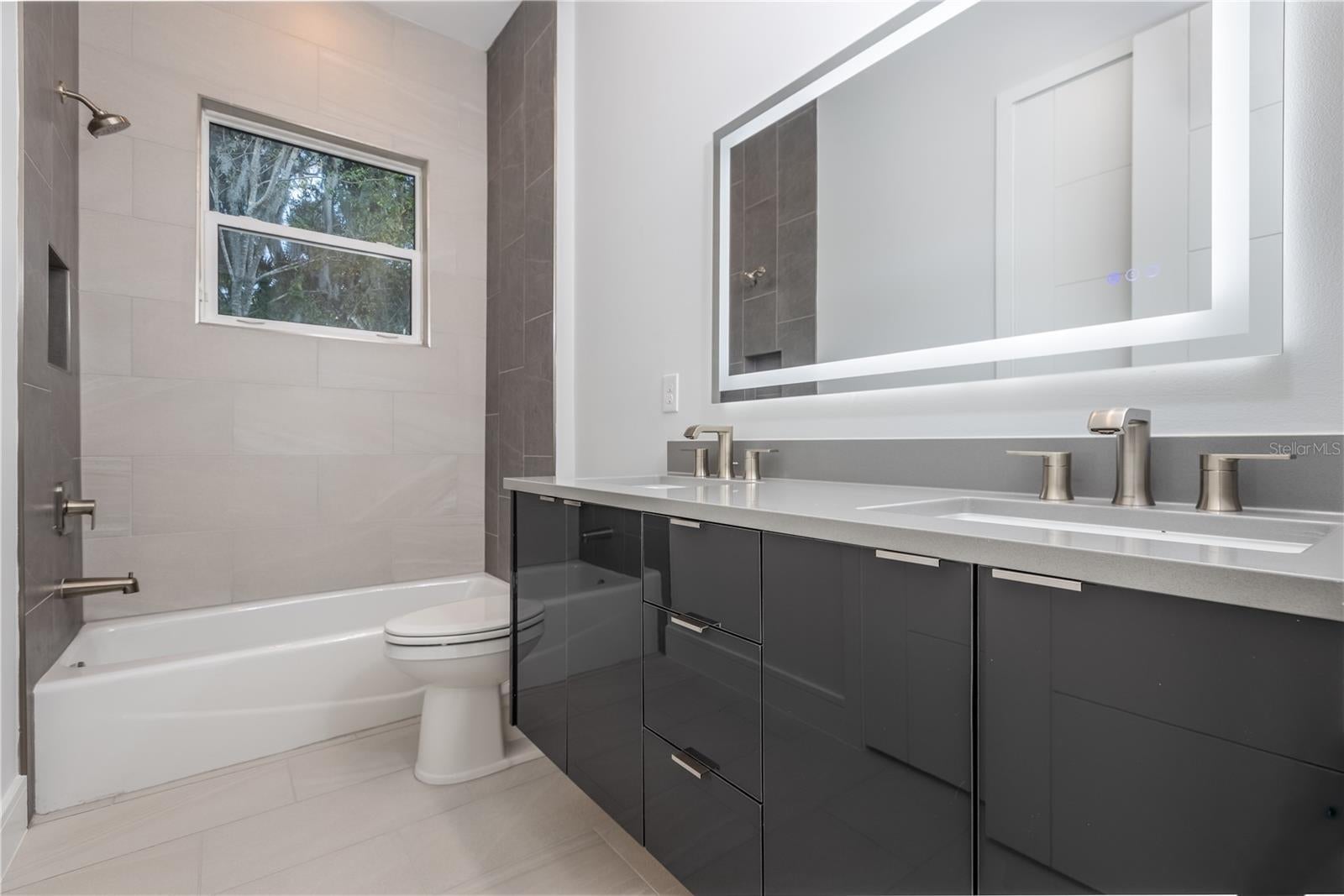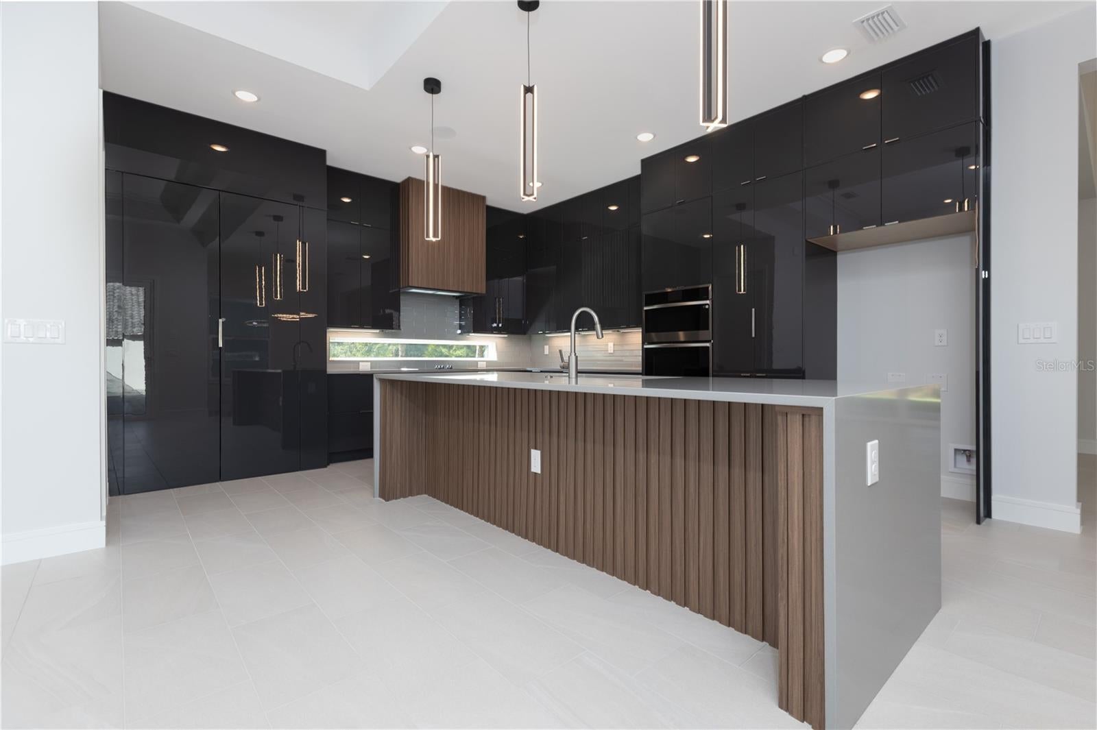 Welcome to this stunning courtyard-style contemporary home located in the well-established Toscana community by the highly respected ABD Development, thoughtfully positioned among lakes and conservation land to provide privacy and tranquility while remaining just minutes from everyday conveniences and approximately ten minutes from the beach, designed as a private oasis where the entry opens into a serene courtyard with a beautiful pool and spa, setting a resort-like tone from the moment you arrive, with wide sliding glass doors throughout the home creating a natural connection between indoor spaces and the courtyard, allowing the pool and outdoor living area to become a true extension of the home, especially in the evening when the pool is softly illuminated, offering an open Kitchen and Family Room combo designed to be both visually striking and highly functional, featuring an ultra-modern kitchen with sleek high-gloss cabinetry that creates a bold contemporary statement, complemented by clean lines, refined finishes, well-appointed appliances, and built-in ceiling speakers allowing you to enjoy music while cooking or entertaining, with wide sliding doors fully opening to the courtyard to create an airy, open environment perfect for relaxed gatherings and everyday enjoyment, a private guest suite/cabana with full bath and sliding glass doors overlooking the pool ideal for guests, extended family, or a private home office, a true primary retreat featuring direct access to the courtyard through sliding glass doors, tray ceilings adding architectural depth and elegance, and a spa-inspired primary bathroom with a freestanding soaking tub, glass-enclosed shower, and quartz vanities that feels open, refined, and intentionally private, while the contemporary aesthetic continues throughout the home with clean architectural lines, tray ceilings, refined trim work, upgraded baseboards, a Level 4 smooth drywall finish with modern square corners, solid-core interior doors enhancing sound insulation and overall quality, an attached three-car garage, and a premium lot with no neighbors directly behind offering permanent wooded views and a tranquil natural backdrop, bringing together architecture, privacy, thoughtful design, quality construction, and a relaxed coastal lifestyle in one distinctive residence designed to be truly enjoyed and experienced.