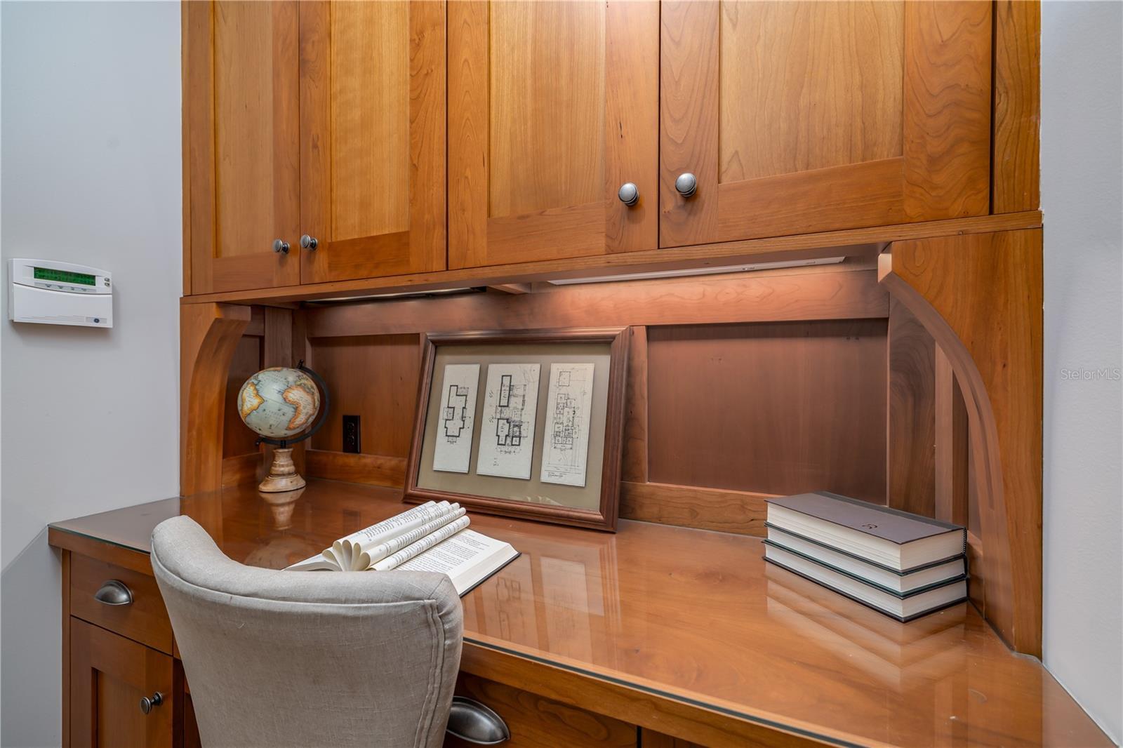 - Ceiling Fans(s), Central Vaccum, High Ceilings, Primary Bedroom Main Floor, Solid Wood Cabinets, Split Bedroom, Stone Counters, Walk-In Closet(s), Window Treatments