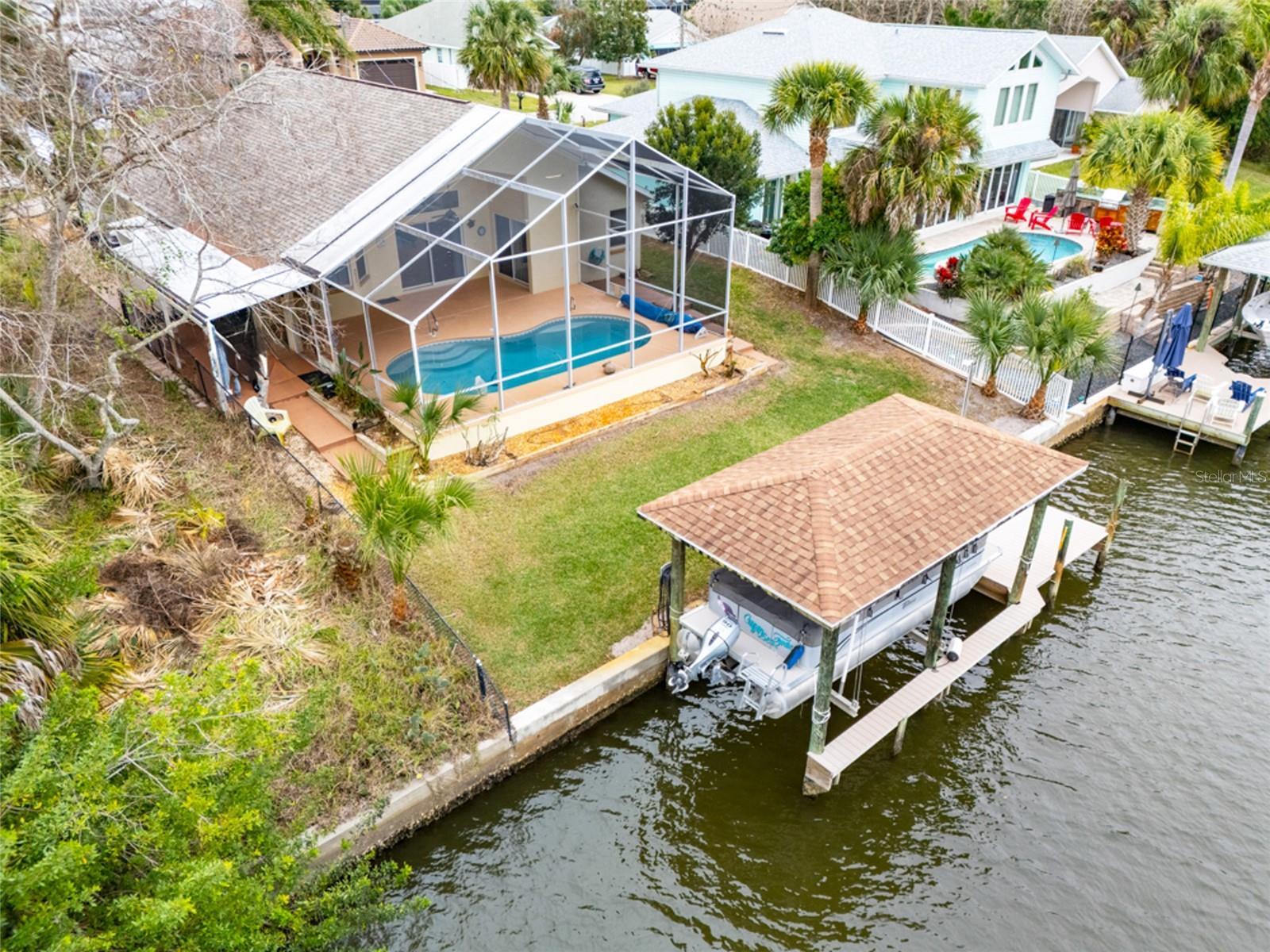 WELCOME TO 21 COMANCHE COURT in the sought after Palm Harbor neighborhood of Palm Coast. DISCOVER this saltwater living paradise home, waiting for you with a spectacular boathouse with lift, a resurfaced in-ground heated pool. This beautiful 3-bedroom, 2 bathroom canal front home in the City of Palm Coast is the perfect blend of comfort, and outdoor living, enjoy access to the Intracoastal waterway free from bridge obstructions. Overlooking the canal we have the main bedroom, Living room, kitchen nook and pool presenting yourselves with breathtaking water views. In addition this home boasts cathedral ceilings, great room, plant shelves, 2 car garage, Screen has been rescreened about 7 years ago, security system, irrigation well, sprinkler system, ceiling fans and an outdoor shower. HVAC (2022),New Roof (2017) a 12x12 dock with a 20x12 boathouse w/ 1' cantilever walkway (2014) FPL surge protection plan, pool has been rescreened, termite policy in place, tile floor throughout the home, and an exterior storage unit. Just minutes away by boat you'll find the famous Intracoastal waterway, Matanzas river, and the vast Atlantic Ocean. Palm Coast boasts over 150 miles of bike paths, and offering stunning views, excellent restaurants, coffee and pastry shops. THIS BEAUTIFUL SALTWATER CANAL HOME TRULY SPEAKS FOR ITSELF- COME SEE IT IN PERSON.