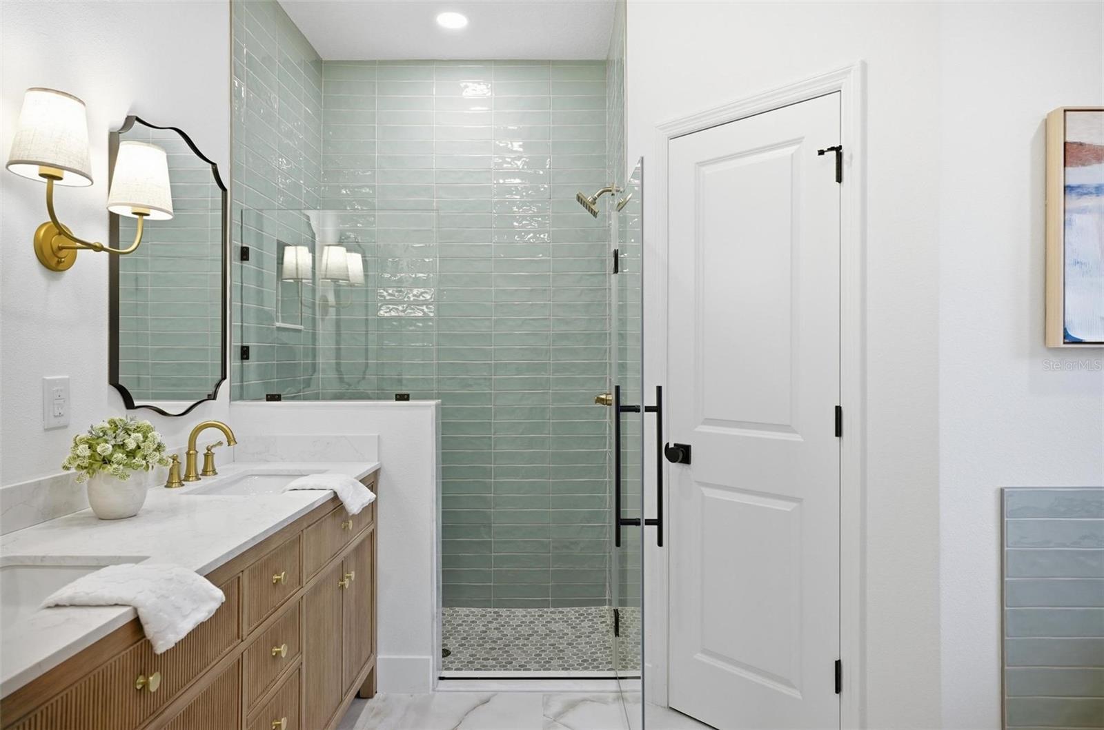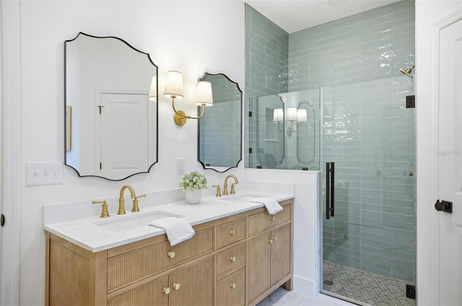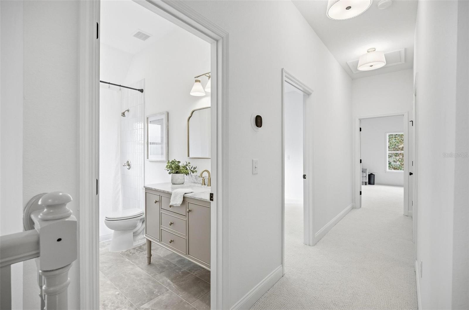 Modern farmhouse living in the prestigious Palm Coast community, The Sanctuary. This 5-bedroom, 3.5-bath home offers 3,290 sq ft of bright, open living space with vaulted ceilings and a clean, modern palette throughout. The farmhouse kitchen features ample cabinetry, expansive quartz counters, a pot filler, and a large peninsula that opens to the main living and dining areas, ideal for entertaining. This beautiful two-story home showcases custom wall trim work, blending northern charm with updates suited for Florida living. The primary bedroom is located on the main level and includes a gorgeous ensuite bathroom and two walk-in closets. Four additional bedrooms span the length of the upstairs, including one en-suite, perfect for guests. Beautiful enclosed pool with plenty of area for outdoor parties & hosting! Fully gated backyard. Enjoy a large lot (0.36 acres) with room to relax and play, plus quick access to nearby beaches, Intracoastal waterways, golf, dining, and shopping. Newer A/C. Newer roof. Newer water heater. This community is one of the few communities in Palm Coast with a manned guard entrance. Video tour here: https://see.virtualopen.house/v/TD3HHMC Virtual Tour here: https://zillow.com/view-imx/afe0c6e9-c2ca-4303-a433-a3229afe3f2c?initialViewType=pano&setAttribution=mls&utm_source=dashboard&wl=1