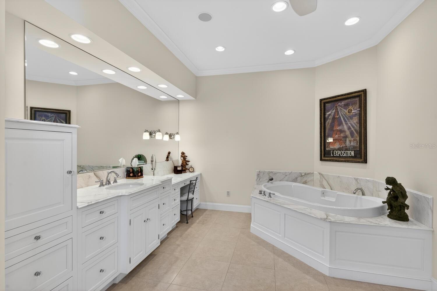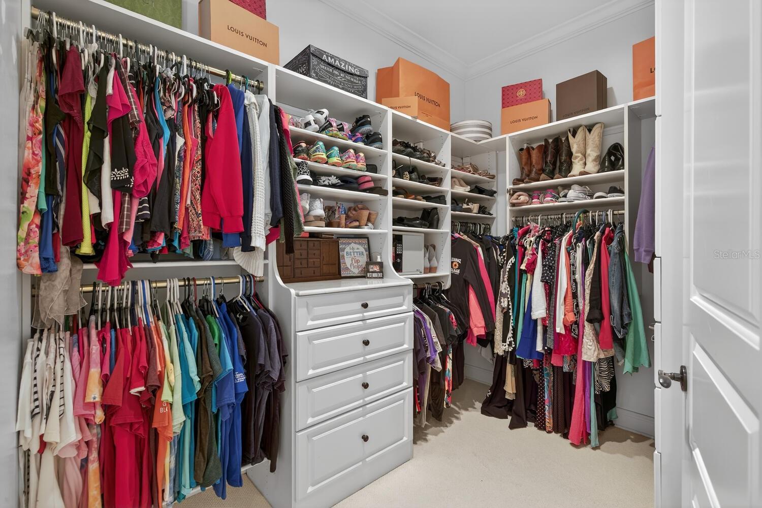 - Ceiling Fans(s), Crown Molding, Eat-in Kitchen, High Ceilings, Kitchen/Family Room Combo, Open Floorplan, Primary Bedroom Main Floor, Smart Home, Solid Surface Counters, Solid Wood Cabinets, Split Bedroom, Stone Counters, Thermostat, Walk-In Closet(s), Wet Bar, Window Treatments