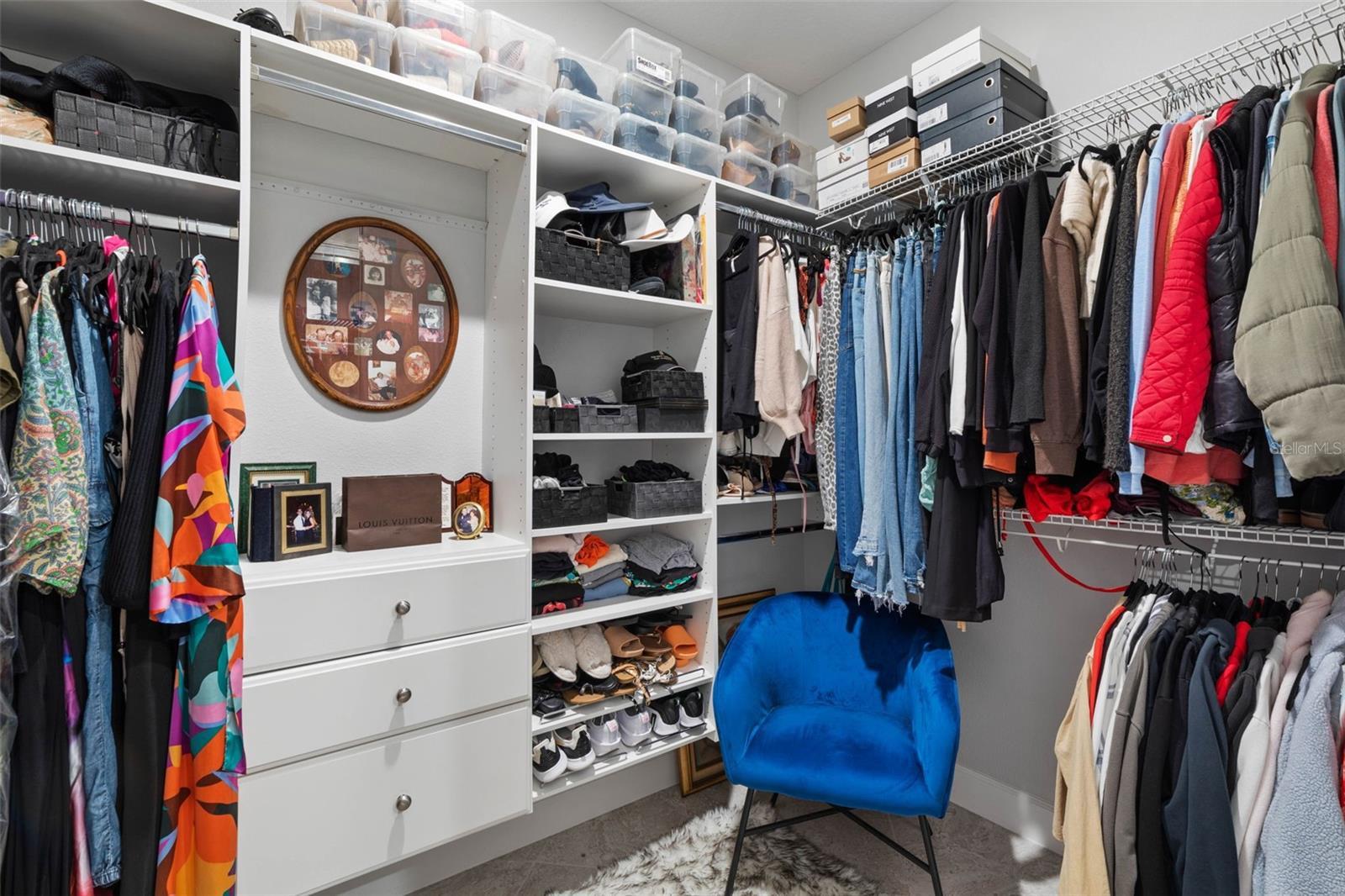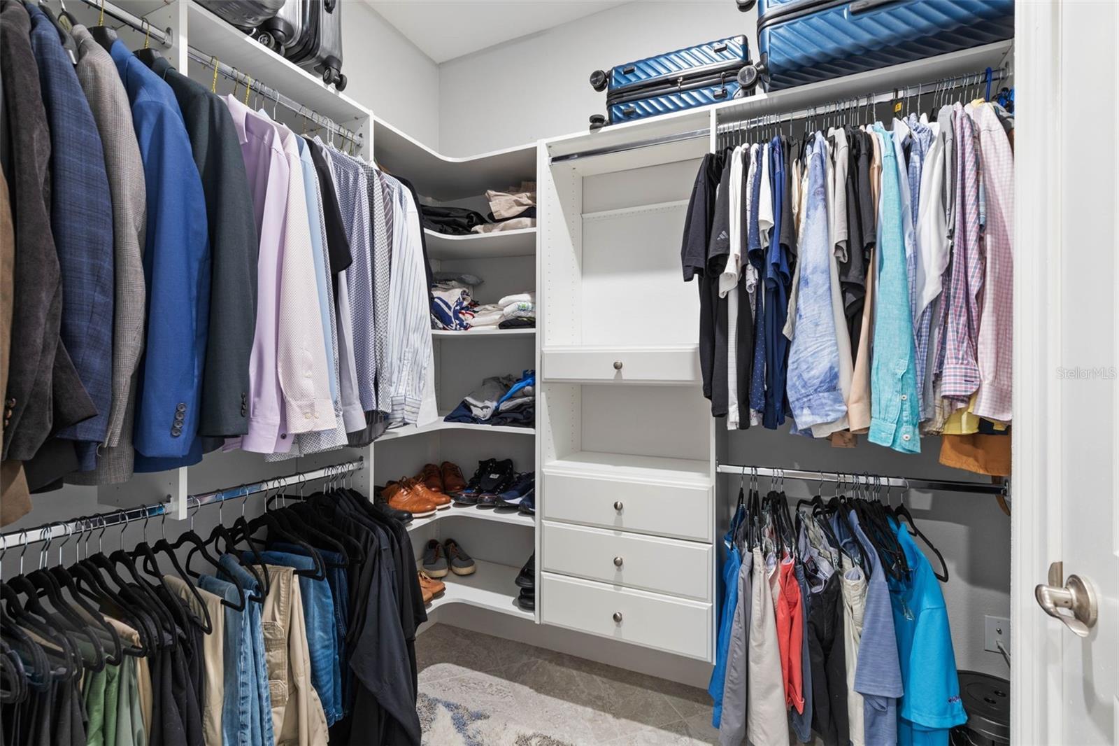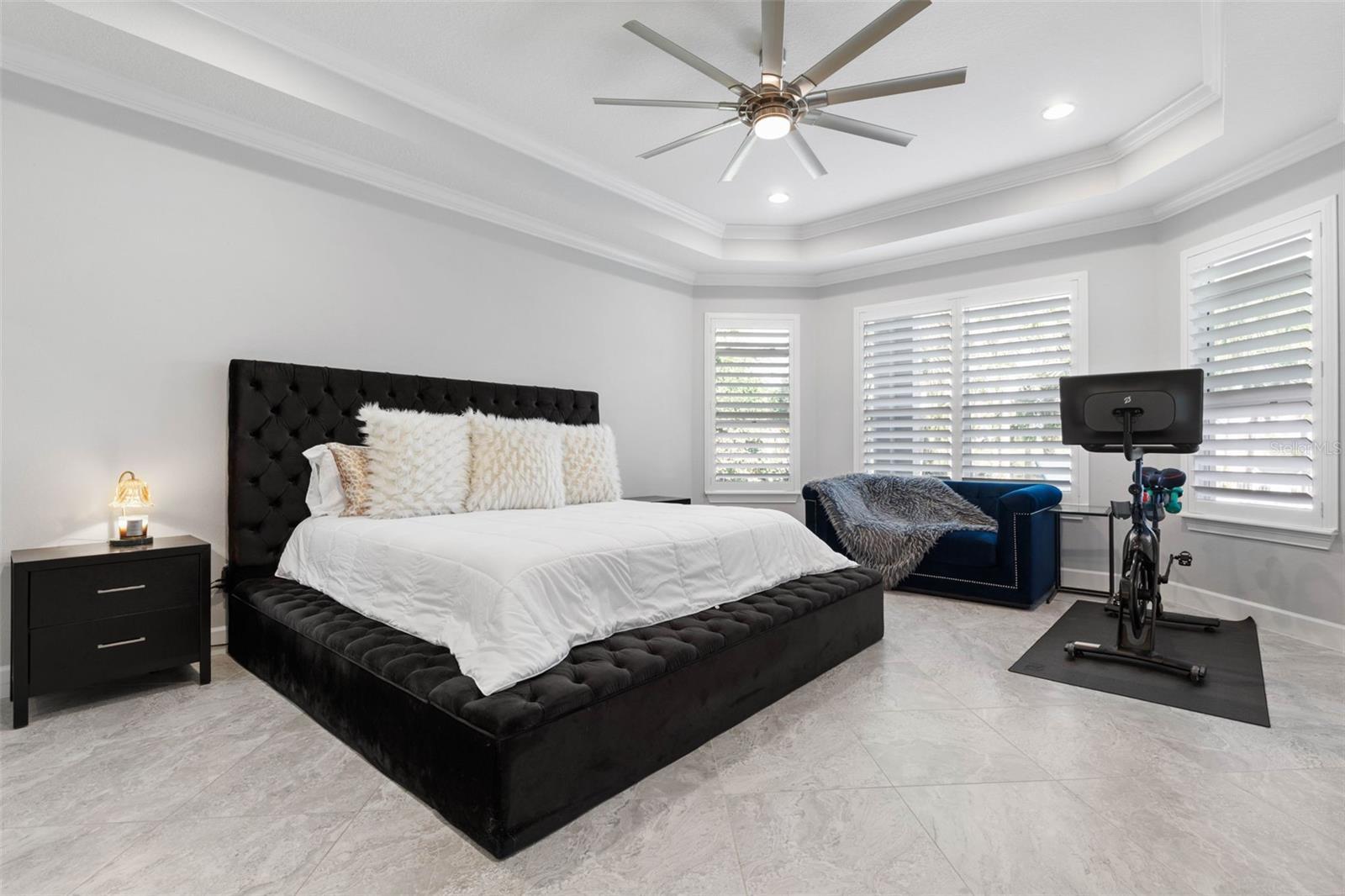 - Central Vaccum, Chair Rail, Crown Molding, Eat-in Kitchen, High Ceilings, Open Floorplan, Primary Bedroom Main Floor, Smart Home, Solid Surface Counters, Solid Wood Cabinets, Split Bedroom, Stone Counters, Thermostat, Tray Ceiling(s), Walk-In Closet(s), Window Treatments