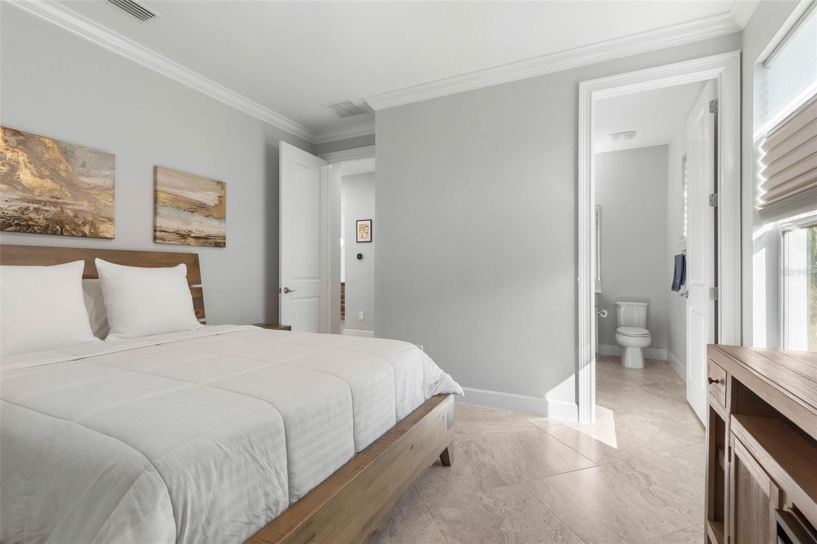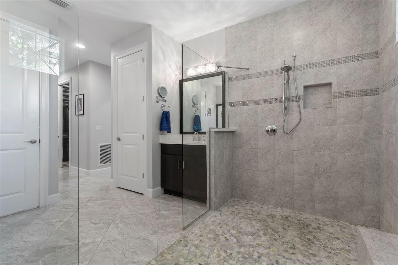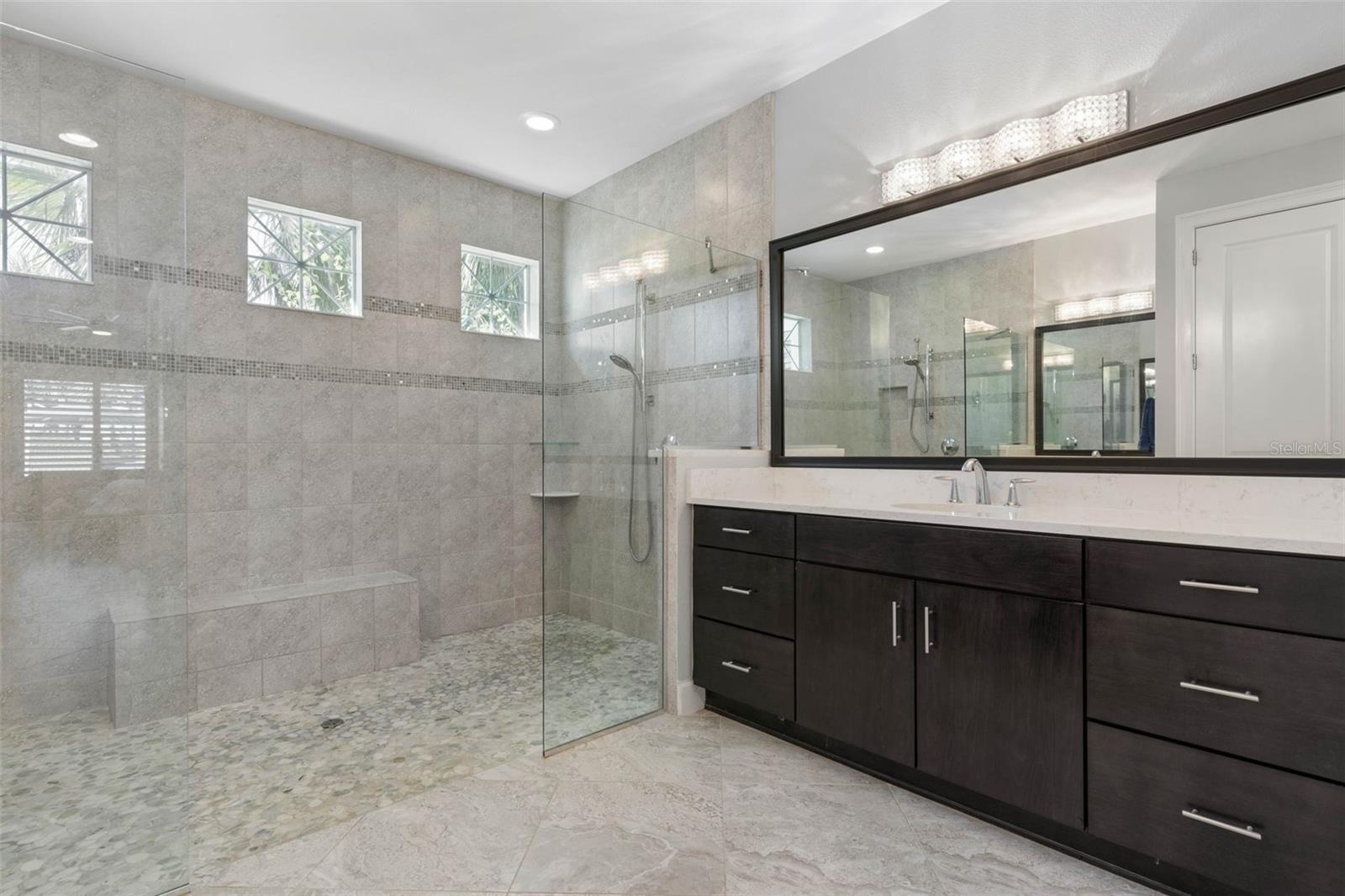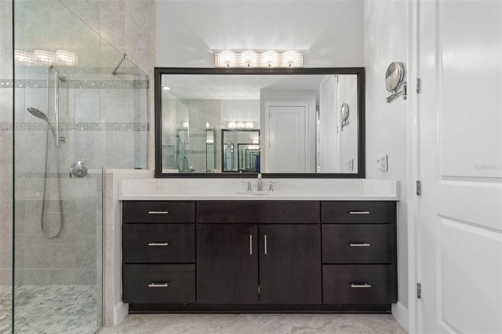 - Central Vaccum, Chair Rail, Crown Molding, Eat-in Kitchen, High Ceilings, Open Floorplan, Primary Bedroom Main Floor, Smart Home, Solid Surface Counters, Solid Wood Cabinets, Split Bedroom, Stone Counters, Thermostat, Tray Ceiling(s), Walk-In Closet(s), Window Treatments