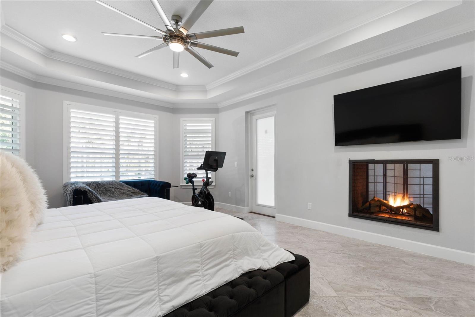 - Circulating, Gas, Living Room, Non Wood Burning, Primary Bedroom, Stone