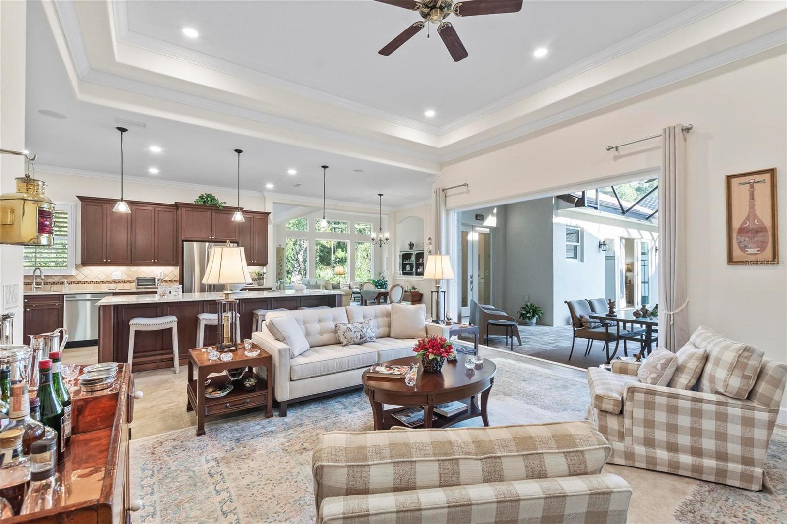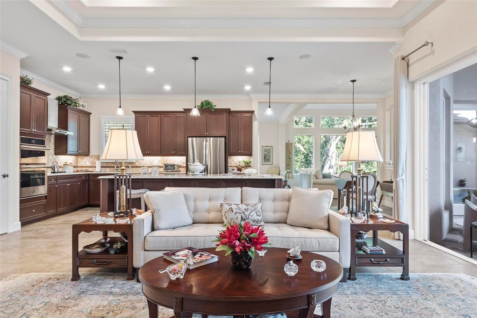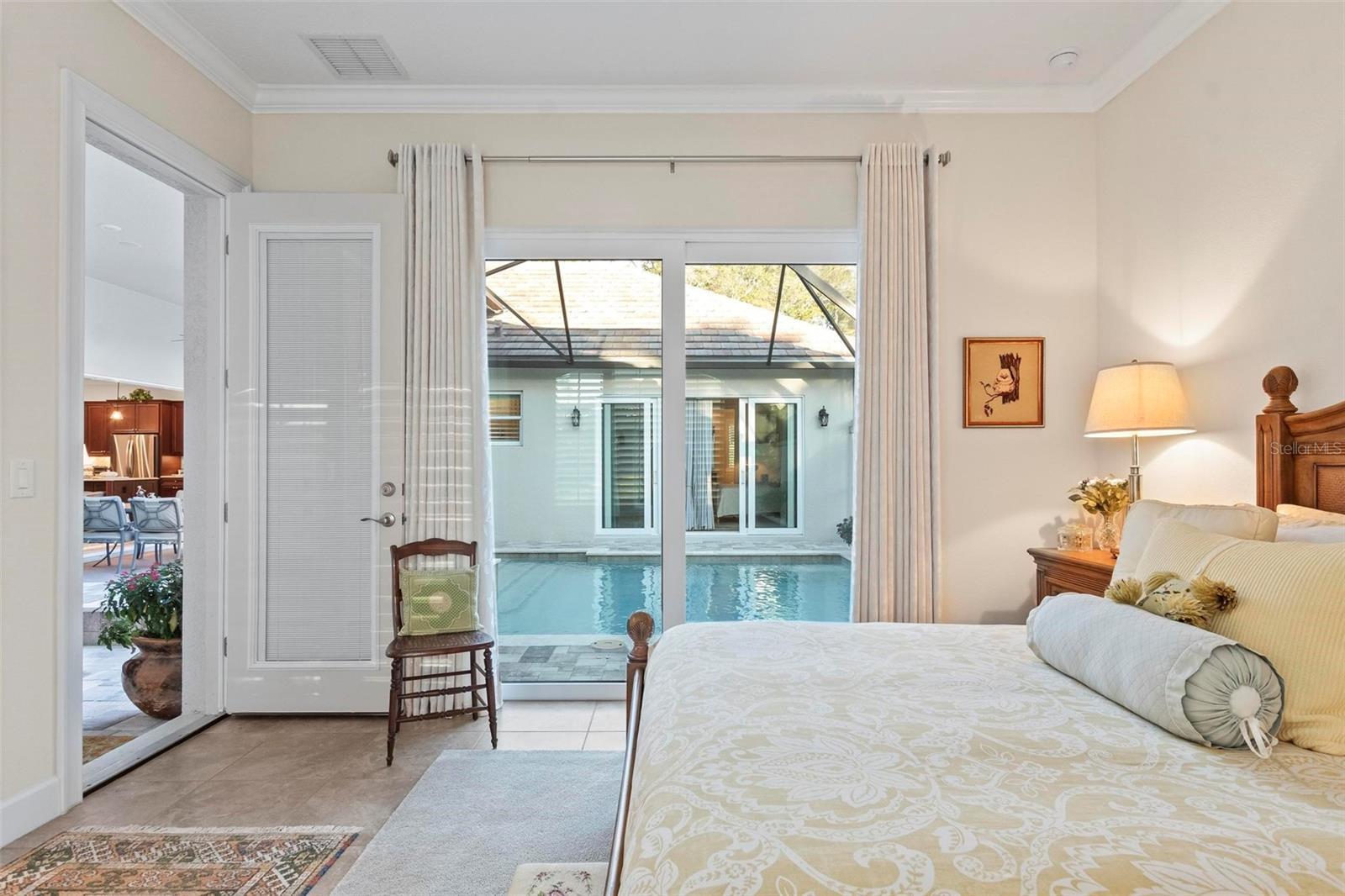 Under contract-accepting backup offers. Discover exceptional single-story living in the highly sought-after gated community of Toscana in Palm Coast. Built in 2020, this beautifully designed residence offers 4 bedrooms and 3.5 baths across approximately 2,700+ square feet of thoughtfully planned living space, blending comfort, privacy, and elegant design. Step through the front doors into a stunning private courtyard oasis, featuring a solar heated saltwater pool and spa surrounded by paver decking—perfect for relaxing or entertaining. A separate casita provides ideal flexibility for guests, a home office, or multigenerational living while maintaining privacy. Inside, the home showcases a bright, open floor plan with tile flooring throughout, plantation shutters, crown molding, and refined architectural details. The gourmet kitchen is a true centerpiece, offering a large center island, quartz countertops, and high-end Jenn-Air appliances, seamlessly connecting to the main living areas. The spacious family room flows effortlessly to the courtyard, creating an inviting indoor-outdoor lifestyle. The primary suite is a private retreat, complete with a spa-inspired bath and a custom California closet. Additional upgrades include a Lutron smart-home system, full foam insulation (including the garage), integrated speakers, a mini-split HVAC system in the garage, and a 3-car garage. The home is set on a tranquil preserve lot with beautifully maintained landscaping and a screened paver patio with astro turf for fido! Ideally located in one of Palm Coast’s most desirable communities, this home offers luxury, functionality, and privacy—perfect for full-time living or a refined coastal retreat.