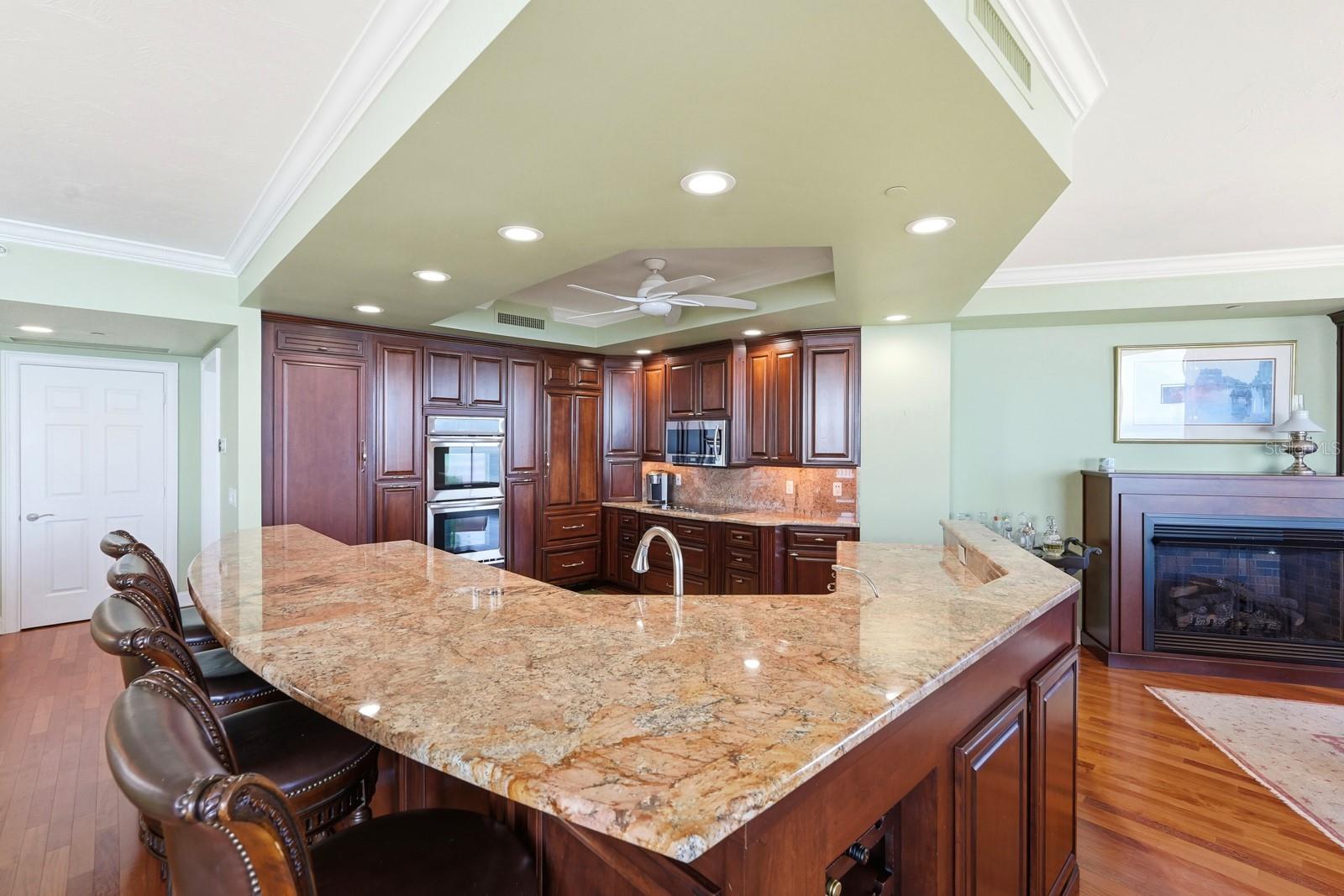 - Built-in Features, Central Vaccum, Elevator, Kitchen/Family Room Combo, Living Room/Dining Room Combo, Open Floorplan, Primary Bedroom Main Floor, Solid Surface Counters, Solid Wood Cabinets, Split Bedroom, Stone Counters, Thermostat, Walk-In Closet(s), Window Treatments