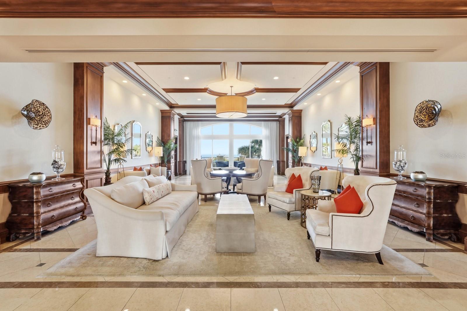 Experience luxury oceanfront living at its finest at Portofino in Hammock Dunes. This coveted south-facing "Furnished" end unit offers magnificent ocean views the moment you enter your residence from your private, elegantly appointed elevator and foyer. Portofino showcases an open concept design with dramatic full-height sliding glass doors on the balconies and oversized windows that provide panoramic views of the Atlantic Ocean. These sumptuous views extend from the living room, family room, dining room, kitchen, and primary bedroom. The guest bedrooms are located on the west side of the residence, ensuring privacy, a balcony that overlooks the picturesque fairway and offers stunning sunset views. The kitchen features exquisite custom cabinetry, along with a standalone refrigerator and freezer. The primary bedroom boasts an oversized walk-in closet with built-in custom cabinetry that includes jewelry drawers and compartments. A spacious primary bath completes this well-deserved retreat. Portofino offers a lifestyle like no other, with a beautifully appointed lobby, a large social room with a bar and serving pantry for special events, and a richly appointed library with a fireplace. Additionally, there's a billiards room adjacent to the bar area and social room, a state-of-the-art fitness room, two guest suites for friends or family, and a theater room with stadium seating. The property also features a large pool and spa, cabanas, direct beach access, under-building assigned parking, individual storage lockers, and bike storage. Membership to the award-winning Hammock Dunes Club is available, though not mandatory. This membership grants access to two renowned Audubon-certified 18-hole golf courses, two stunning clubhouses, casual and oceanfront dining, tennis, pickleball, bocce, oceanside croquet, a state-of-the-art fitness center, an oceanside pool and spa, a splash pad, and a wealth of activities and friendships that can last a lifetime. Conveniently located just three miles from I-95, this home offers easy access to Daytona, Orlando, Jacksonville, and Flagler Executive Airports.