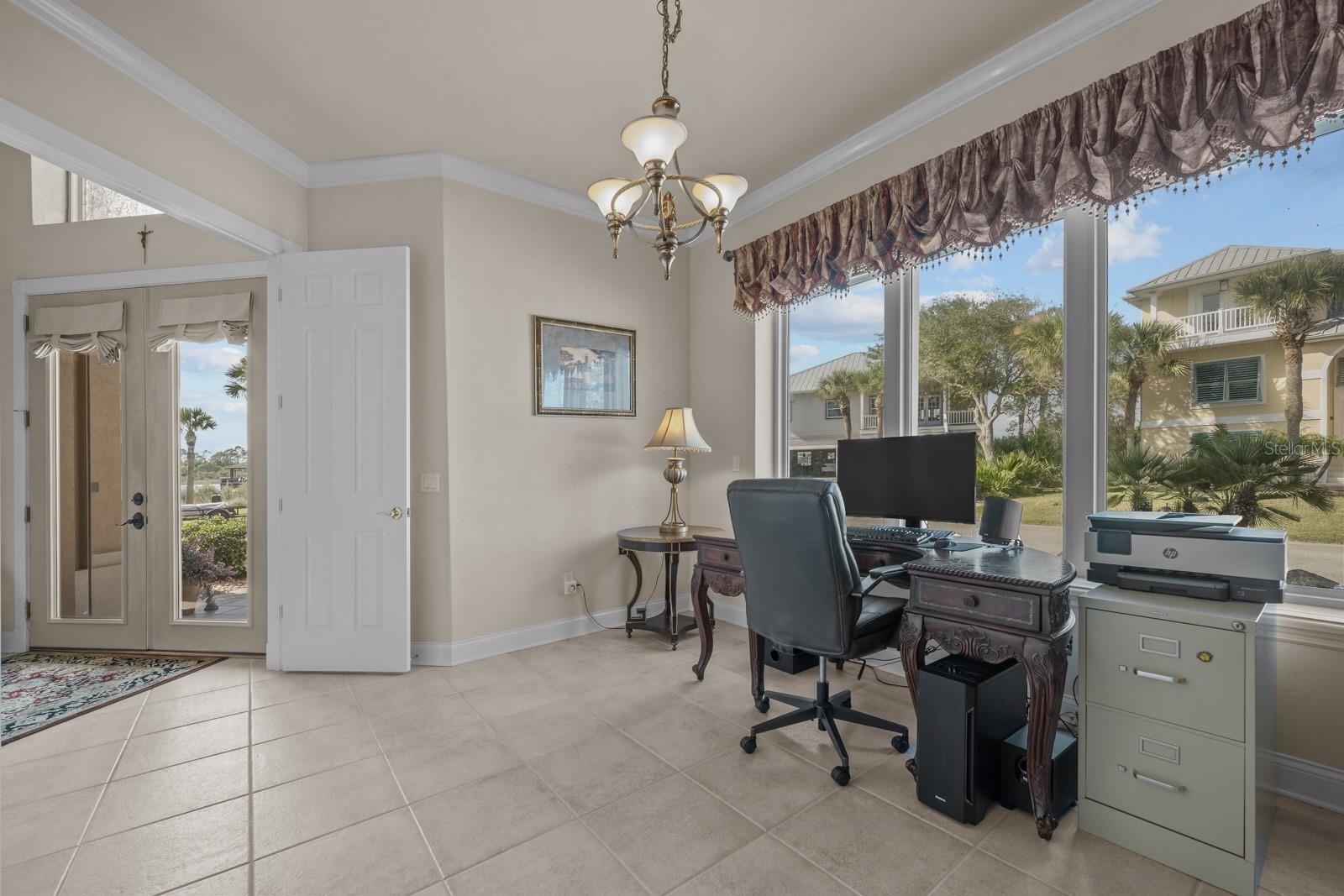 Experience coastal elegance and everyday comfort at 621 River View Road, a striking five-bedroom, five-bath residence in Flagler Beach’s desirable River Point neighborhood. Set on a landscaped corner lot with Intracoastal Waterway views, this 4,032-square-foot home blends space, style, and location to perfection. Step inside and feel the impact of a large, welcoming entryway that opens to formal living and dining spaces, complemented by a dedicated wine vault —ideal for entertaining with ease. A gas fireplace adds warmth and charm, while a dedicated office with double doors and built-in shelving supports productivity and privacy. The heart of the home unfolds in the family room and Florida room, seamlessly connecting to a chef-inspired kitchen with stone counters, ample cabinetry, cooktop, built in oven/microwave, a breakfast nook, and a built-in desk. Outdoor living takes center stage as sliders lead to the pool area and private outdoor sauna—your personal oasis for relaxation and entertaining. Upstairs, two spacious primary en suite bedrooms provide comfort and flexibility, each with oversized walk-in closets. An oversized three-car garage with engineered plank wood flooring easily fits large vehicles, a golf cart, or motorcycle, and includes overhead storage for added convenience. With a whole-house generator, motorized storm shutters, and a comprehensive security system, this home prioritizes both luxury and peace of mind. Close to shopping, dining, medical facilities, and just minutes from the beach—with easy access to St. Augustine and Daytona Beach—this property delivers the lifestyle you’ve been waiting for. No HOA fees or pet restrictions.