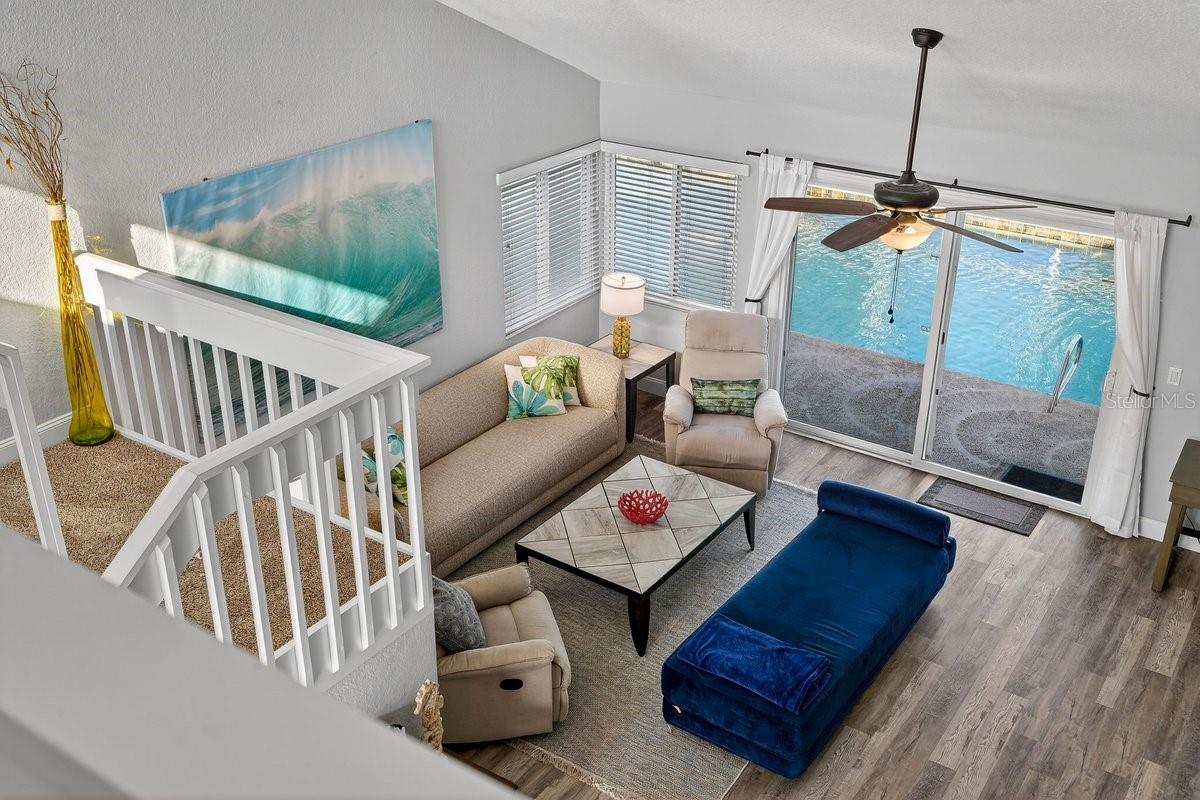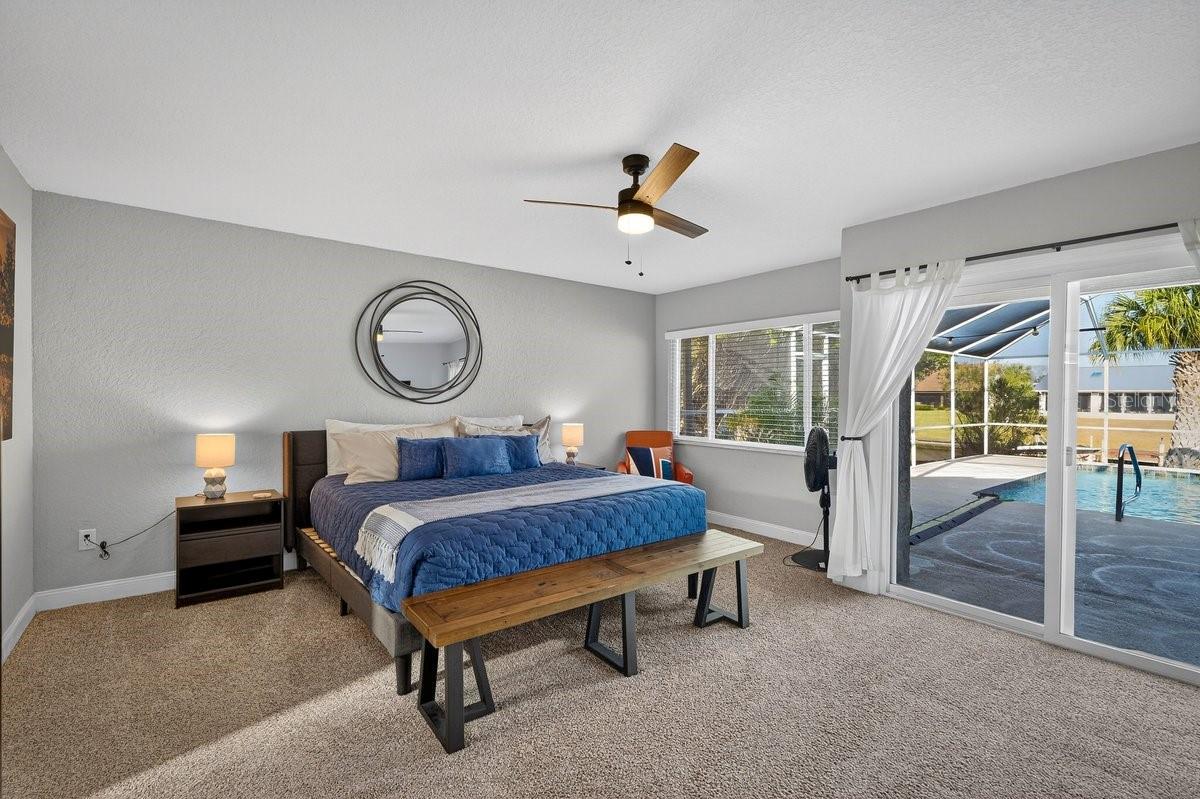Discover this stunning vintage contemporary waterfront gem—a fully furnished 4-bedroom, 3-full-bath pool home ideal for year-round living, seasonal getaways, or continued success as a lucrative vacation rental. Step from your backyard's serene saltwater canal to the Intracoastal Waterway in just a short boat ride. What sets this home apart is its striking geometric architecture, paired with extensive modern upgrades from 2019 to the present, ensuring unparalleled comfort and functionality. Indoor-outdoor living takes center stage, highlighted by a massive salt-system pool (resurfaced in 2021) surrounded by expansive open decks for relaxation. Elevate your waterfront lifestyle with a covered 26-foot boat dock and a dedicated double jet-ski lift (installed in 2022). A cutting-edge solar panel system keeps average electric bills remarkably low. Enter to breathtaking pool and water views through an open-concept layout, accentuated by soaring vaulted ceilings, a craftsman staircase, and an upstairs loft overlooking the space below. The heart of the main level is a sleek double-sided electric fireplace (installed in 2025) seamlessly dividing the family and dining areas. The split-bedroom floor plan offers privacy and convenience: the luxurious owner's suite and one secondary bedroom on the main level, plus two upstairs bedrooms sharing a well-appointed bath. The chef-inspired kitchen (renovated in 2021) boasts exotic granite countertops, premium stainless steel appliances, and a central island with an exhaust hood—perfect for entertaining while soaking in the scenic vistas. A spacious circular concrete driveway (installed in 2021) provides ample parking for guests. Nestled in the vibrant heart of Palm Coast, you're minutes from shopping, dining, and pristine beaches. Don't miss this extraordinary property—schedule your private showing today!