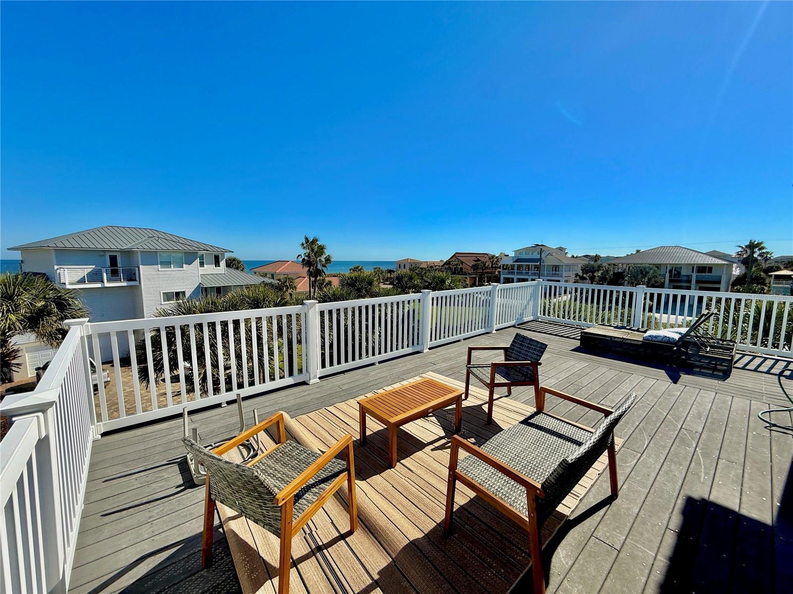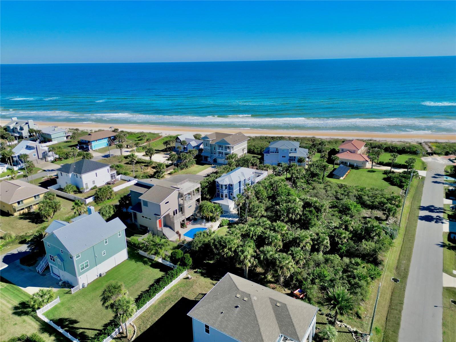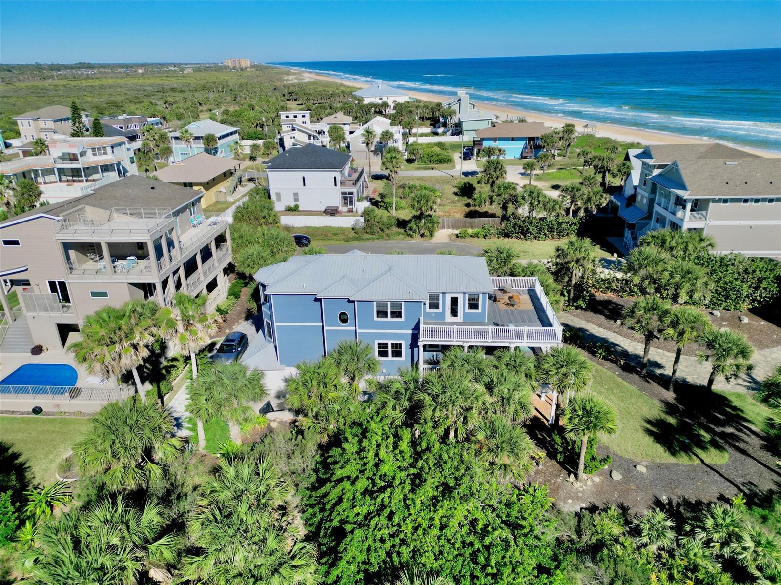 Set within the coveted Hammock area of Palm Coast, 56 Seascape Drive offers an easygoing coastal lifestyle defined by quiet streets, ocean breezes, and life just steps from the sand. Located only 50 yards from the beach on a peaceful cul-de-sac in Marineland Acres, this quiet street does not allow short-term rentals, providing a private, residential atmosphere. The Seascape community offers private beach walkover access, further enhancing the convenience and exclusivity of this beachside setting. This 5-bedroom, 4-bath, three-story residence delivers privacy, comfort, and sweeping ocean views in one of Flagler County’s most naturally preserved communities. Surrounded by mature palms and unspoiled landscape, the home reflects the relaxed pace of The Hammock—where days are shaped by sunrise walks on the beach, outdoor living, and a strong connection to nature. Multiple decks capture coastal breezes and ocean views, creating ideal spaces for entertaining or unwinding. The top level serves as a private owner’s retreat, featuring a spacious primary suite with dual vanities, an oversized walk-in shower, generous closet space, and a private ocean-view sun deck. An additional en-suite bedroom, a sitting area, and a charming window seat complete this level. The main living level offers an open, inviting layout with a well-appointed kitchen featuring granite countertops, solid wood cabinetry, stainless steel appliances, and a gas range. Dining and living areas flow seamlessly to a covered deck, while a gas fireplace adds warmth and ambiance. An additional en-suite bedroom and laundry room provide everyday convenience. The ground level includes two additional bedrooms—ideal for guests, a home office, or multi-generational living—along with an oversized two-car garage with ample storage for beach and outdoor gear. Recent updates include Hardie® board siding (2025), metal roof (2018), two water heaters (2018 & 2022), sealed energy-efficient ductwork, and newer HVAC systems, making the home well maintained and move-in ready. Situated nearly half a mile from A1A, this private cul-de-sac offers peace and quiet with no highway noise, no through traffic, and no short-term rentals, while shopping and dining are just minutes away. A rare opportunity to own a private coastal retreat with private beach walkover access in one of Palm Coast’s most desirable beachside neighborhoods.