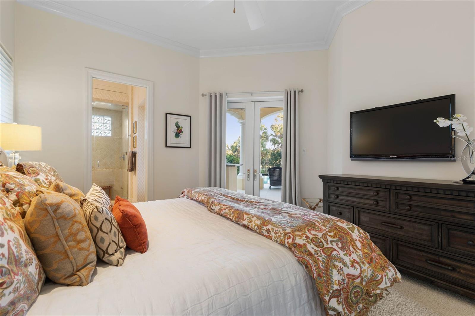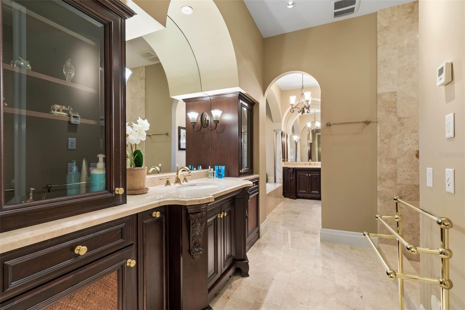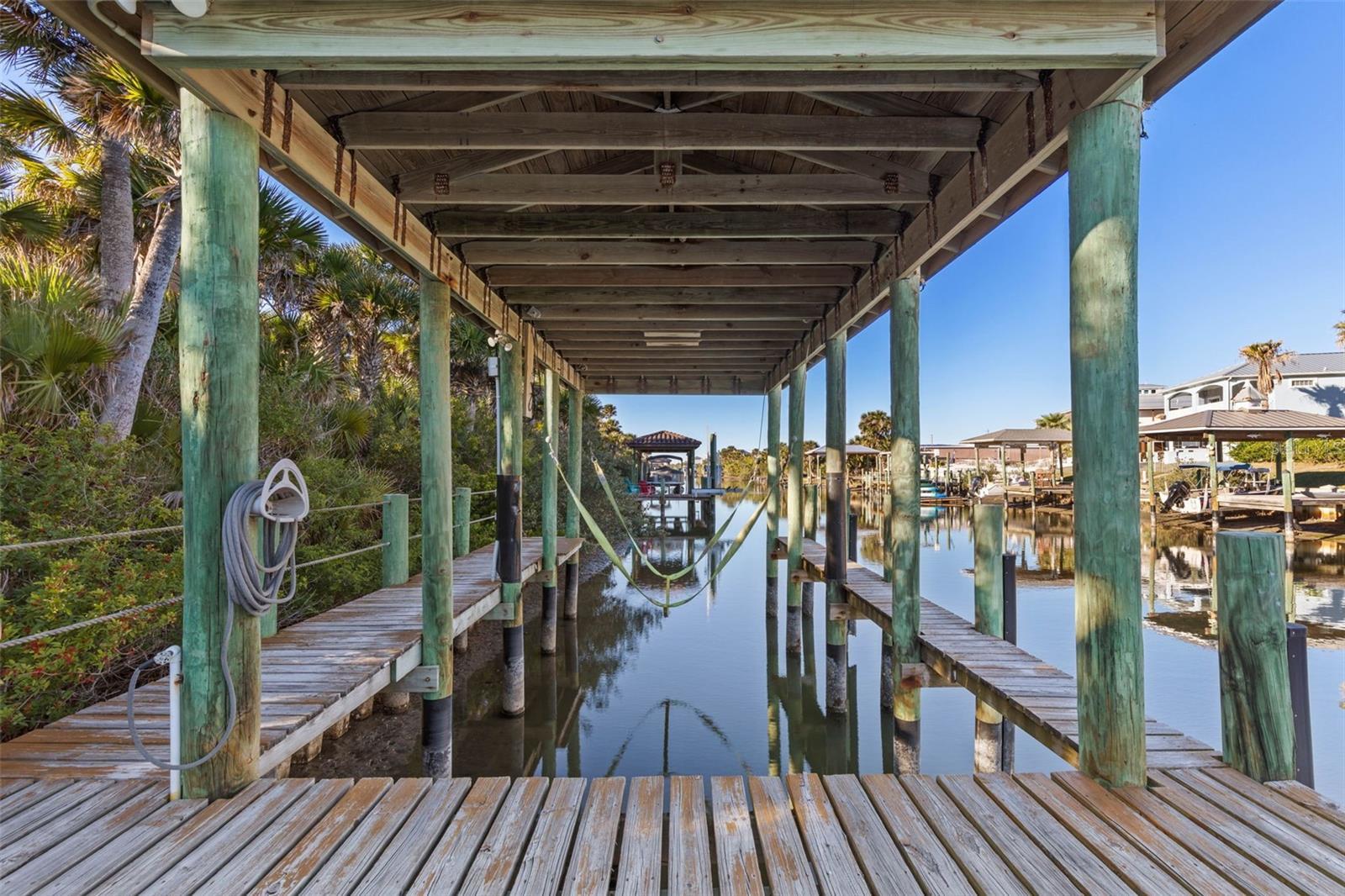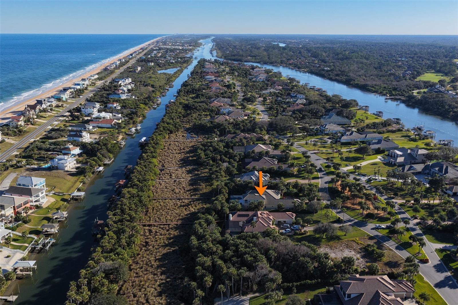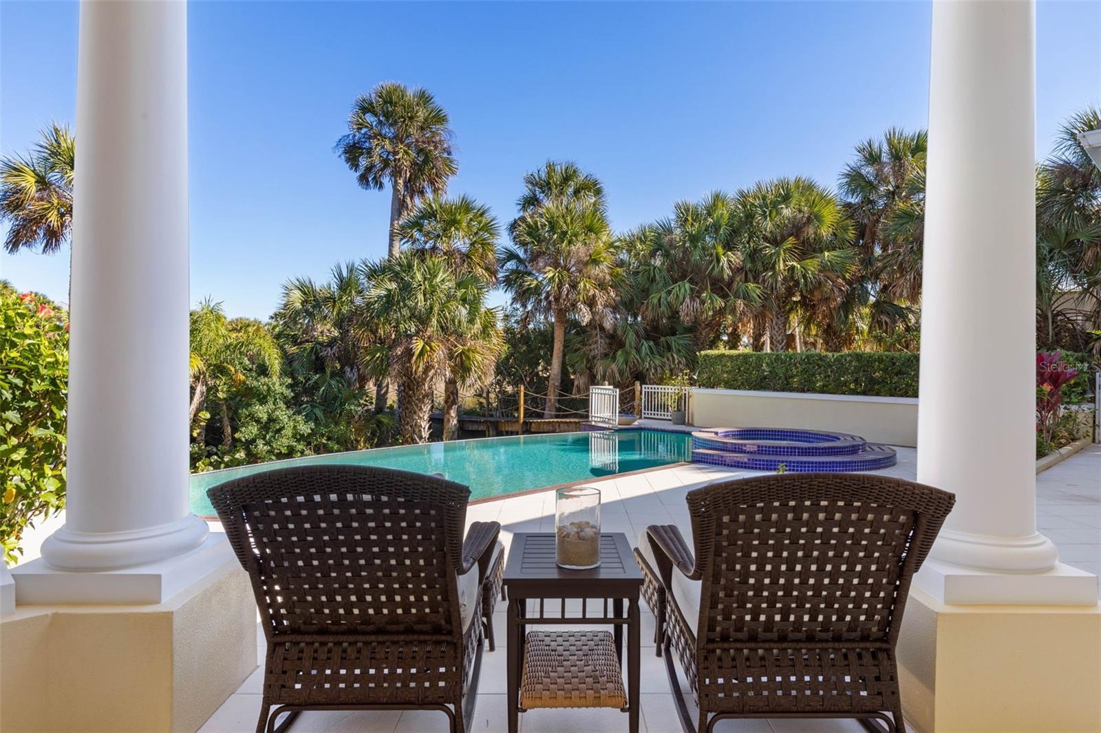 Discover the ultimate in luxury living at Island Estates! Set on more than an acre within the area's most prestigious gated community, this extraordinary estate offers a rare combination of resort-style living, uncompromising construction quality, and exceptional privacy. Constructed by a commercial developer, no expense was spared in the design or execution of this home—resulting in a residence that performs as beautifully as it presents. A paver motor court and three-car garage create a grand arrival, framed by mature palms and classic coastal architecture. Concrete construction, a custom concrete tile roof, and Pella impact glass throughout (including eight metal-framed, three-point locking doors) provide enduring durability. Upon entry through custom Jeld-Wen front doors, the home opens to a dramatic interior defined by marble flooring, soaring ceilings, architectural arches, and seven custom recessed ceiling designs, accented by five chandeliers. A striking convex picture window draws the eye outward to the expansive lanai and infinity-edge pool beyond, immediately establishing the seamless indoor-outdoor flow seen throughout the home. The chef’s kitchen is both functional and show-stopping, featuring Wood-Mode soft-close cabinetry, granite countertops, a large central island, and 10 Viking appliances, including a six-burner range with griddle, double ovens, warming drawer, convection microwave, and professional range hood. Multiple Sub-Zero refrigeration units, wine coolers, and additional refrigerators support effortless entertaining. The adjacent living spaces enjoy open sightlines to the pool and preserve, enhanced by upgraded custom lighting and whole-home entertainment systems. The first-floor owner’s suite is a private sanctuary with his-and-hers walk-in closets and a spa-inspired bath showcasing marble surfaces, a Grohe thermostatic multi-head shower, steam shower, soaking tub set within arched architecture, and refined lighting details. All interior doors—including closets—are solid wood, and Hunter Douglas blinds (with blackout shades in the primary suite and guest suite) provide comfort and privacy throughout. A separate guest suite with wet bar and walk-in closet offers ideal accommodations for visitors or multigenerational living. Upstairs, a large covered balcony overlooks the pool, fire features, and protected nature preserve—where deer, turtles, and native wildlife are frequently seen. Outdoor living rivals that of a luxury resort. The expansive tiled lanai features a heated saltwater infinity pool and spa, flanked by two fire pits. A fully equipped outdoor kitchen with granite counters, built-in grill, sink, and refrigeration anchors the space, making it ideal for hosting year-round. A thermostatically controlled gas fireplace adds warmth and ambiance indoors. Beyond the pool, a private dock with concrete tile roof, water and power, and a 10,000-lb boat lift (recently serviced with slings and bunks) provides quick, bridge-free access to the Intracoastal via Fox Cut—offering quiet waters without the noise and wake of the main channel. Private beach access completes the coastal lifestyle. The home is equipped with eight AC zones (seven app-controlled), predominantly Carrier Infinity systems updated in 2020–2021, an 80-gallon hot water heater with recirculation pump, whole-house water and air purification systems, central vacuum, and extensive security system. Don't delay!