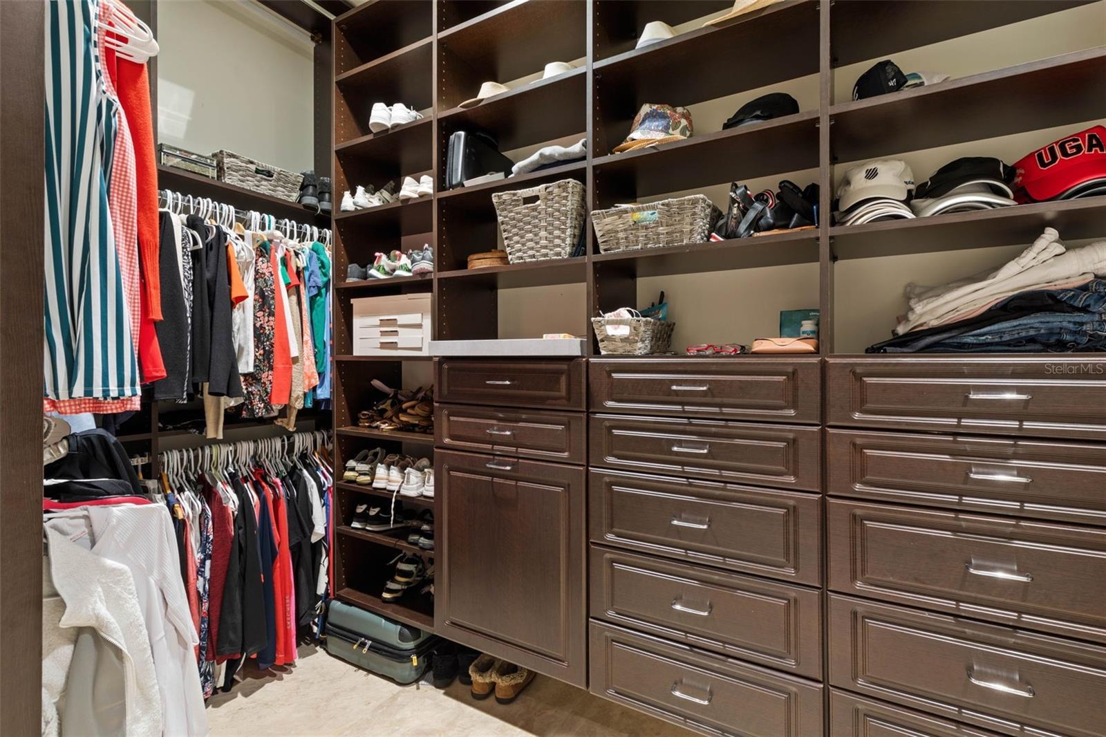 - Built-in Features, Cathedral Ceiling(s), Ceiling Fans(s), Coffered Ceiling(s), Crown Molding, Eat-in Kitchen, High Ceilings, Kitchen/Family Room Combo, Open Floorplan, Primary Bedroom Main Floor, Smart Home, Solid Wood Cabinets, Split Bedroom, Stone Counters, Thermostat, Tray Ceiling(s), Walk-In Closet(s), Window Treatments