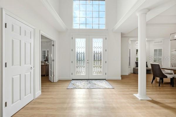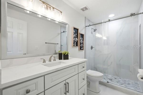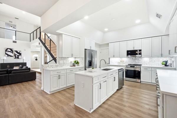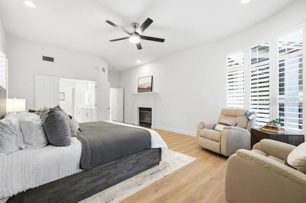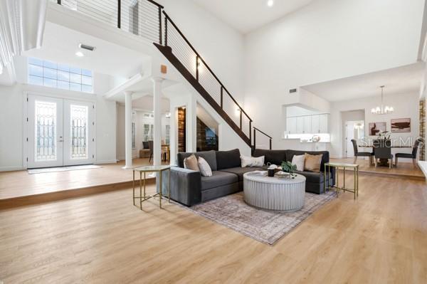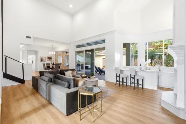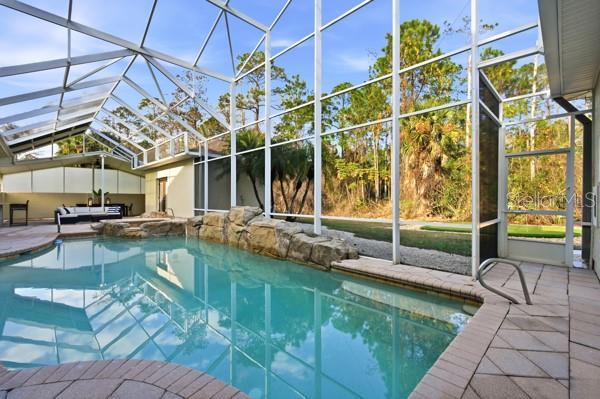 Fully renovated and designed for both everyday comfort and entertaining at scale, this expansive residence offers nearly 5,000 square feet of modern living in a private, resort-style setting within the highly sought-after Hunters Ridge community. Situated on a covered lot with only one direct neighbor, the home delivers space, privacy, and functionality that stand out in today’s market. The interior is light, open, and cohesive, featuring wide-plank flooring, fresh neutral finishes, and abundant natural light throughout. The main living areas are anchored by a statement fireplace and flow effortlessly into formal and casual dining spaces, creating a layout that feels both polished and inviting. The updated kitchen opens to the living space and connects seamlessly to the outdoor entertaining areas, making it ideal for gatherings large or small. A true highlight of the property is the separate mother-in-law suite, complete with its own living area, kitchenette, full bathroom, and private entrance. This flexible space is perfect for guests, extended family, multigenerational living, or a private work-from-home setup. The primary suite is a private retreat, featuring a spa-inspired bathroom with dual vanities, a large walk-in shower, and a freestanding soaking tub. Additional bathrooms have been fully updated with clean, modern finishes and thoughtful design. Outdoor living is where this home truly shines. A screened pool and spa are surrounded by multiple covered seating and dining areas, complemented by a fully built-in outdoor kitchen. The backyard offers a peaceful, private backdrop with no rear neighbors, creating an ideal setting for entertaining or relaxing year-round. Additional features include an in-home fitness or flex room, generous storage throughout, and a floor plan that offers both openness and separation where it matters. This is a rare opportunity to own a fully renovated, large-scale home with premium indoor and outdoor living in Hunters Ridge, one of Ormond Beach’s most established communities.