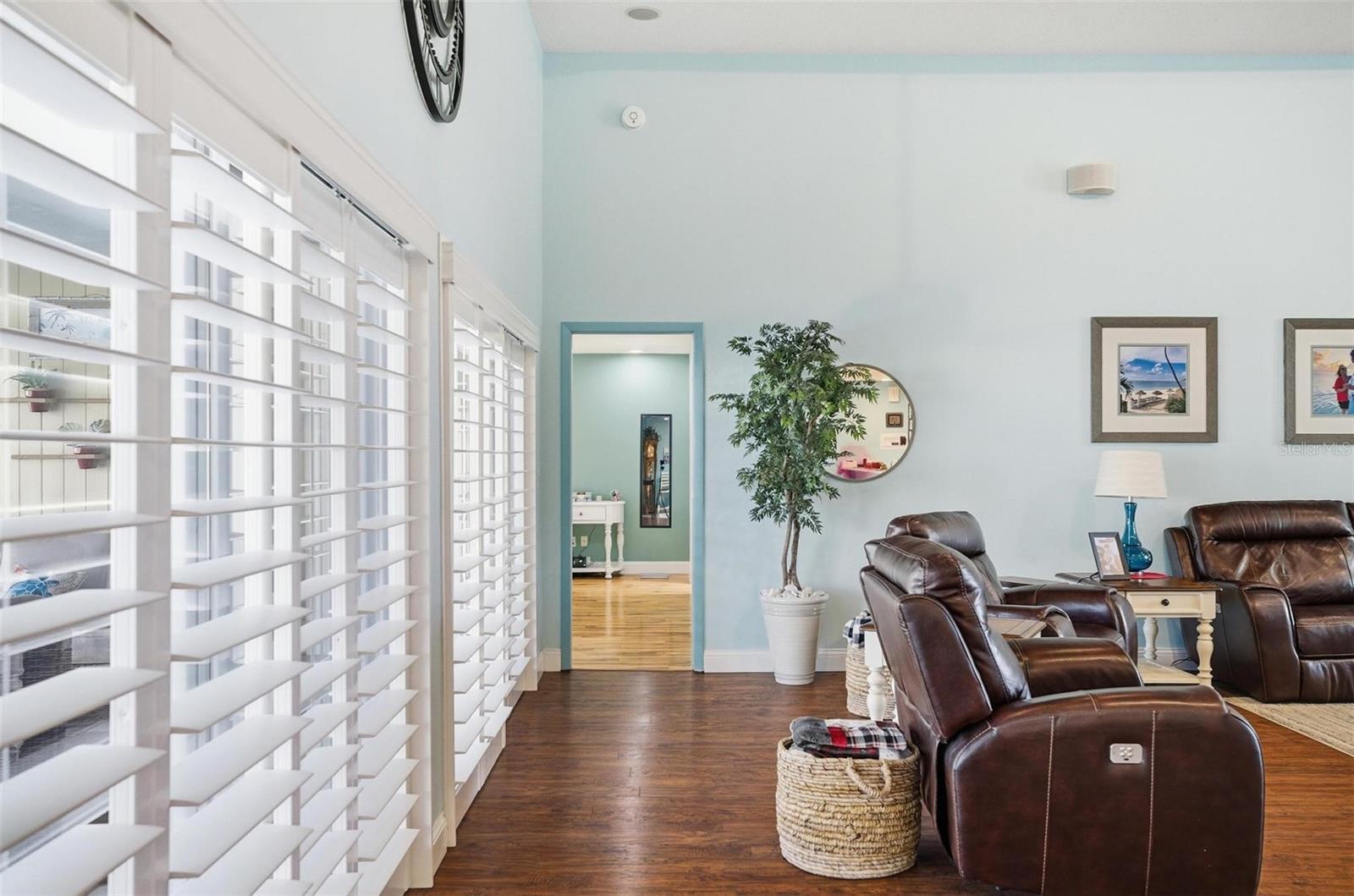 - Ceiling Fans(s), Eat-in Kitchen, High Ceilings, Open Floorplan, Solid Surface Counters, Solid Wood Cabinets, Tray Ceiling(s), Walk-In Closet(s), Window Treatments