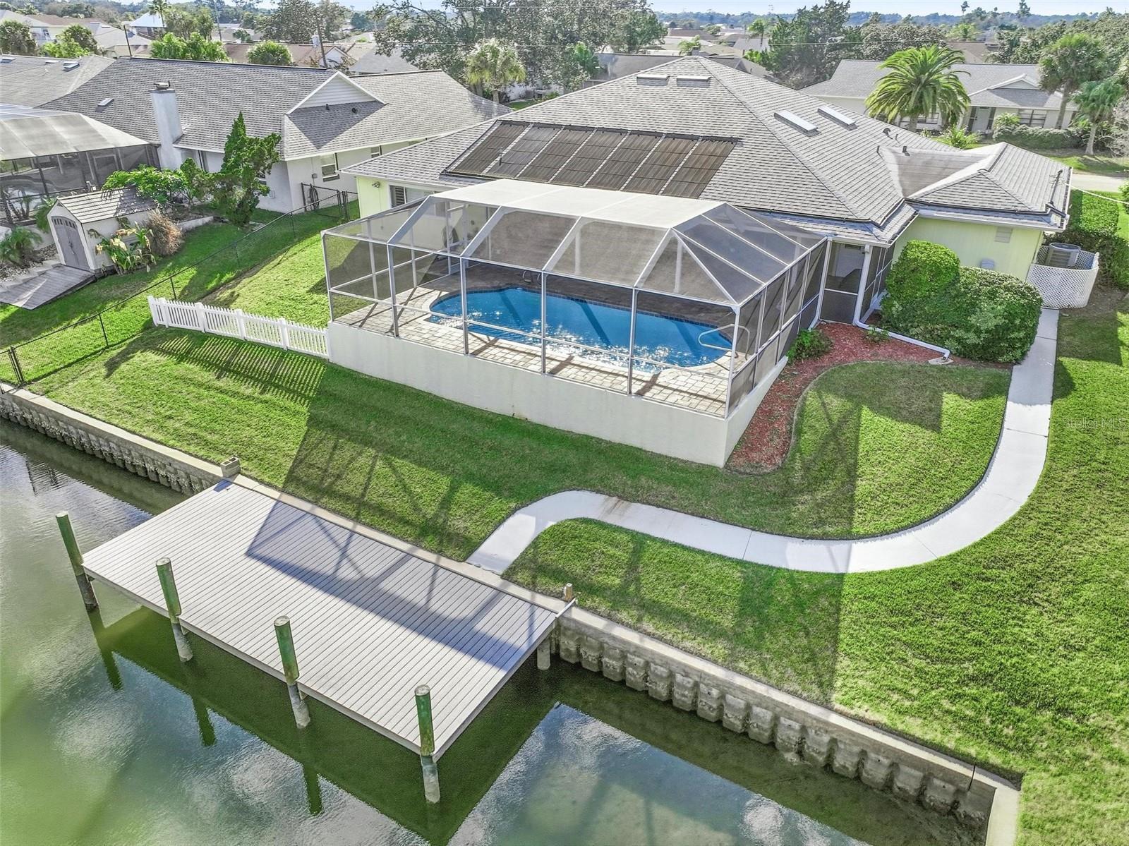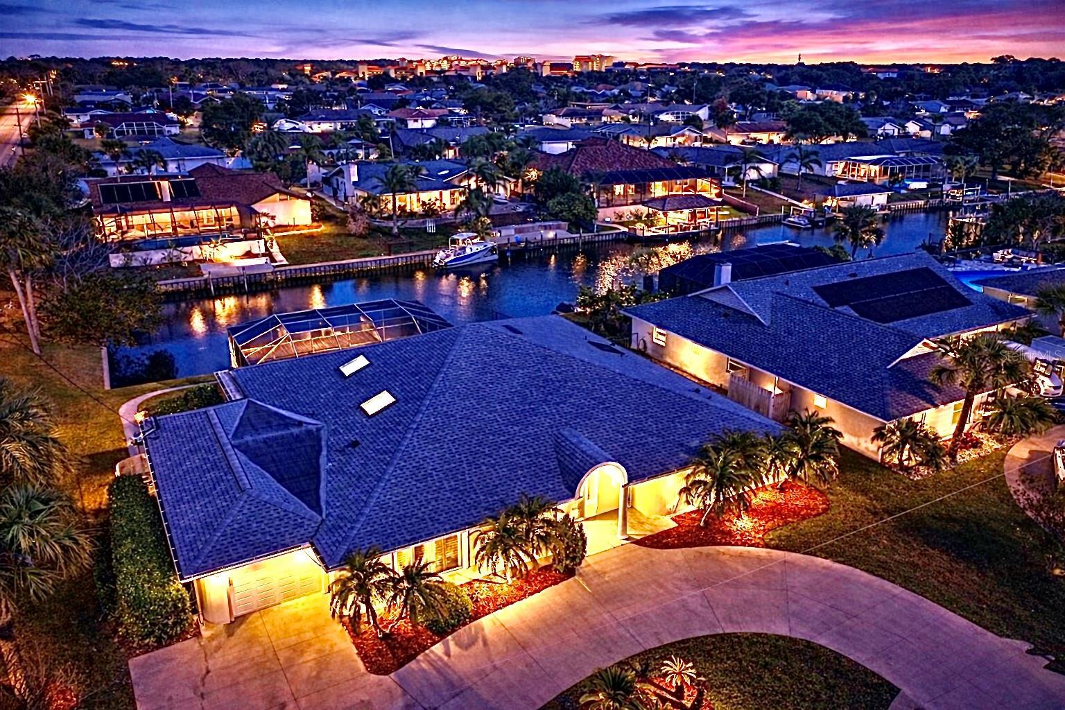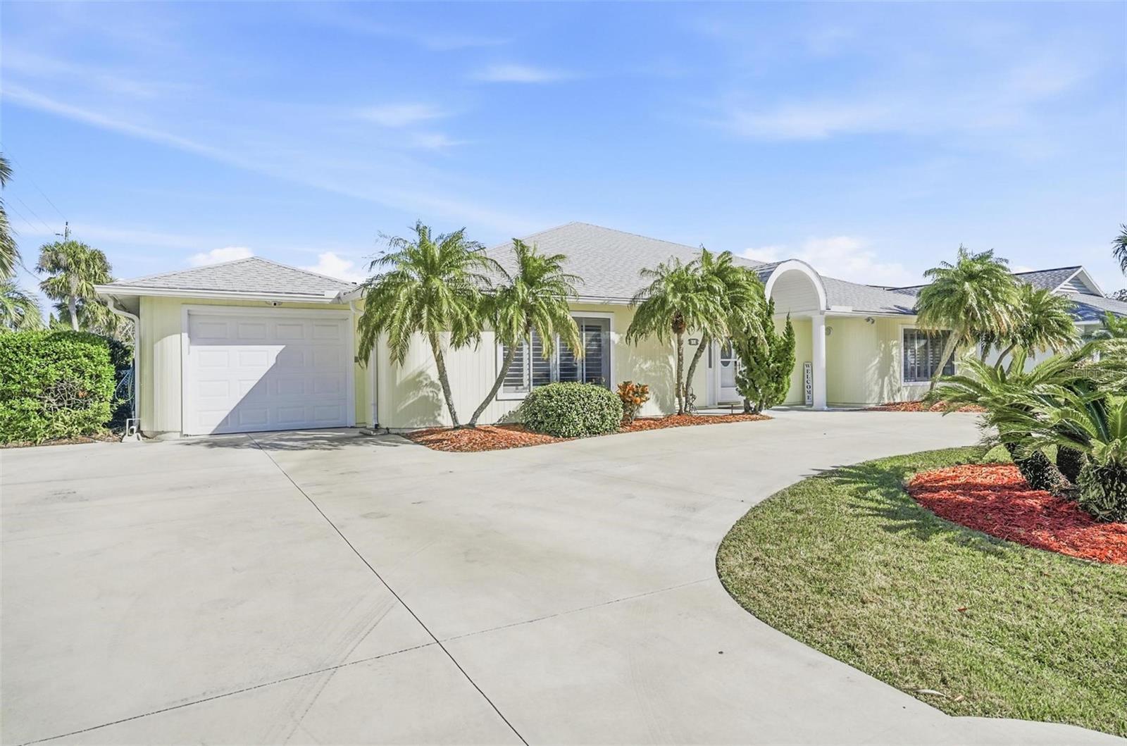 ENJOY THE BEST OF SALTWATER CANAL LIVING Live the Florida dream with direct saltwater canal access—just a ¾-mile boat ride to the Intracoastal Waterway. A nearby marina provides convenient fuel and supplies, making every outing on the water effortless. After a day of boating, return to your 30-foot composite dock, cool off in the solar-heated pool, and entertain on the expansive 1,500-sq-ft paver pool deck (2017) and covered lanai. This home delivers the ultimate indoor-outdoor lifestyle. Set on a generous 14,725-sq-ft corner lot, this custom-built residence is filled with natural light thanks to whole-house plantation shutters and multiple skylights. The impressive 31' x 20' great room features soaring cathedral ceilings and a full wall of sliding glass doors that frame tranquil canal and pool views, creating a seamless connection to the outdoors. The updated kitchen offers a full wall of bamboo cabinetry for exceptional storage, stainless steel appliances, and an open layout that flows into the dining area. With its own set of sliders to the lanai, the dining space makes poolside entertaining effortless. Four spacious bedrooms and 2½ baths provide comfortable accommodations for family and guests. Oversized closets are found throughout, along with two additional large interior storage closets ideal for climate-controlled storage. The unique 2-car tandem garage offers abundant room for vehicles, tools, and recreational gear. Major updates provide peace of mind, including: Roof (2021) A/C (2022) with warranty through 2032 Water heater (2023) Pool resurfaced (2021) Solar pool panels (2019) Pool re-screened (2017) Brand-new circular driveway (2024) Additional features include a termite bond, reverse-osmosis kitchen filtration system, and front/back sprinklers on a separate reduced-cost water meter. This is where waterfront living, comfort, and convenience come together. Every day feels like a vacation.