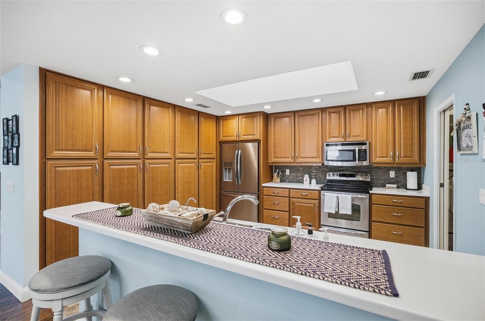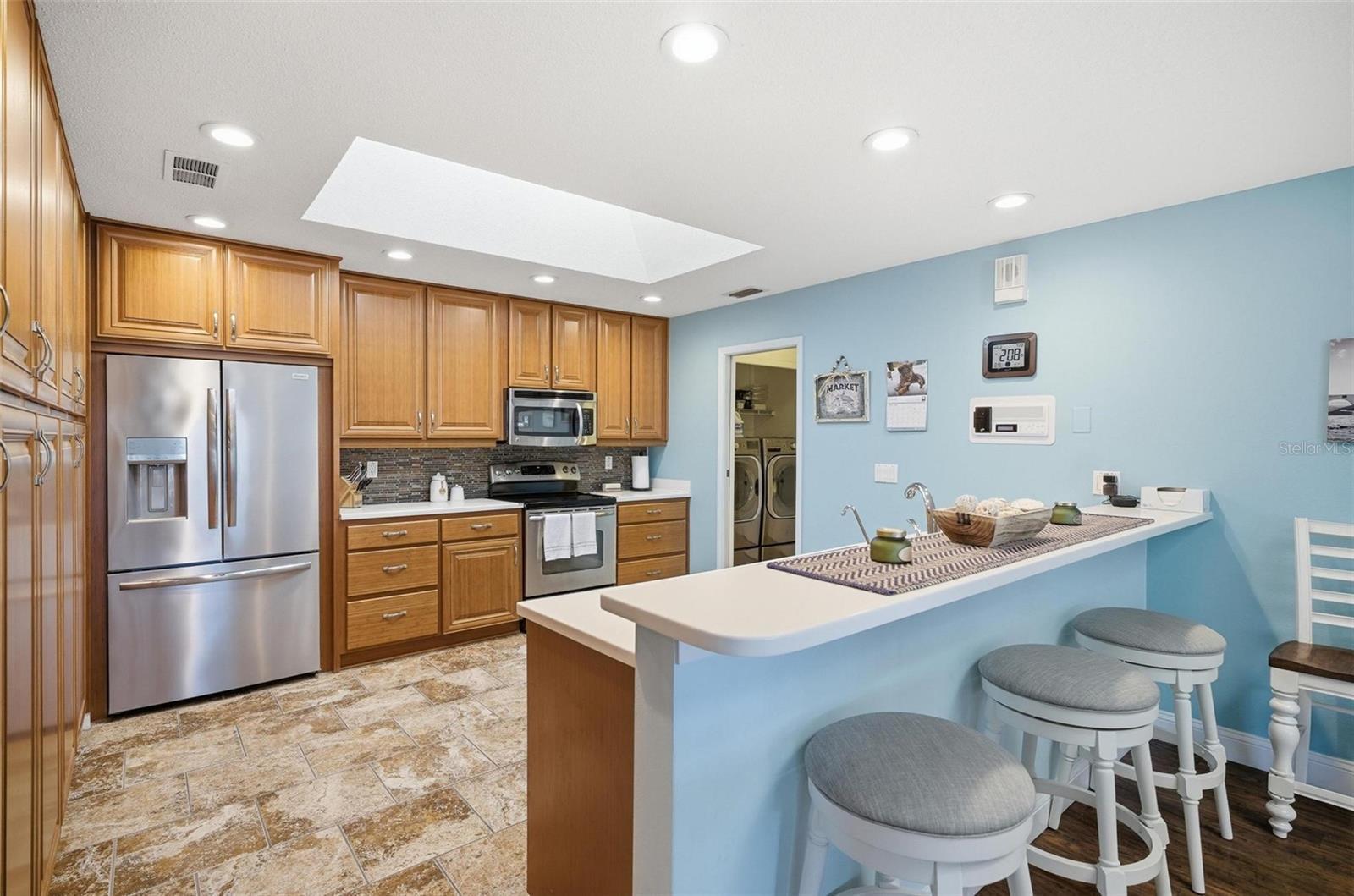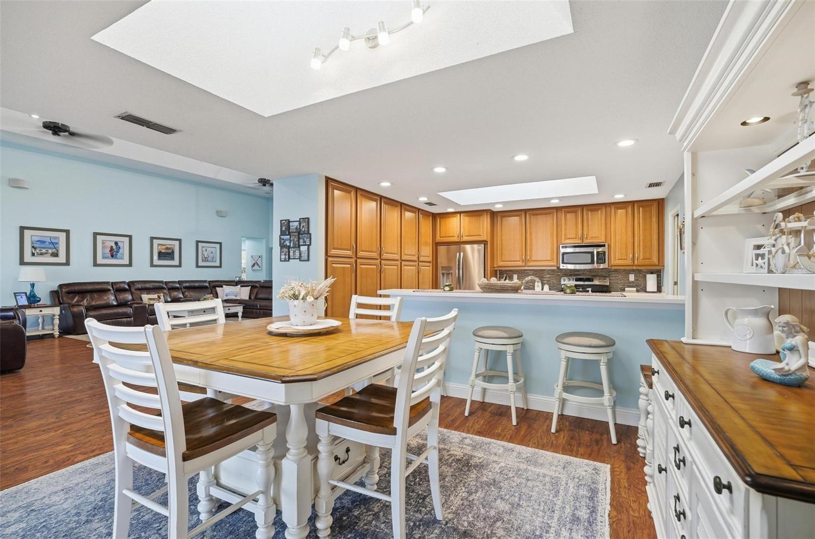 ENJOY THE BEST OF SALTWATER CANAL LIVING Live the Florida dream with direct saltwater canal access—just a ¾-mile boat ride to the Intracoastal Waterway. A nearby marina provides convenient fuel and supplies, making every outing on the water effortless. After a day of boating, return to your 30-foot composite dock, cool off in the solar-heated pool, and entertain on the expansive 1,500-sq-ft paver pool deck (2017) and covered lanai. This home delivers the ultimate indoor-outdoor lifestyle. Set on a generous 14,725-sq-ft corner lot, this custom-built residence is filled with natural light thanks to whole-house plantation shutters and multiple skylights. The impressive 31' x 20' great room features soaring cathedral ceilings and a full wall of sliding glass doors that frame tranquil canal and pool views, creating a seamless connection to the outdoors. The updated kitchen offers a full wall of bamboo cabinetry for exceptional storage, stainless steel appliances, and an open layout that flows into the dining area. With its own set of sliders to the lanai, the dining space makes poolside entertaining effortless. Four spacious bedrooms and 2½ baths provide comfortable accommodations for family and guests. Oversized closets are found throughout, along with two additional large interior storage closets ideal for climate-controlled storage. The unique 2-car tandem garage offers abundant room for vehicles, tools, and recreational gear. Major updates provide peace of mind, including: Roof (2021) A/C (2022) with warranty through 2032 Water heater (2023) Pool resurfaced (2021) Solar pool panels (2019) Pool re-screened (2017) Brand-new circular driveway (2024) Additional features include a termite bond, reverse-osmosis kitchen filtration system, and front/back sprinklers on a separate reduced-cost water meter. This is where waterfront living, comfort, and convenience come together. Every day feels like a vacation.