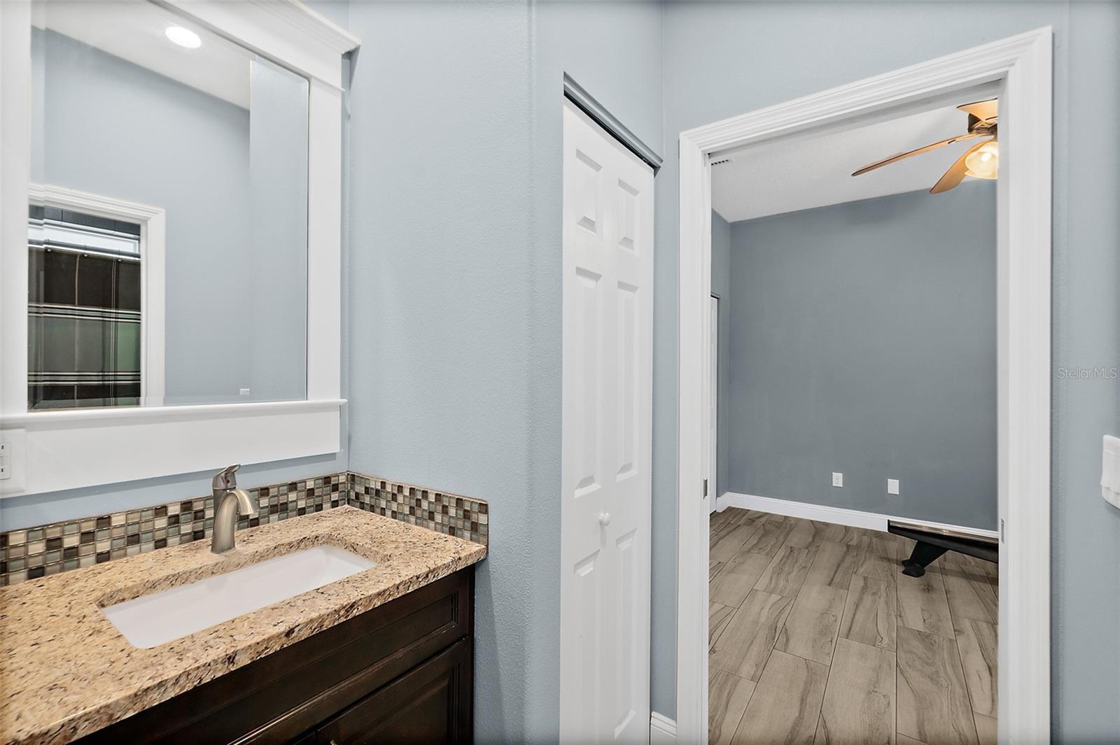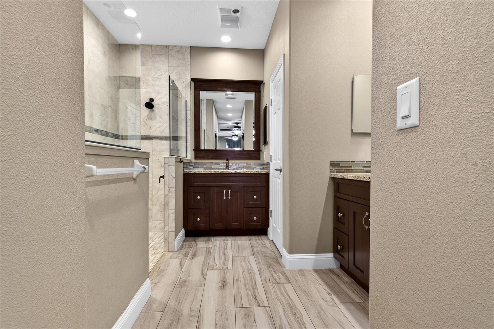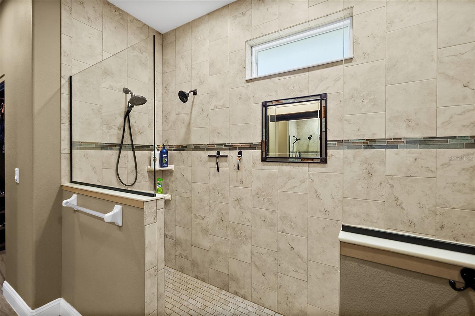 - Ceiling Fans(s), Eat-in Kitchen, High Ceilings, Kitchen/Family Room Combo, Primary Bedroom Main Floor, Solid Surface Counters, Split Bedroom, Walk-In Closet(s), Window Treatments