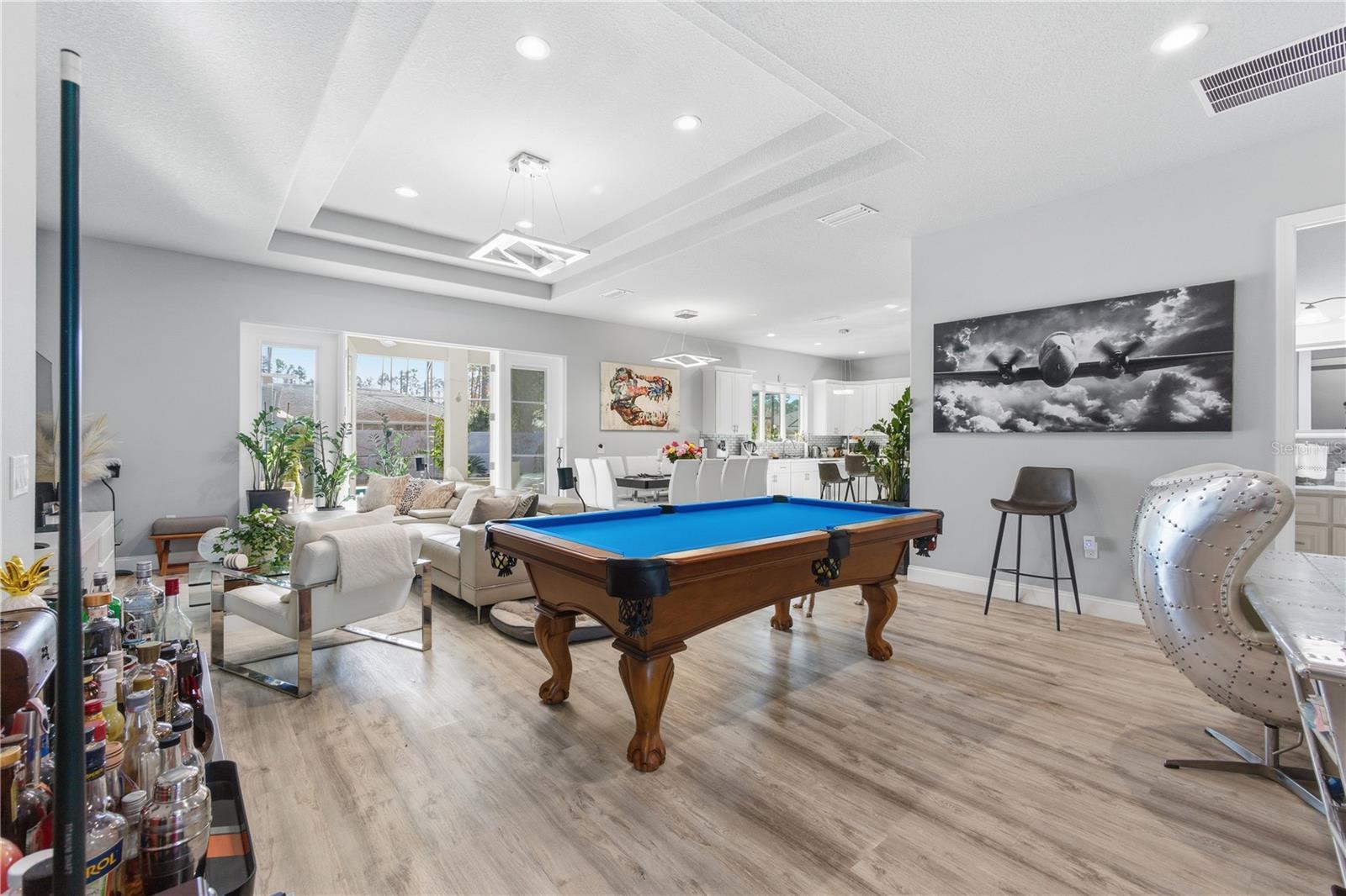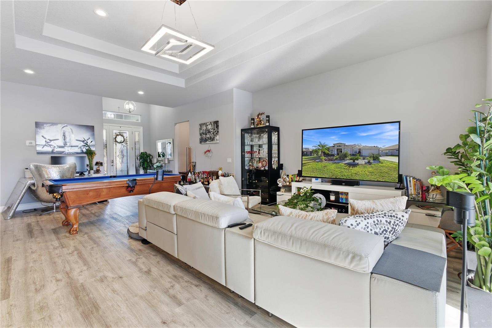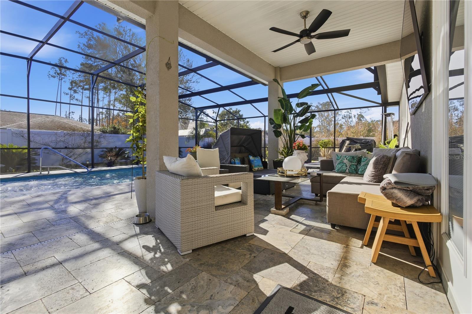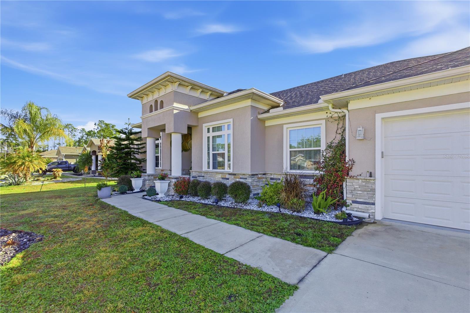 Welcome to this nearly new, 2022-built heated pool home, offering a fully fenced backyard and a 3-car tandem garage (two-car frontage with an extra-deep bay ideal for a third vehicle, boat, or additional storage). Step inside to a bright, open layout highlighted by soaring tray ceilings and a spacious, airy feel throughout. The open-concept floor plan is perfect for entertaining, featuring a beautiful light-filled kitchen with a large center island and island seating, ideal for gathering with family and friends. The private primary suite showcases a tray ceiling and a luxurious en-suite bath with his-and-hers vanities, a soaking garden tub, a large walk-in shower, and generous walk-in closets. The split-bedroom layout provides privacy, with the second and third bedrooms offering high ceilings and sharing a spacious second full bath. Step outside to your own private retreat—an impressive in-ground heated pool with a huge screened lanai, accented by elegant travertine tile flooring. The expansive covered area is perfect for year-round outdoor living and entertaining, all within a beautifully landscaped and private backyard. Located in one of Palm Coast’s most desirable NO-HOA communities with no rental restrictions, this home offers exceptional flexibility for primary residence, second home, or investment use. Enjoy proximity to miles of biking and hiking trails, the Palm Coast Tennis & Pickleball Center, and just minutes to the beach. Welcome home to your own private oasis.--