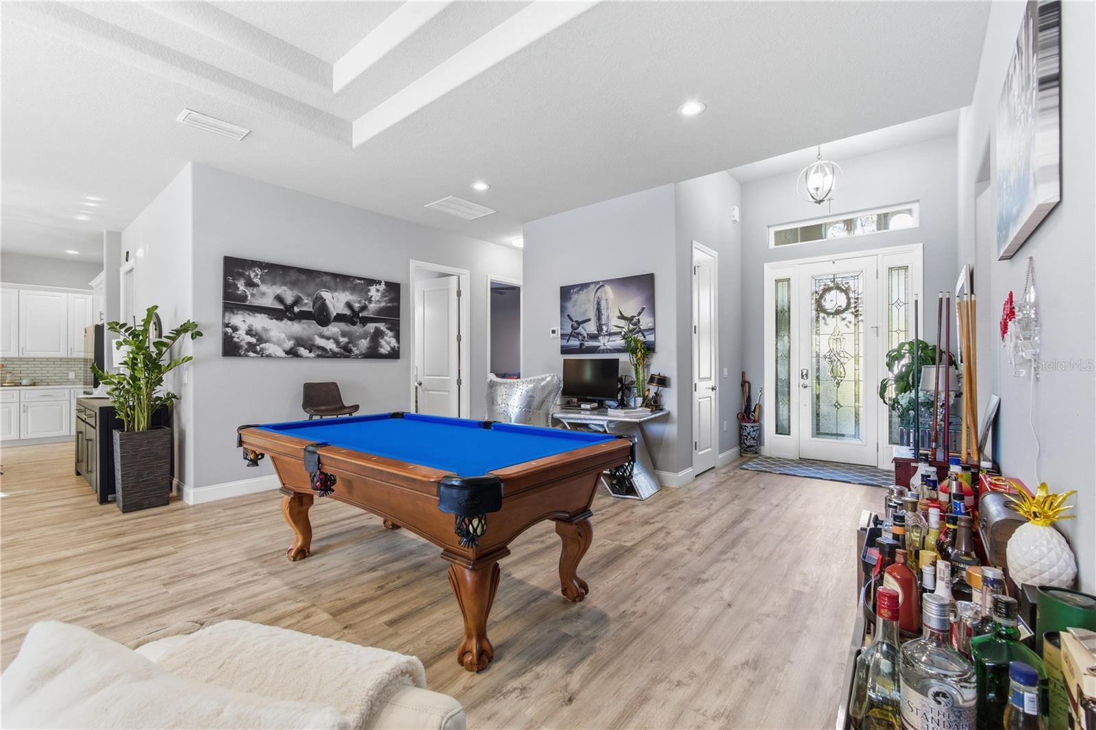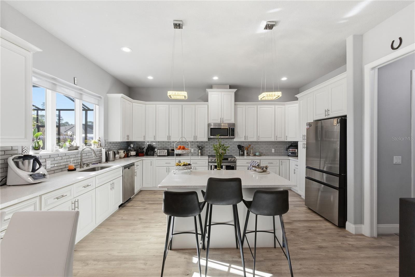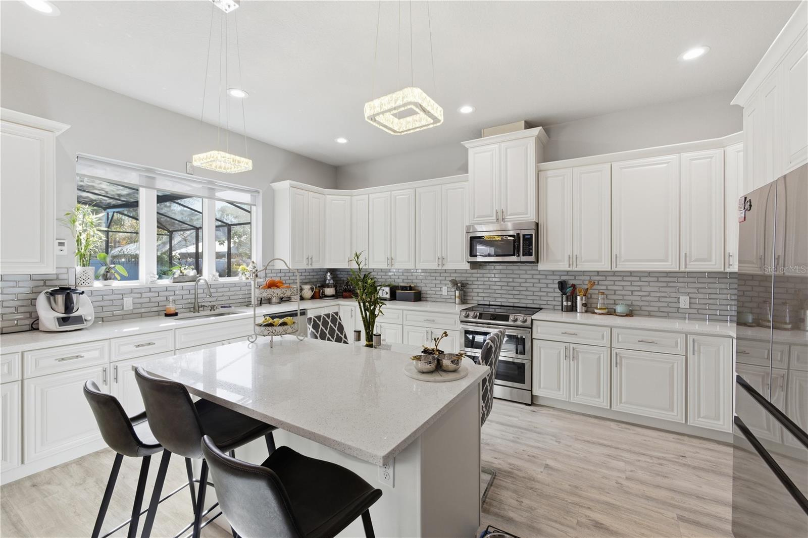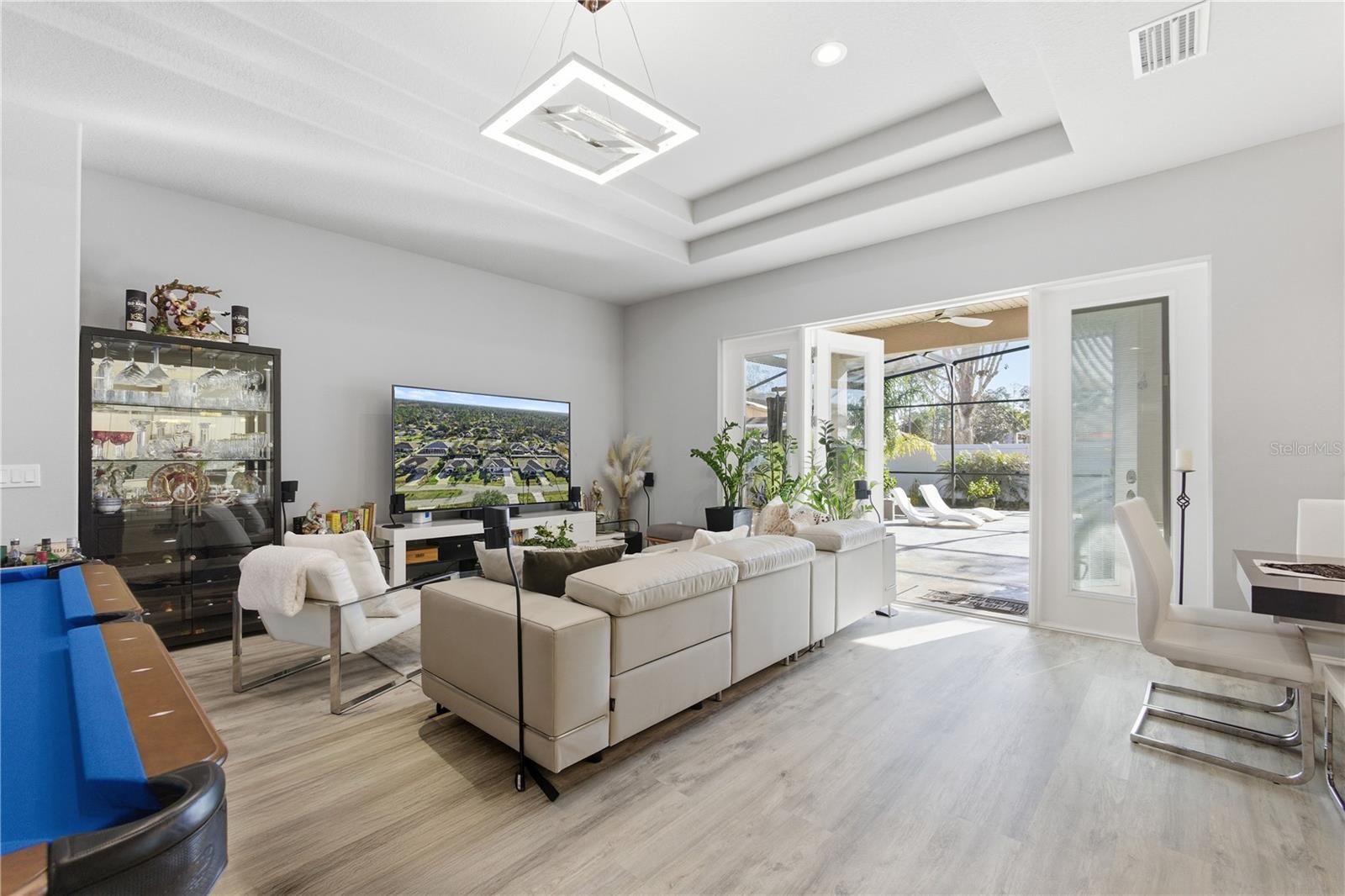 Welcome to this nearly new, 2022-built heated pool home, offering a fully fenced backyard and a 3-car tandem garage (two-car frontage with an extra-deep bay ideal for a third vehicle, boat, or additional storage). Step inside to a bright, open layout highlighted by soaring tray ceilings and a spacious, airy feel throughout. The open-concept floor plan is perfect for entertaining, featuring a beautiful light-filled kitchen with a large center island and island seating, ideal for gathering with family and friends. The private primary suite showcases a tray ceiling and a luxurious en-suite bath with his-and-hers vanities, a soaking garden tub, a large walk-in shower, and generous walk-in closets. The split-bedroom layout provides privacy, with the second and third bedrooms offering high ceilings and sharing a spacious second full bath. Step outside to your own private retreat—an impressive in-ground heated pool with a huge screened lanai, accented by elegant travertine tile flooring. The expansive covered area is perfect for year-round outdoor living and entertaining, all within a beautifully landscaped and private backyard. Located in one of Palm Coast’s most desirable NO-HOA communities with no rental restrictions, this home offers exceptional flexibility for primary residence, second home, or investment use. Enjoy proximity to miles of biking and hiking trails, the Palm Coast Tennis & Pickleball Center, and just minutes to the beach. Welcome home to your own private oasis.--