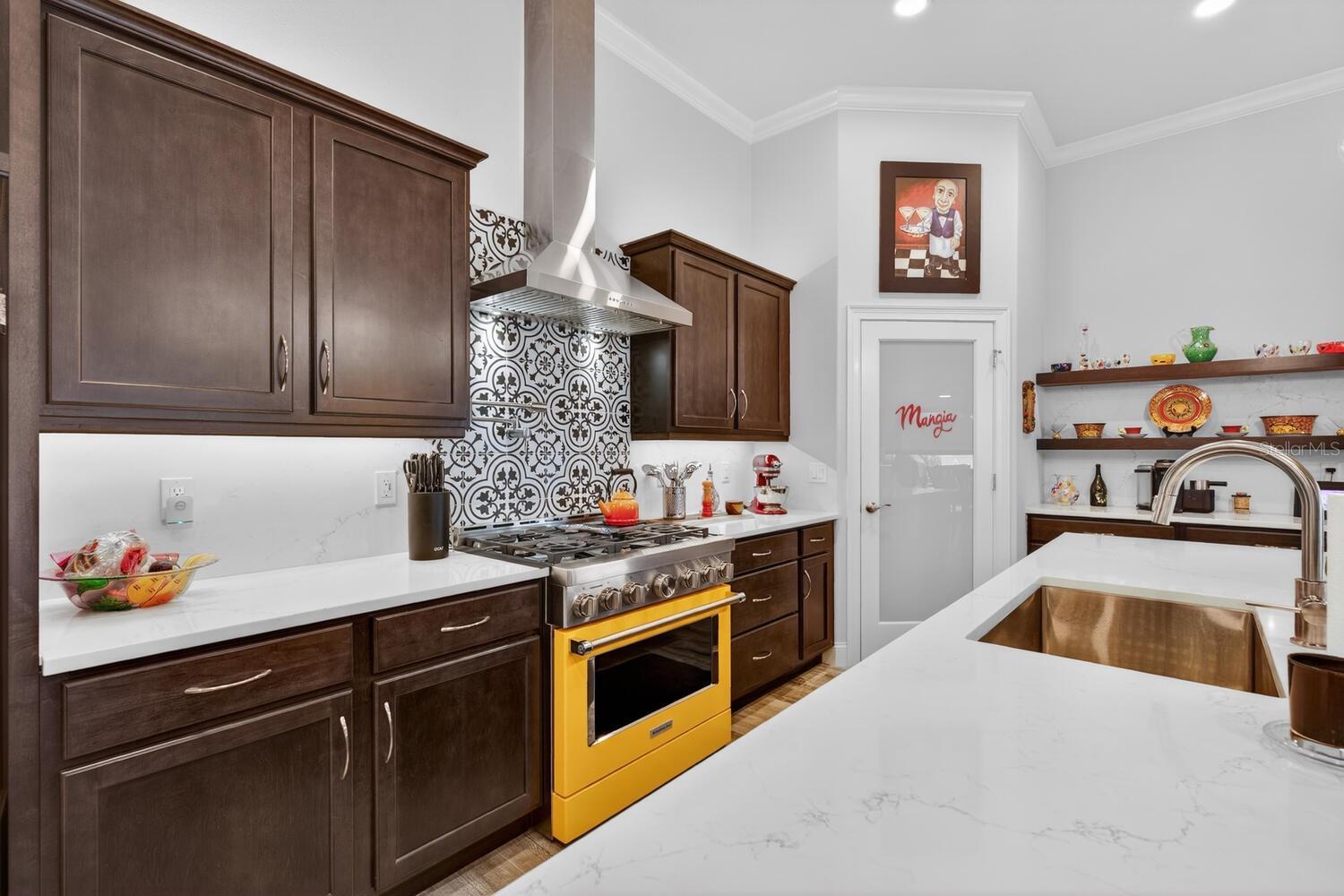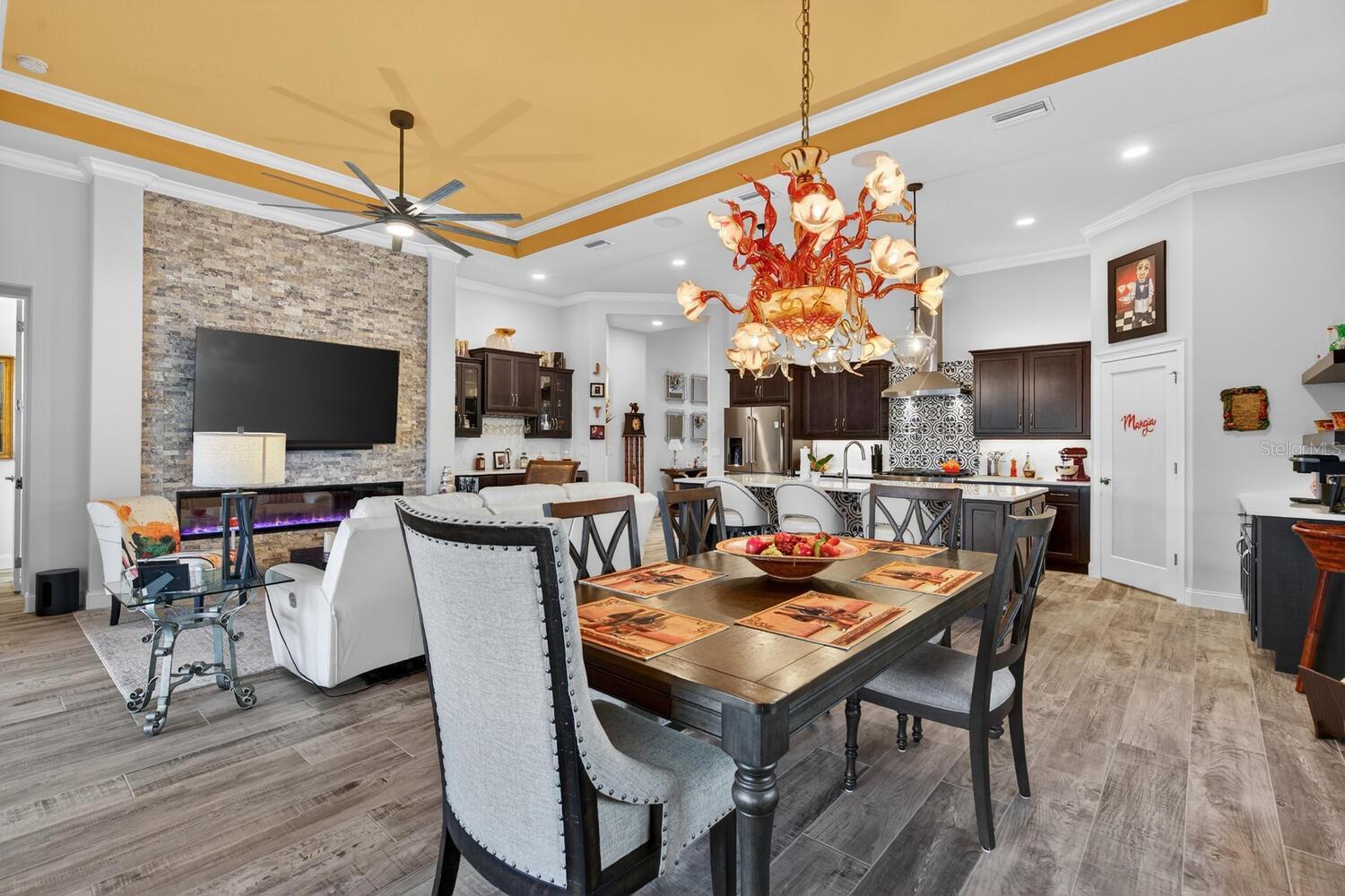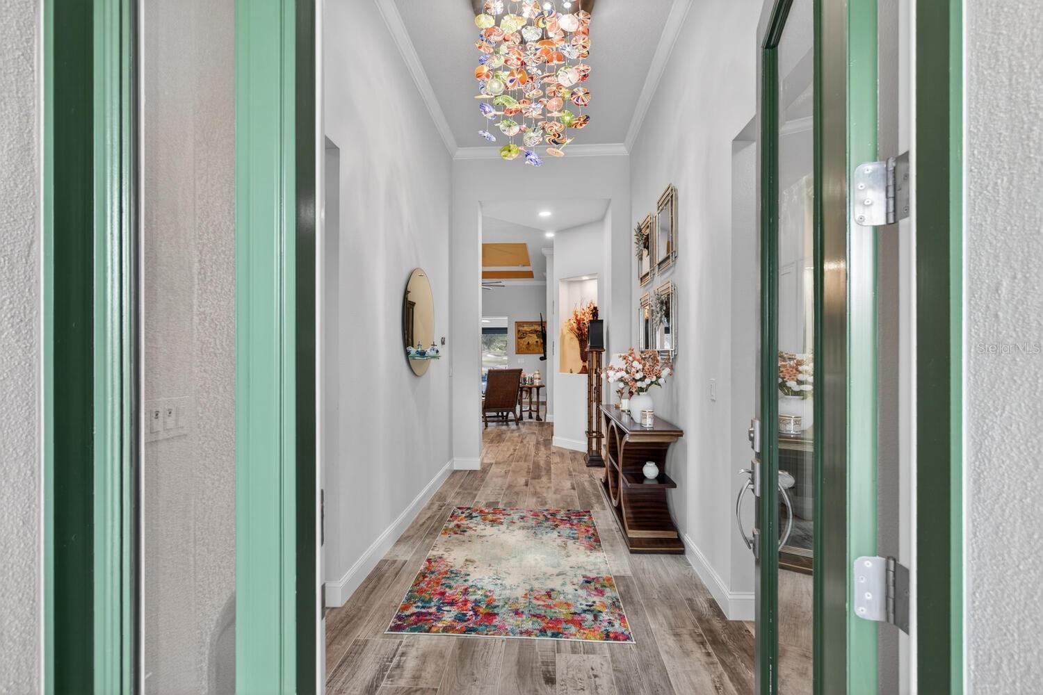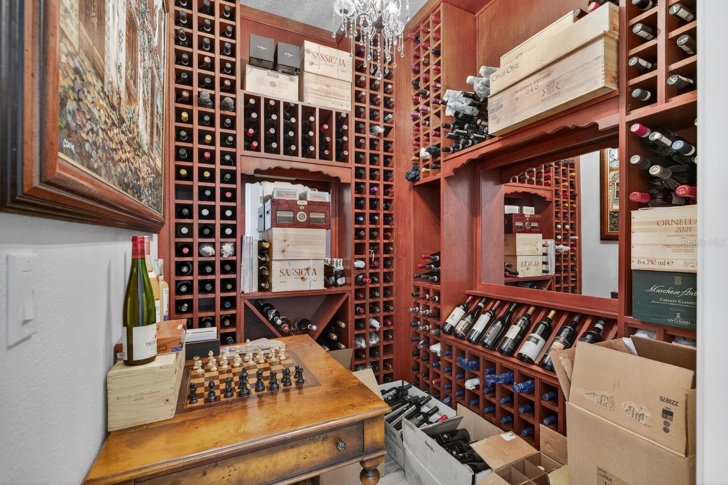 Experience luxury living in this beautifully appointed Saltwater-built home, situated in the distinguished gated golf community of The Conservatory at Hammock Beach. This elegant residence masterfully blends modern sophistication with effortless indoor-outdoor flow, welcoming you from the moment you enter with soaring ceilings, an abundance of natural light, and breathtaking views through fully retractable sliding glass doors that seamlessly open to your private outdoor oasis. The home offers serene vistas overlooking a lake and the golf course, with a peaceful preserve beyond. The heart of the residence is an inviting open-concept layout that combines a gourmet kitchen, adjoining dining area, and spacious family room—ideal for both everyday living and effortless entertaining. The chef’s dream kitchen features high-end finishes, including KitchenAid appliances with a six-burner gas range, quartz countertops, a stunning custom tile backsplash, a dedicated coffee station, a full wet bar with beverage refrigerator, and a large walk-in pantry. The adjacent family room is highlighted by a striking stone wall with a linear fireplace. Step outside to an oversized lanai equipped with a retractable, hurricane-rated screen, a summer kitchen complete with sink and beverage refrigerator, and a large saltwater pool that enjoys open, unobstructed views over the lake and golf course. Additional standout features include an 800-bottle refrigerated wine room located off the entry, a versatile office (which can serve as a fourth bedroom), and a serene primary suite boasting peaceful views, a luxurious bath with a large walk-in shower, dual vanities, and heated floors. Two additional guest bedrooms provide ample space, one of which includes an ensuite bath. Other thoughtful upgrades enhance everyday comfort and convenience: an epoxy-finished garage floor, remote-controlled blinds in the primary suite and dining room, California Closets storage solutions, a whole-house Sonos sound system, and a dedicated pool bathroom. Nestled within The Conservatory—a premier community home to the signature Tom Watson golf course—this exceptional property provides access to resort-style amenities, including a pool, clubhouse, and fitness facilities (with membership optional for residents). Don’t miss the opportunity to own this turnkey masterpiece in one of Palm Coast’s most sought-after golf communities.