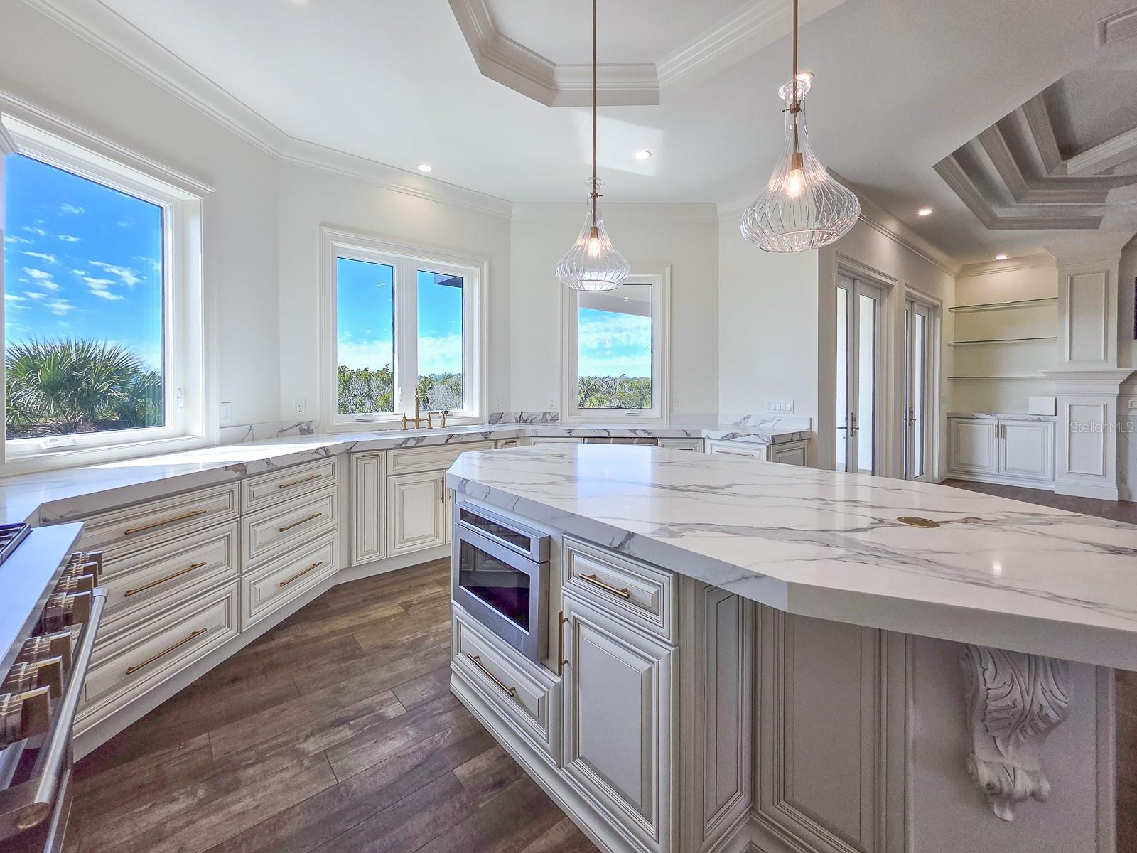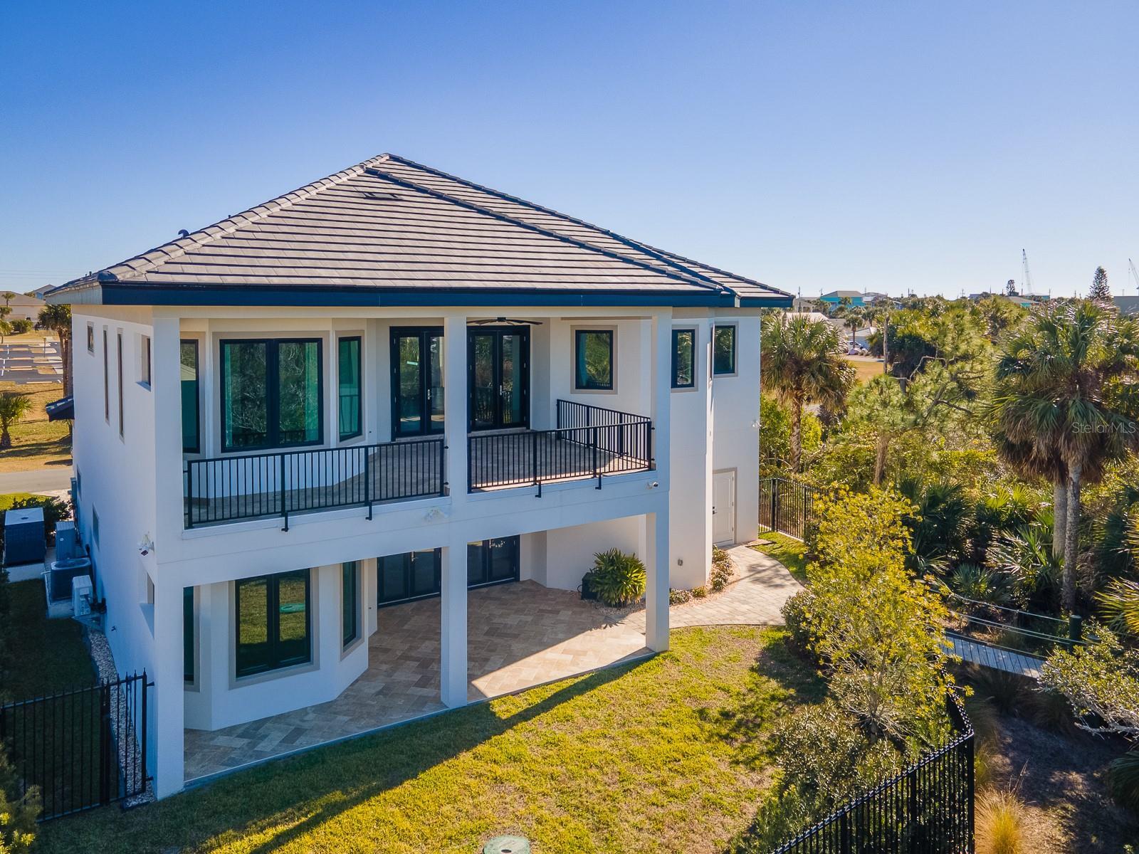 Stunning, magnificent, waterfront beachside home! This custom-built home has access to the ICW via a wide deep saltwater canal. The dock with 10,000-pound covered boat lift is just steps from your backyard on an elevated, private walkway through a lit conservation area. Built in 2024, this residence is a masterpiece of meticulous craftsmanship. With 3 bedrooms, 3 baths, numerous bonus rooms, expansive outdoor living space and a huge garage, you will find elegant, thoughtful details in every space. The beach is a short 3 block walk away. This beach town is easily navigated by a golf cart or bicycle, a wonderfully casual way to get around that Flagler Beach that residents treasure. Enjoy private luxury and host visitors in grand style. From the stately elevated entrance, you are greeted by double leaded glass doors into a foyer with soaring ceilings and modern light fixtures, setting the stage for the exquisite interior within. Natural light illuminates every room. An inset fireplace with a generous mantel and built-ins, back-lit custom tray ceilings, modern crown moldings, high baseboards and wood plank accented by marble look porcelain tiles throughout are elegant touches. The spacious living room offers the perfect spot to entertain guests and easily transitions to the covered, outdoor balcony showcasing breathtaking views of the estuary and the canal. The kitchen, designed to present an elegant view from the living space, has a clever, concealed pantry plus an open-end butler’s pantry connecting the kitchen to the dining room. It features GE Monogram Energy Star appliances, quartz countertops, a center island with electrical pop-ups, a 6-burner gas cooktop, electric oven, a microwave drawer, and soft-close cabinets with pull-out shelving. The grand primary suite is a sanctuary, featuring a massive walk-in closet, and an opulent ensuite bath with Kohler & Savoy House fixtures. This ensuite bath has a soaking tub and an oversized shower enclosed by glass with both invigorating and relaxing shower features for a spa-like experience. Completing the upper level is a large guest bedroom, second full bath, spacious laundry room and an office with windows that flood the room with natural light. On the lower level, multi-generational living is possible with a large bedroom and bath, a living space and bonus room outfitted with built-in shelving. These rooms could otherwise serve as a home business center, a fitness or hobby area. At the rear of the property, retreat into privacy afforded by scrub oaks and marsh native plants in the estuary. Enclosed by elegant wrought iron fencing, the rear outdoor space will accommodate a pool and outdoor kitchen under an expansive covered back porch. An elevator shaft is ready for mechanicals. A seawall on the canal side, a 38kw Honeywell whole house generator fed by a 500-gallon propane tank and hurricane-impact roll-out casement windows and doors provide peace of mind and security. Smart features include programmable thermostats, two tankless gas hot water heaters, garage door lifts and a security system featuring six outdoor cameras. The four-car air-conditioned 1800 sq foot garage with an interior safe room and recessed LED light fixtures is a car enthusiast’s dream space. Flagler Beach is a 3-mile drive from I-95, the shortest distance from an Interstate in FL. Ideally positioned between St Augustine and Daytona Beach with an International Airport, this home is also just an hour and a half to Orlando.