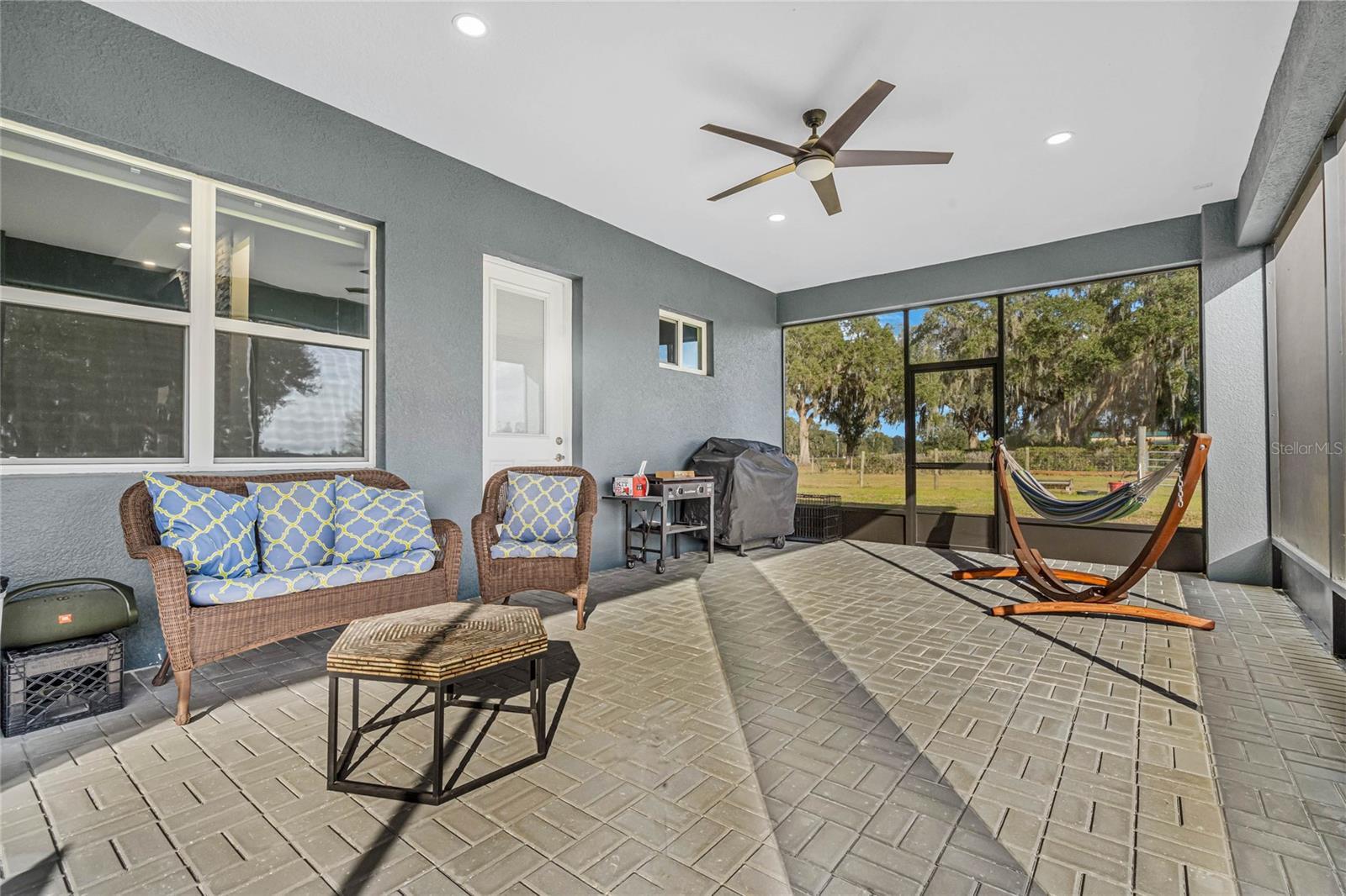 Exquisite Country Estate with Luxury Living: Acreage, Elegance, and Comfort! Nestled on 4.88 acres of picturesque land, this stunning property offers a perfect blend of modern luxury and country charm. As you enter through the fenced and cross-fenced surroundings, the beautiful landscape welcomes you to a world of tranquility and sophistication. Key Features: Size: 4.88 acres of expansive and well-maintained grounds, perfect for livestock enthusiasts. Energy Efficiency: Icylene spray foam insulation graces the block walls and roof, ensuring year-round comfort. Endless Comfort: Enjoy an on-demand hot water system and a complete water treatment system for ultimate convenience. Structural Delights: A 30x48 pole barn, oversized 3-car garage, and a durable metal roof showcase the property's durability and functionality. Interior Elegance: Granite adorns every surface, from countertops to the luxurious master bedroom tray ceiling. Masterful Retreat: A large master bedroom with his and her closets and a custom walk-around shower with dual shower heads, a wand, and a rain option provide a spa-like escape. Modern Amenities: All-new appliances from 2021, most Bluetooth-compatible, add a touch of contemporary convenience. Entertainment Oasis: A 45x15 screened-in back porch with a custom entertainment center featuring an electric fireplace provides the perfect setting for gatherings. Work from Home: A spacious office/den caters to those seeking a private workspace. Bedrooms & Bathrooms: Three generously-sized bedrooms, sharing a Jack and Jill bathroom for convenience. An additional bathroom for the fourth bedroom and guests, ensuring privacy and comfort. Tasteful tile and wood laminate flooring throughout the home. Outdoor Living: Immerse yourself in nature with a paverstone fire pit in the backyard, creating an ideal space for evening gatherings. An asphalt driveway and attic storage over the garage add practicality to the property. Total Comfort, Total Space: Boasting 3,395 square feet of living area and a grand total of 5,261 square feet under roof, this home provides ample space for all your needs. This is more than a home; it's a lifestyle! Schedule your private tour and experience the unparalleled luxury and tranquility that this property offers. Welcome to your dream estate! Bedroom Closet Type: Walk-in Closet (Primary Bedroom).