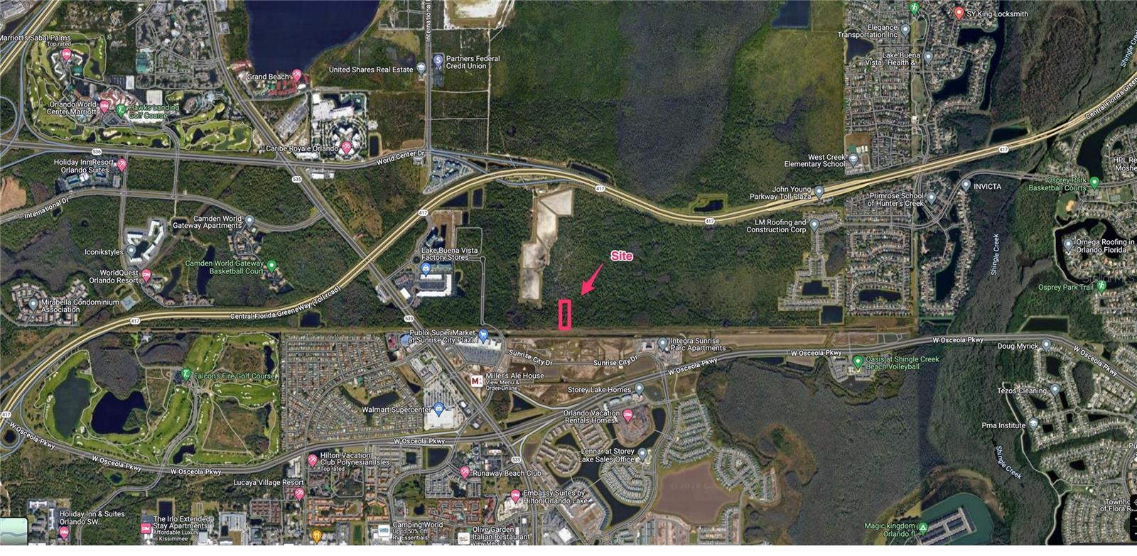 Commercial opportunity awaits! This 2.58+/- acre site is prime for development with an assembly of 80+ acres. Located right off of Central Florida Greeneway and Lake Buena Vista this property is surrounded by tons of development potential from mixed-use to multi-family development. With endless development opportunities, this parcel holds the potential to open a treasure to the surrounding parcels. Adjacent parcels are available. Subject to zoning and city approvals