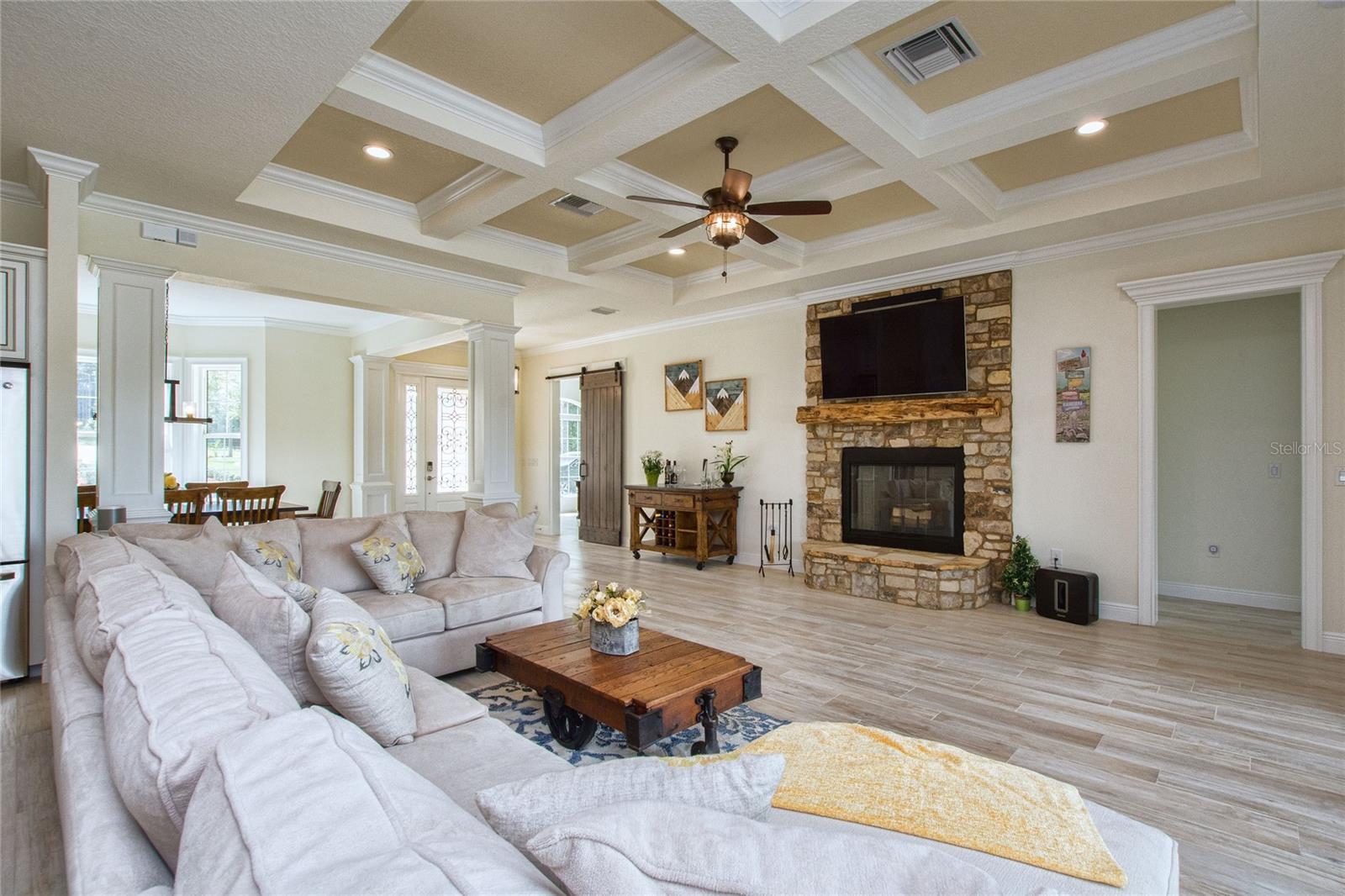 - Coffered Ceiling(s), Crown Molding, Eat-in Kitchen