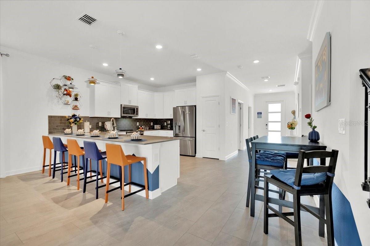 - Built-in Features, Ceiling Fans(s), High Ceilings, Kitchen/Family Room Combo, Other, PrimaryBedroom Upstairs, Thermostat, Walk-In Closet(s), Window Treatments