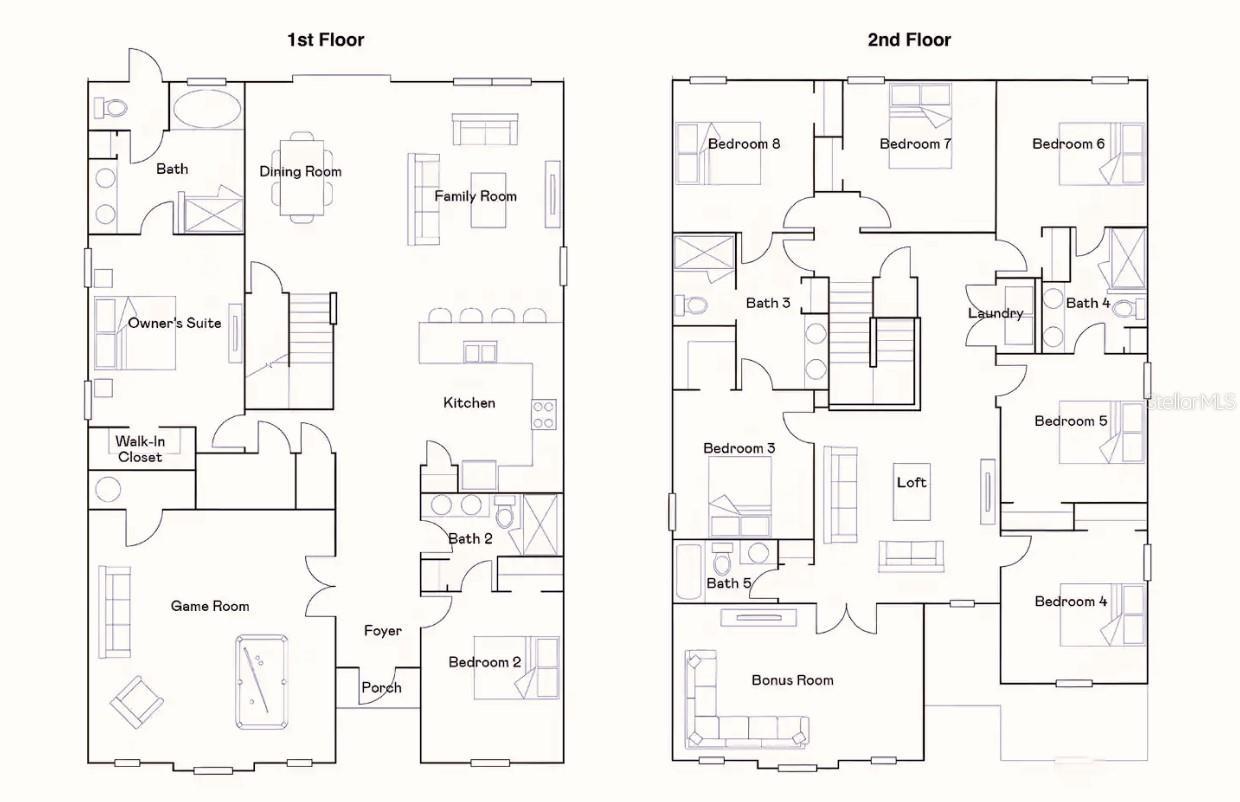 All offers are been considered! Spectacular 8-Bedroom Themed Retreat – Minutes from Disney & Universal! Discover the ultimate vacation and investment opportunity in The Cove at Storey Lake! This stunning 8-bedroom luxury villa is designed for unforgettable getaways, featuring immersive themed rooms inspired by Disney, Universal, Harry Potter, Mario Brothers, and more! Wake up to breathtaking lake and conservation views, all while enjoying the benefits of an eco-friendly solar system that keeps energy costs low year-round. The sprawling open layout comfortably accommodates up to 18 guests, making it perfect for large families and groups. ** Luxury Features Include: ** High-end modern furnishings throughout ** Private heated pool & spa overlooking the lake ** Spacious back patio – perfect for morning coffee with a view ** Fully equipped gourmet kitchen with premium appliances ** Exciting game room & home theater for endless entertainment ** Top-of-the-line whole-house solar panels with 30-year power warranty ** Turnkey investment opportunity – Popular Superhost status & starter inventory included Located just minutes from Disney, Universal, top-tier shopping, and dining, this home offers both an unparalleled vacation experience and a high-income rental opportunity. ** Resort-Style Amenities Include: ** Clubhouse with lazy river & water slides ** State-of-the-art fitness center ** Mini-golf & kayak rentals ** Resort pools & so much more! Don’t miss out on this rare opportunity to own a piece of Orlando’s premier vacation real estate! Schedule your private tour today and step into luxury living at its finest!