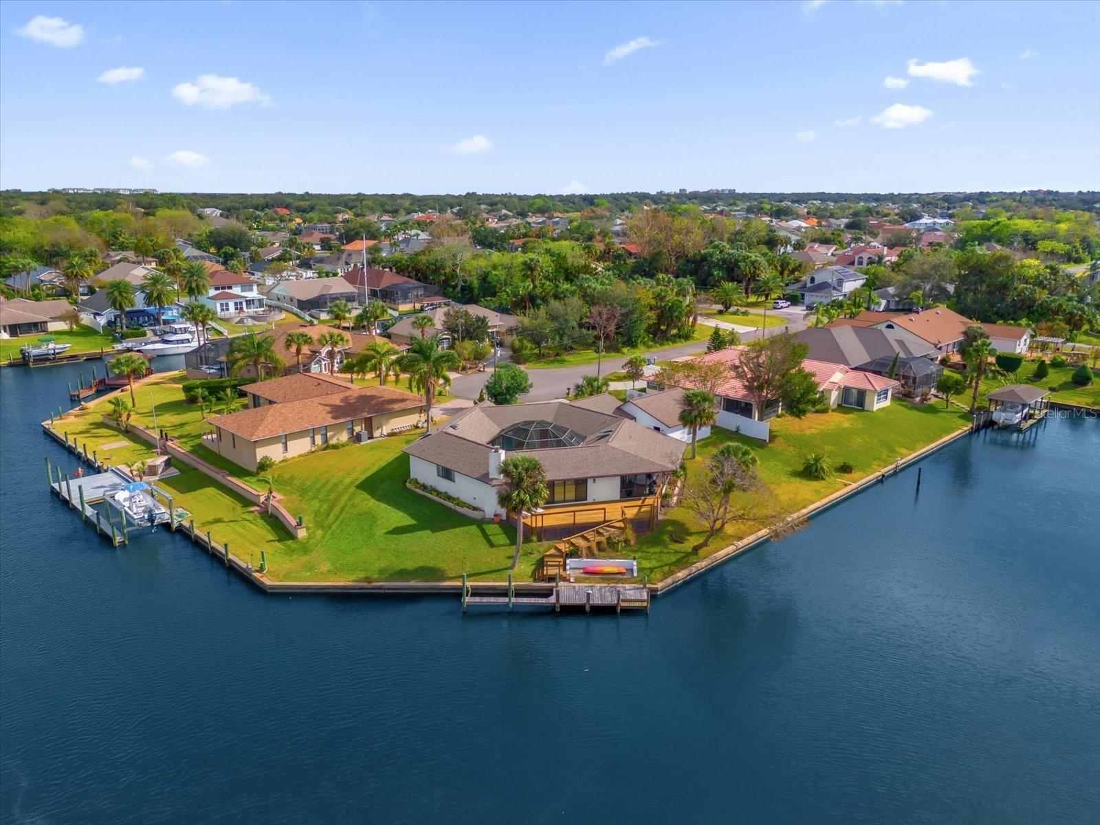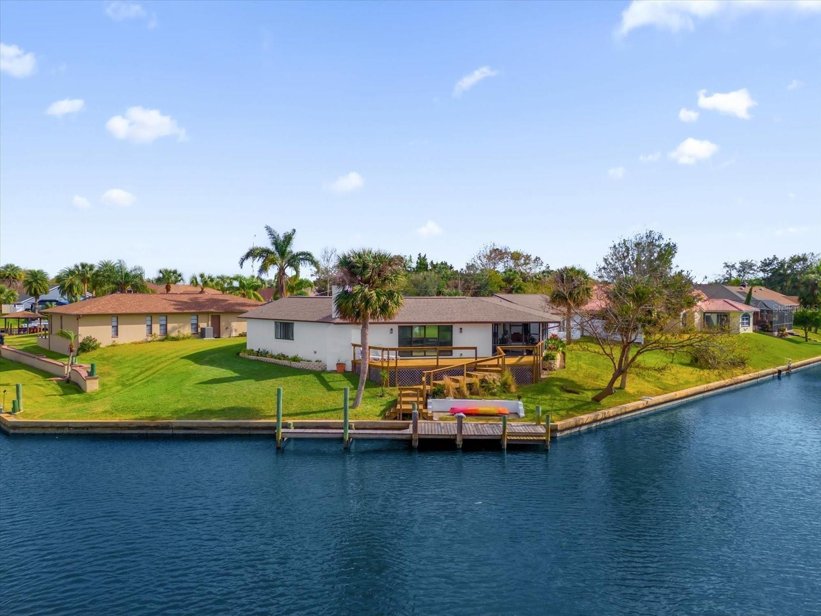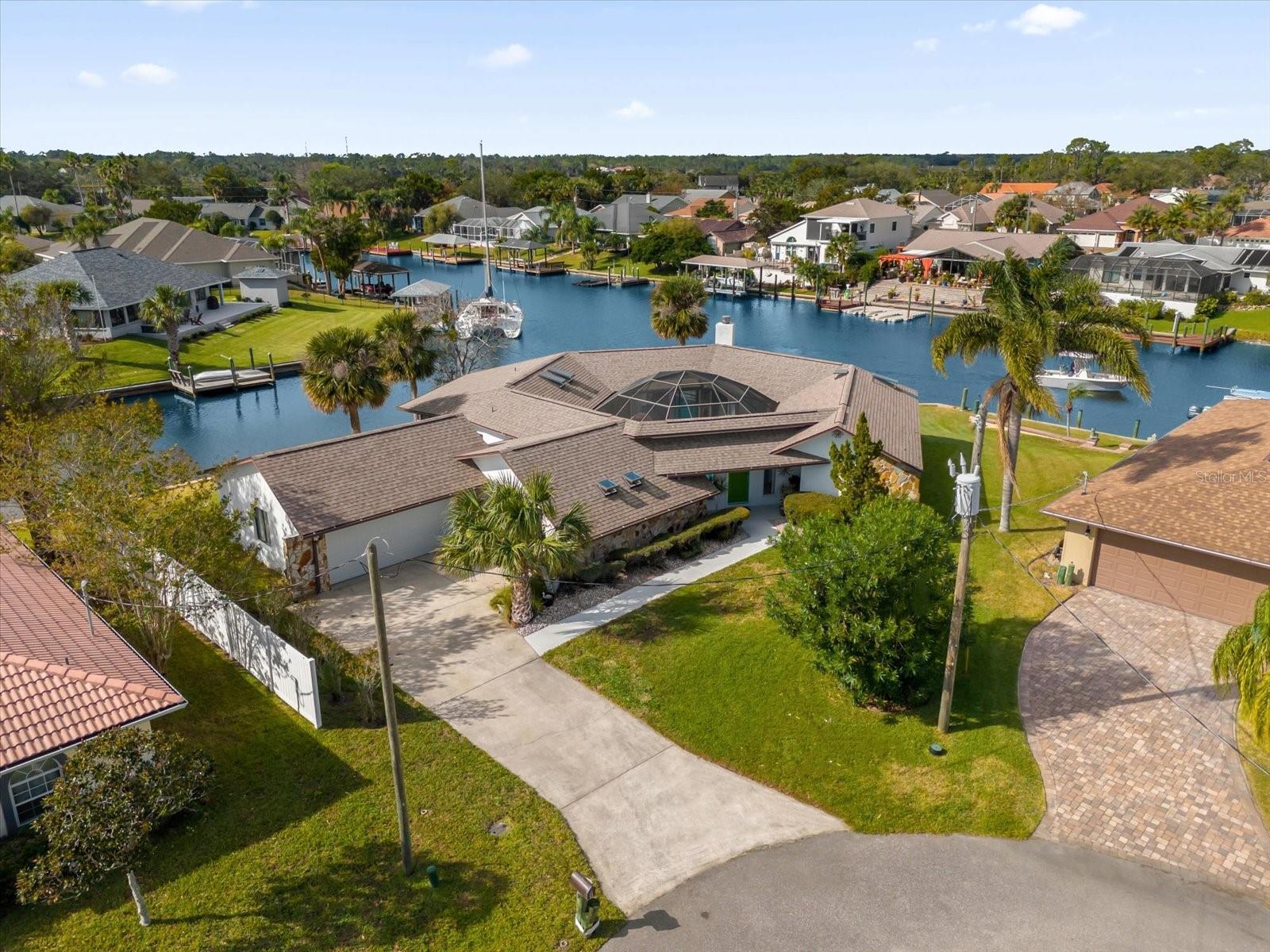 No other home like it! Now is your opportunity to pick this home up for a even more reduced price with a newer ROOF and skylights (2020), Water Heater 2022 and a newer 2022 A/C. Welcome to an ONE-OF-A-KIND custom-built pool home located in the prestigious SECTION C in the Palm Coast area sitting on a saltwater canal, boasting an impressive 181 feet of WATERFRONT FRONTAGE on a PRIME TIP LOT and on a CUL-DE-SAC. This unique turn-key residence features a distinctive hexagonal shape, ensuring maximum privacy for your pool and courtyard area. The outdoor space is a true haven, with a private pool and a beautiful courtyard, ideal for both relaxation and entertaining. Inside, the home is thoughtfully designed with modern finishes and an open floor plan that takes full advantage of the stunning waterfront views. The home offers 2,226 square feet of heated living space, including 3 spacious bedrooms and 3 elegant bathrooms and a new roof. Step inside to discover new renovations, featuring elegant granite countertops that provide both style and functionality and stainless steel appliances—perfect for hosting gatherings with friends and family as well as recently renovated bathrooms for a modern and clean look. The kitchen is bathed in natural light, thanks to 6 newer vented skylights throughout the home this creates a bright and welcoming atmosphere. This culinary space seamlessly blends with the open floor plan, offering stunning views of the pool area. Imagine preparing meals while enjoying the serene backdrop of your private courtyard and shimmering pool. Whether you’re entertaining guests or enjoying a quiet evening at home, this kitchen is designed to be the heart of the home, combining luxury, convenience, and beauty. The layout is designed to embrace the serene waterfront lifestyle, with panoramic, picturesque views from the recently built back deck. The backyard also features a 40 foot dock. The rare length of the private dock allows for small fishing boats or even a large sized sailboat - perfectly fitting in SAILBOAT COUNTRY. Just minutes away by boat, you’ll find the famous Intracoastal Waterway, Matanzas River, and the vast Atlantic Ocean. Living in Palm Coast offers a blend of historical charm, natural beauty, and modern conveniences. The area is rich in history and provides easy access to local shops and diverse dining options. Its location is ideal, situated conveniently close to both Daytona Beach and St. Augustine, allowing residents to enjoy the attractions and amenities of these vibrant cities. One of the highlights of Palm Coast is Bing's Landing, a long-established public park featuring a public boat launch and numerous trails, perfect for outdoor enthusiasts. Additionally, Palm Coast boasts over 100 miles of bike paths, including the scenic A1A scenic loop, offering stunning coastal views. For those who enjoy exploring quaint small businesses and cozy cafés, the European Village is a must-visit destination. It provides a charming atmosphere with a variety of unique shops and dining spots. Just a short drive away is the Hammock Beach Resort, an excellent choice for a Florida staycation. This resort is home to a world-renowned oceanfront golf course, adding a touch of luxury and recreation to the Palm Coast lifestyle making it a perfect primary residence, second home, or even a lucrative AirBnB income producing property! Call us today for your very own private showing before it's gone!