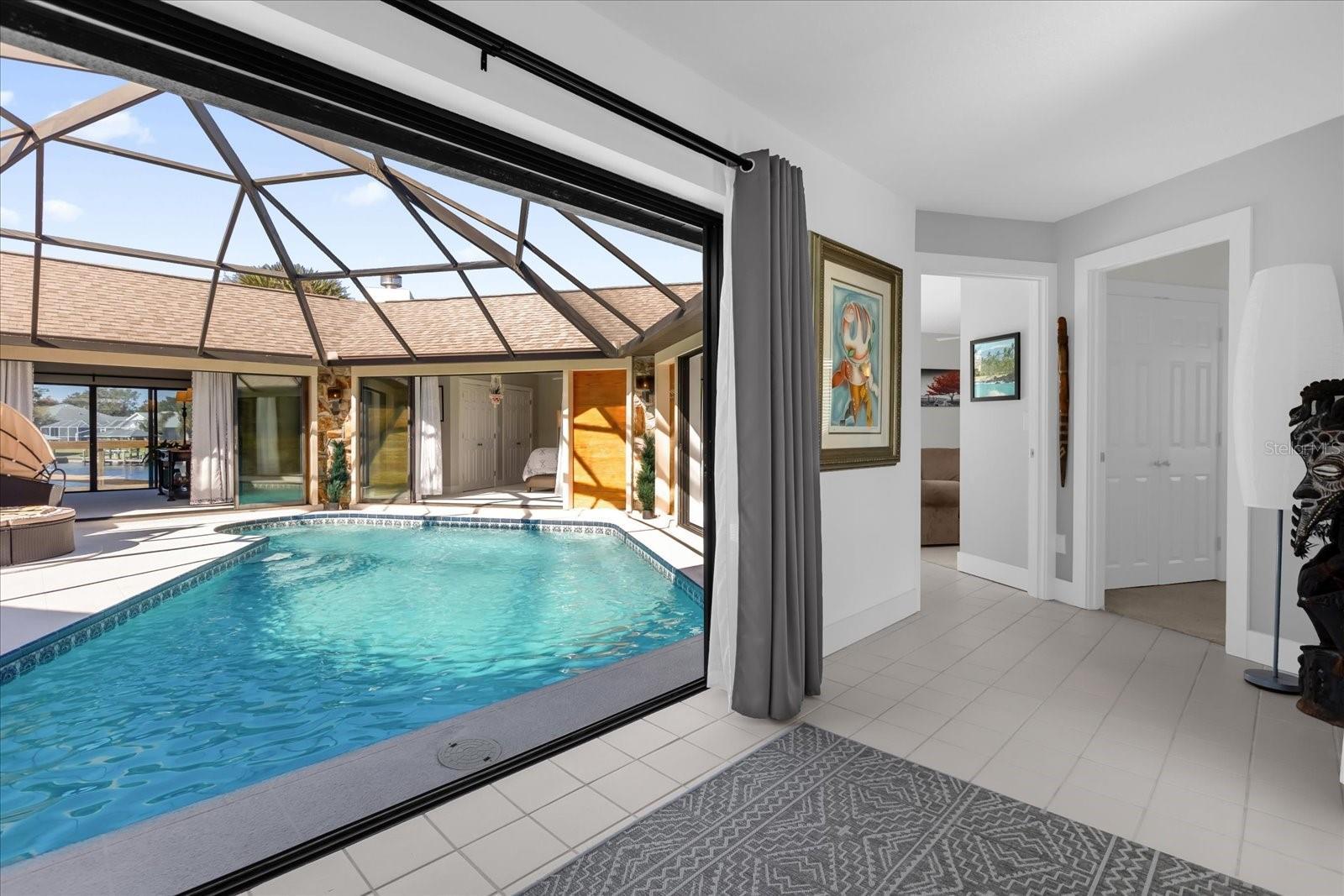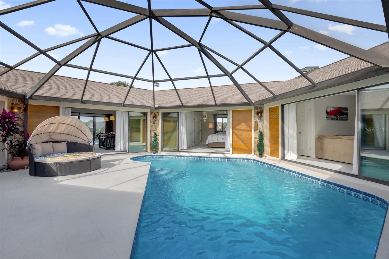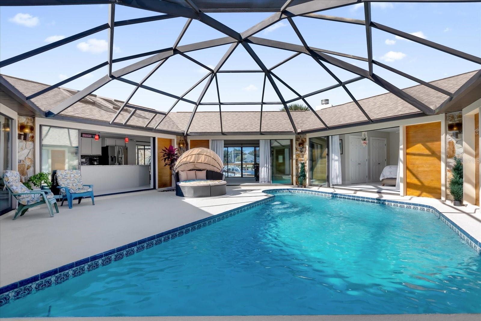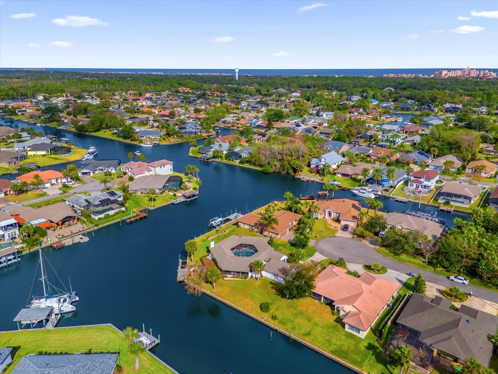 No other home like it! Now is your opportunity to pick this home up for a even more reduced price with a newer ROOF and skylights (2020), Water Heater 2022 and a newer 2022 A/C. Welcome to an ONE-OF-A-KIND custom-built pool home located in the prestigious SECTION C in the Palm Coast area sitting on a saltwater canal, boasting an impressive 181 feet of WATERFRONT FRONTAGE on a PRIME TIP LOT and on a CUL-DE-SAC. This unique turn-key residence features a distinctive hexagonal shape, ensuring maximum privacy for your pool and courtyard area. The outdoor space is a true haven, with a private pool and a beautiful courtyard, ideal for both relaxation and entertaining. Inside, the home is thoughtfully designed with modern finishes and an open floor plan that takes full advantage of the stunning waterfront views. The home offers 2,226 square feet of heated living space, including 3 spacious bedrooms and 3 elegant bathrooms and a new roof. Step inside to discover new renovations, featuring elegant granite countertops that provide both style and functionality and stainless steel appliances—perfect for hosting gatherings with friends and family as well as recently renovated bathrooms for a modern and clean look. The kitchen is bathed in natural light, thanks to 6 newer vented skylights throughout the home this creates a bright and welcoming atmosphere. This culinary space seamlessly blends with the open floor plan, offering stunning views of the pool area. Imagine preparing meals while enjoying the serene backdrop of your private courtyard and shimmering pool. Whether you’re entertaining guests or enjoying a quiet evening at home, this kitchen is designed to be the heart of the home, combining luxury, convenience, and beauty. The layout is designed to embrace the serene waterfront lifestyle, with panoramic, picturesque views from the recently built back deck. The backyard also features a 40 foot dock. The rare length of the private dock allows for small fishing boats or even a large sized sailboat - perfectly fitting in SAILBOAT COUNTRY. Just minutes away by boat, you’ll find the famous Intracoastal Waterway, Matanzas River, and the vast Atlantic Ocean. Living in Palm Coast offers a blend of historical charm, natural beauty, and modern conveniences. The area is rich in history and provides easy access to local shops and diverse dining options. Its location is ideal, situated conveniently close to both Daytona Beach and St. Augustine, allowing residents to enjoy the attractions and amenities of these vibrant cities. One of the highlights of Palm Coast is Bing's Landing, a long-established public park featuring a public boat launch and numerous trails, perfect for outdoor enthusiasts. Additionally, Palm Coast boasts over 100 miles of bike paths, including the scenic A1A scenic loop, offering stunning coastal views. For those who enjoy exploring quaint small businesses and cozy cafés, the European Village is a must-visit destination. It provides a charming atmosphere with a variety of unique shops and dining spots. Just a short drive away is the Hammock Beach Resort, an excellent choice for a Florida staycation. This resort is home to a world-renowned oceanfront golf course, adding a touch of luxury and recreation to the Palm Coast lifestyle making it a perfect primary residence, second home, or even a lucrative AirBnB income producing property! Call us today for your very own private showing before it's gone!