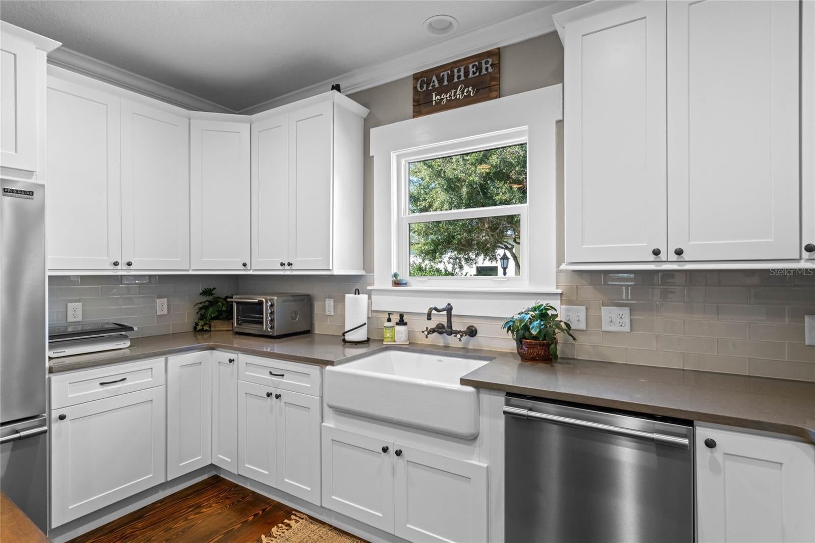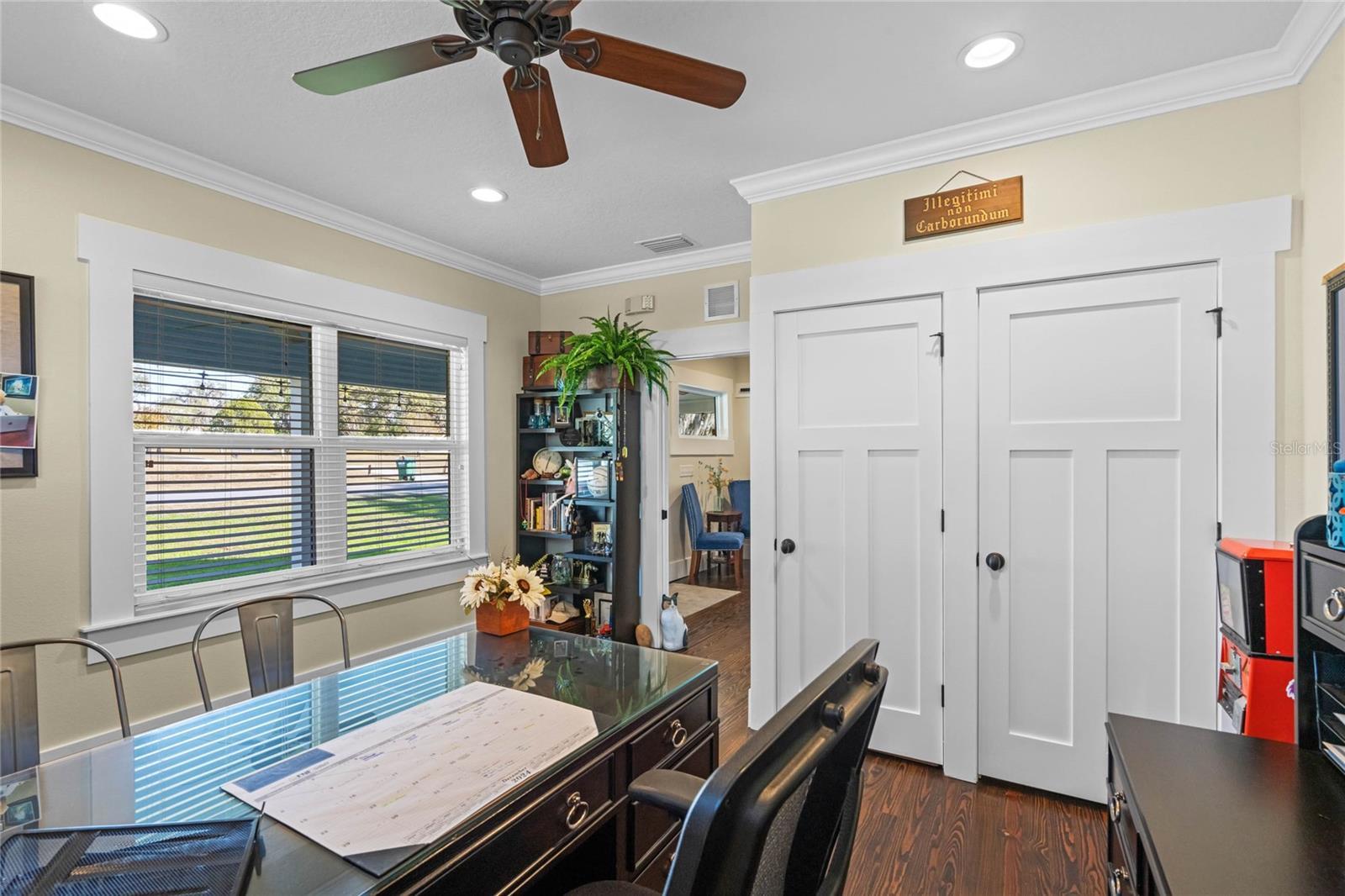 MONTVERDE hacienda offers ONE lakefront home, ONE commercial office & ONE lakefront buildable lot on LAKE FLORENCE! All parcel combined total 9.07 acres however only 1.33 acres are dry. The Lake house sits on .52 of an acre, the additional buildable lakefront lot is .29 of an acre and the commercial office sits on .52 of an acre with the remaining of the property in the lake. FIRST is the three bedroom~two bath LAKEFRONT HOME with 2337 heated SF & offers AMAZING VIEWS with LARGE picturesque windows to show off the lake and offer a panoramic high elevation view. The custom kitchen has solid wood cabinets (with plenty of storage with roll out shelves), quartz counter tops and stainless steel built in commercial KITCHEN AIDE appliances, including a separate drawer refrigerator AND an ice maker, for lake living! The living room is oversized with beamed cathedral ceilings and once again amazing views of the lake. Enjoy the wood burning stacked tile fireplace on those few Florida cold nights. The master bedroom measures a nice size, once again offers great lake views along with a nice sized walk in closet with custom adjustable shelving. The master bath has a walk in oversized shower with multiple shower heads, dual sinks & plenty of storage. The two remaining bedrooms are good size as well and one bedroom even has a barn door to offer a little privacy of that bedroom and the guest bath. The laundry room is OVERSIZED and could easily double as a craft room. Wood looking plank tile, crown molding and 5 1/4" base throughout. EXTENDED two car garage plus a garage door off the back to offer a great lake cross breeze ventilation while tinkering in the garage. Plenty of additional storage under the living room with exterior access. Enjoy the brick fire pit and lake views under the LARGE OAK TREES after a long day. The property is complete with a covered boat dock including hoist with power and water. METAL roof and AC was installed in 2018. NEXT is the buildable LAKEFRONT lot that measures .29 of an acre and you can't but notice the granddaddy OAK TREES. This parcel does offer a private boat ramp and you can BRING ANY BUILDER & NO TIME LIMIT to build. This parcel has a barn that measure approximately 1104 square feet and has two oversized stalls, two storage rooms additional covered space. LASTLY is the commercial office space which is zoned ORC, Office Residential Commercial. The property can be used as commercial OR residential! The building is 1892 SF heated & is currently being used as as office space however there are many options on the permitted use list. It currently has a reception area, three large office rooms, conference room, full size kitchen (complete with kitchen appliances) & an upstairs BONUS room currently being subleased. The bonus room has a kitchenette area, complete with a kitchen sink and drawer fridge. The bonus room space has a separate exterior entrance as well as an interior entrance and can be locked off. This building has two full bathrooms and one half bath. The building can also be used as a residence and would be a three bedroom ~ two full bath and one half bath and is pre plumbed/wired for a shower and stackable laundry in the handicap bathroom. Office completely remodeled in 2015. PLENTY of parking as well as an additional three bay carport. Entire property is fully irrigated by a 5 horse power pump from the lake plus multiple lamp post throughout to offer a nice evening ambiance. A MUST SEE!