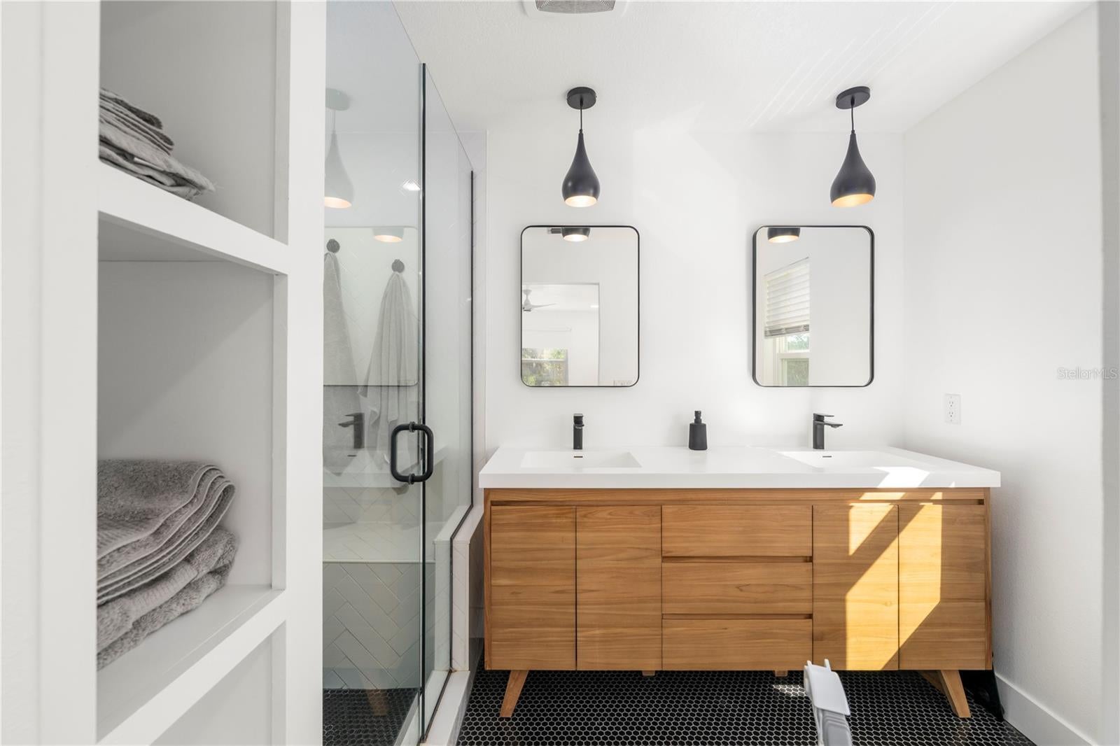 - Built-in Features, Ceiling Fans(s), Eat-in Kitchen, Open Floorplan, Primary Bedroom Main Floor, Solid Wood Cabinets, Stone Counters, Thermostat, Walk-In Closet(s), Window Treatments