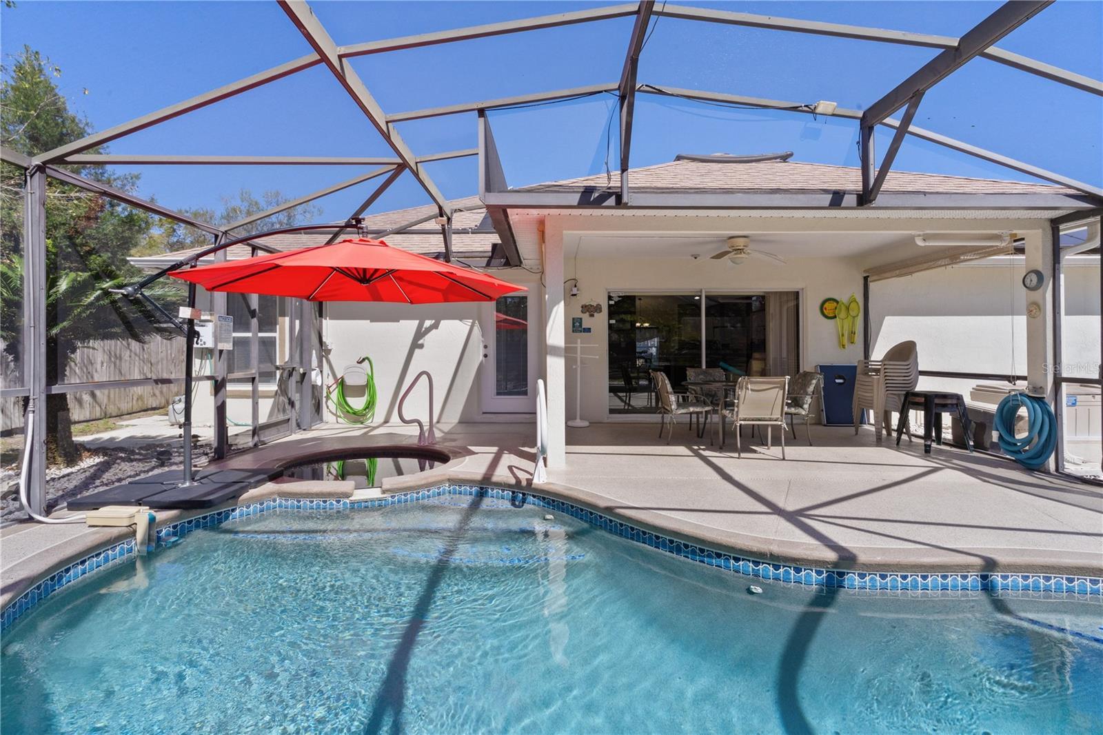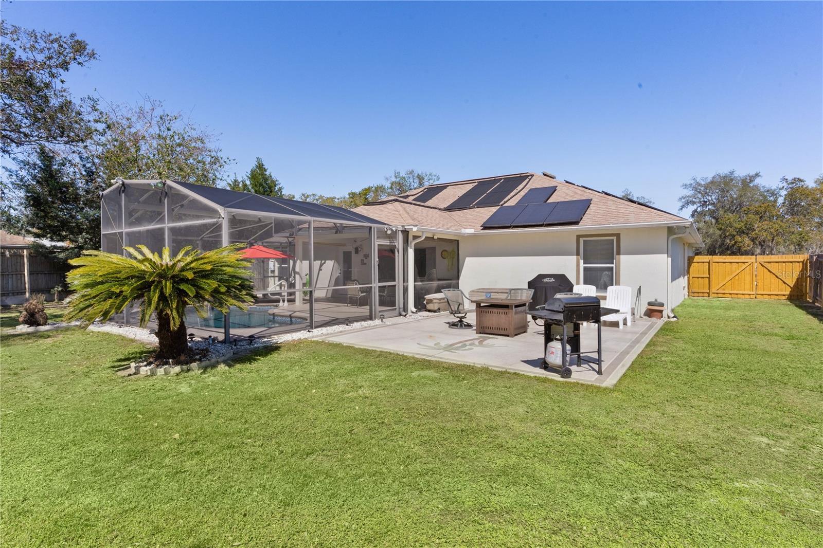 Under contract-accepting backup offers. SELLER IS MOVING AND NEEDS IT SOLD!!! SELLER ADJUSTED PRICE FOR YOU!! MAKE THIS ONE HOME! Stunning Lakefront 3-Bed, 2-Bath Home with Saltwater Pool, Solar Power & Incredible Views! Welcome to your own private oasis on the shores of beautiful Lake Sue with boat landing! This meticulously maintained 3-bedroom, 2-bathroom home offers the perfect combination of comfort, efficiency, and true Florida living. From the moment you arrive, you'll fall in love with the fully fenced backyard, featuring a sparkling saltwater pool and relaxing jacuzzi. Both pool and jacuzzi can be heated by solar panels or propane heat from your 120-gallon underground propane tank—creating the ultimate spot to unwind while soaking in the breathtaking lake views. Whether you’re entertaining guests, spending your days on the water, or relaxing poolside at sunset, this property delivers the lifestyle you’ve been dreaming of. Energy efficiency is second to none, with solar panels powering the entire home and pool, helping you keep utility costs low while living sustainably. Major updates have already been completed for you, including a new roof (April 2018), 4-ton AC (March 2021) with ducts cleaned (December 2024), solar electric system (November 2022), and hybrid hot water heater (November 2021). The master suite offers a large vanity with double basins, a separate water closet, and a large walk-in shower, giving you the perfect private retreat. The pool was resurfaced in August 2020, and the drain field for the septic system was completely rebuilt in October 2021, providing peace of mind for years to come. Inside, you'll find newly tiled floors (August 2023), a bright and open layout filled with natural light, and a spacious kitchen perfect for preparing meals while enjoying water views. The home also features a new dishwasher (August 2023) and refrigerator (February 2020), adding even more value and convenience. Additional perks include a transferable termite protection plan for added security. Imagine starting your mornings with coffee by the lake, afternoons filled with boating and fishing, and evenings enjoying the peaceful ambiance of this incredible waterfront property. With its unbeatable location, energy-saving features, and luxury outdoor living spaces, this home truly has it all. Schedule your private showing today and make this lakefront paradise your forever home!