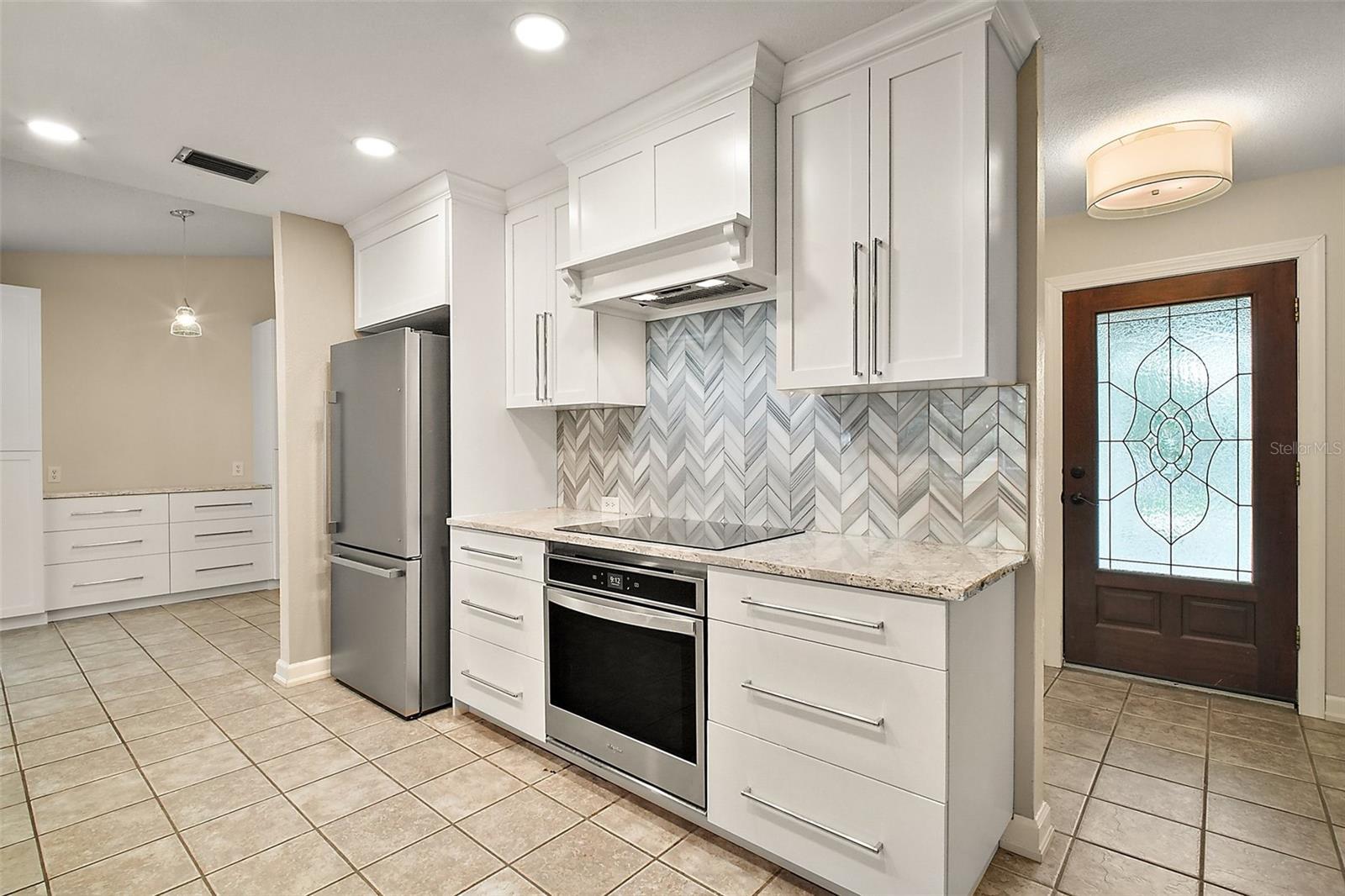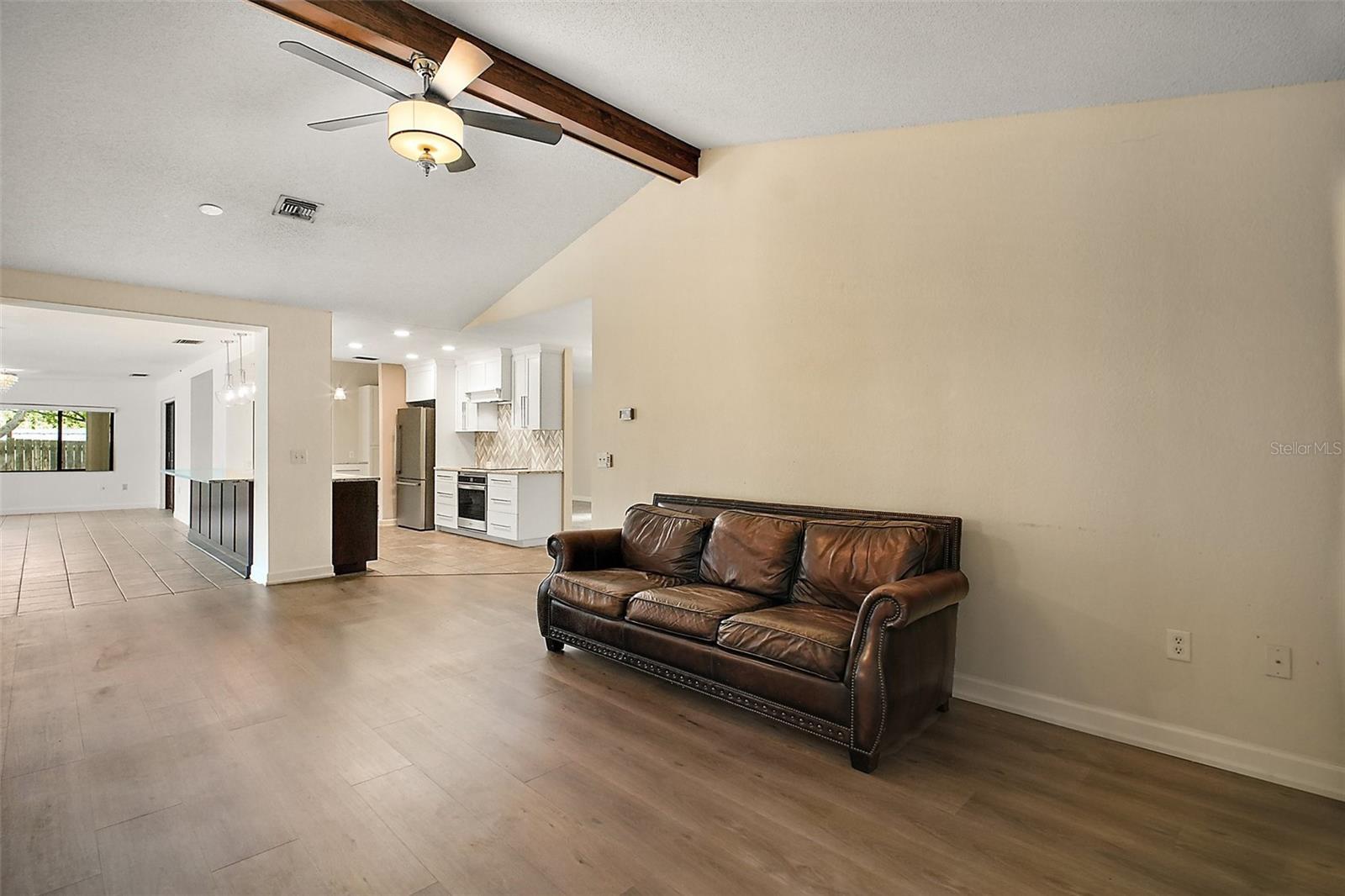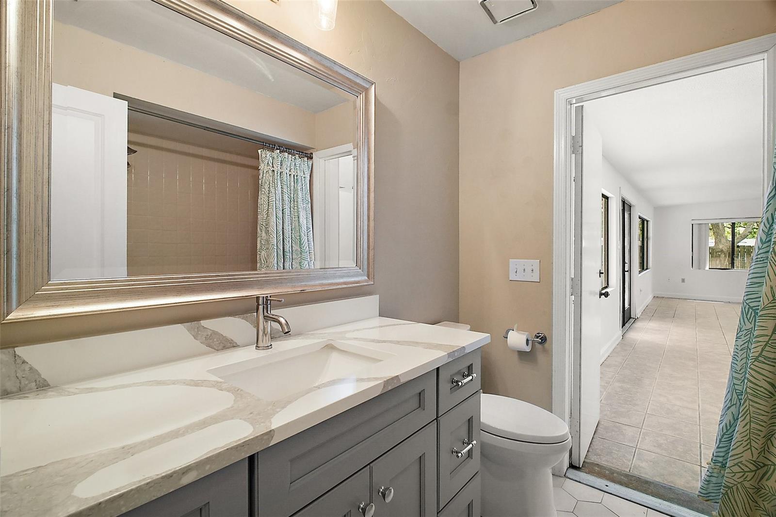 New Roof! The absolute heart of this home is the stunning kitchen that features Quartz countertops, stainless steel appliances, and an abundance of custom cabinet space. The kitchen seamlessly flows into multiple living areas and also overlooks the screen enclosed pool through a large window and lovely French doors perfect for indoor/outdoor entertaining and gathering. house was not homesteaded so taxes will go down once you buy and homestead.
