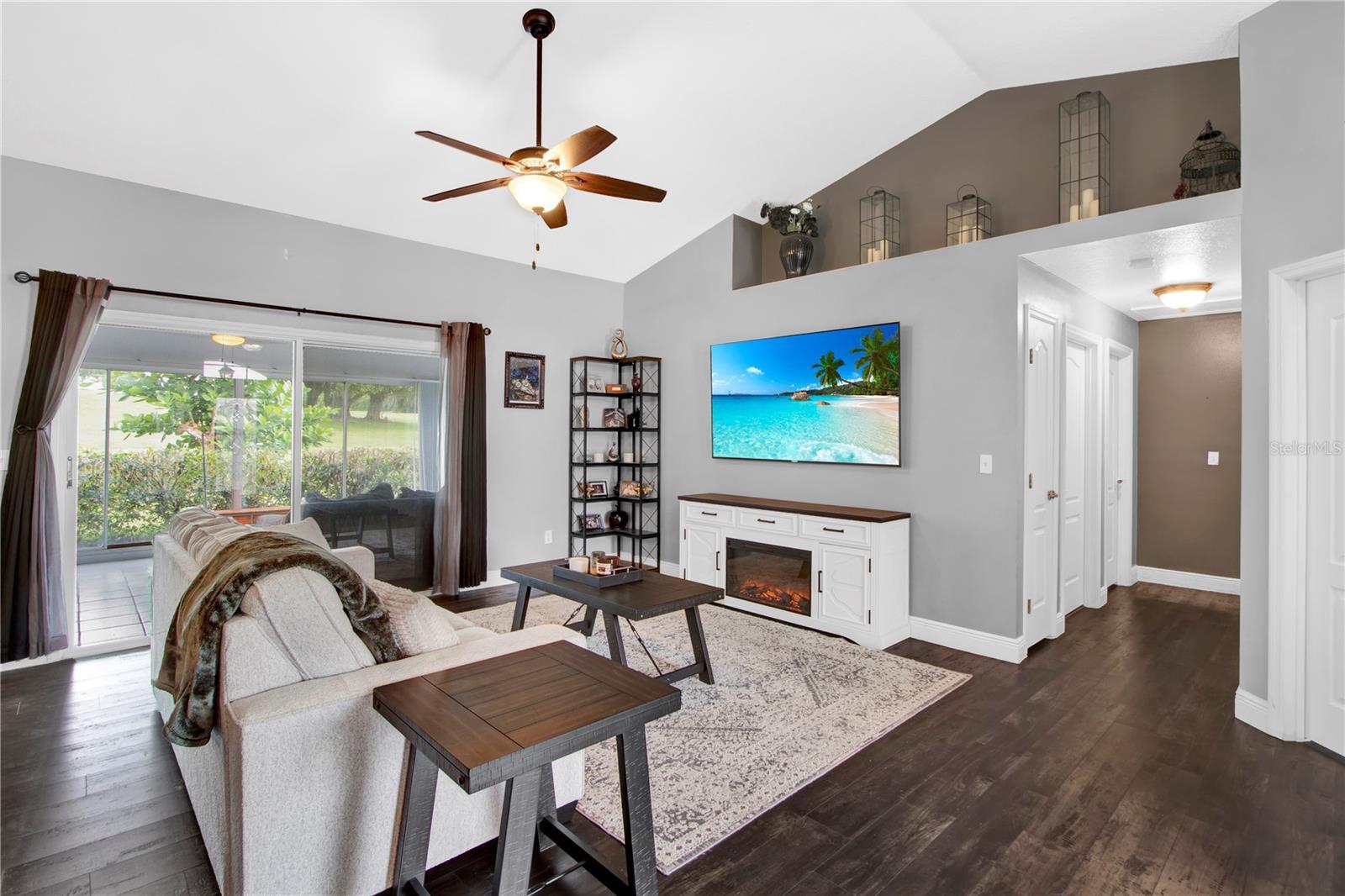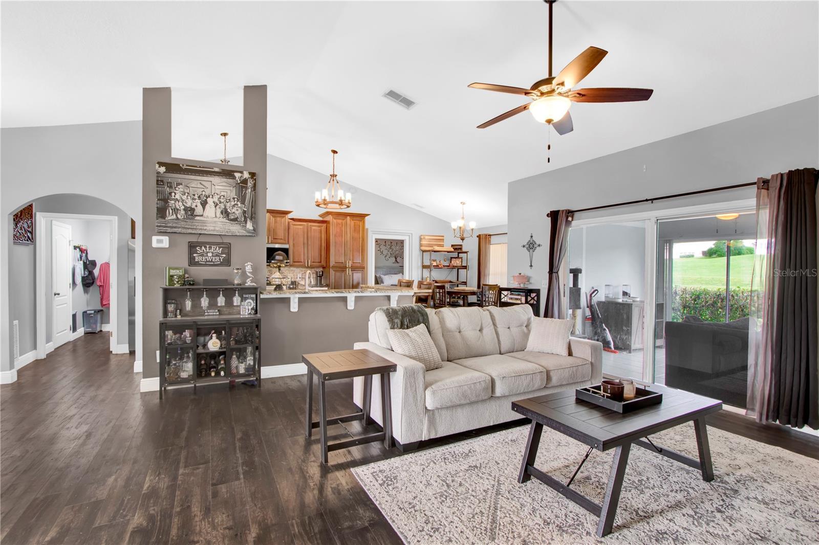 *** Remodeled Kitchen with brand-new upgraded Samsung stainless steel appliances *** Newly renovated master bathroom *** Priced to Sell! Golf Course Frontage Home on a Cul-de-Sac. Discover your slice of paradise at 8925 Pebble Beach, a beautifully updated 3-bedroom + office, 2-bath home with direct golf course frontage overlooking the 13th green of Green Valley Country Club. This home delivers panoramic fairway views, exceptional privacy, and a spacious.36-acre lot. Step inside through the custom stained-glass front door and instantly feel the warmth of the bright, open-concept floor plan. The remodeled kitchen is a true standout, offering solid wood cabinetry, granite countertops, soft-close drawers, and brand-new upgraded Samsung stainless steel appliances. Luxury vinyl plank flooring spans the main living areas, while the bathrooms feature upgraded ceramic tile for style and durability. The primary suite is a serene retreat with a renovated master bathroom, walk-in closet, dual-sink vanity, garden tub, and separate shower. Enjoy the tranquil views from the tiled family room or the enclosed Florida room, each providing sweeping, unobstructed views of the golf course. Outside, the lush landscaping is maintained by an irrigation well and full sprinkler system. Why This Home Stands Out • Direct golf course frontage on the 13th green • Private cul-de-sac location with no rear neighbors • 2110 sq ft of move-in-ready living + flexible office/den • Renovated master bathroom • Brand-new upgraded Samsung stainless steel kitchen appliances • Low HOA with optional Green Valley Country Club memberships • Energy-efficient features to help lower monthly utility costs • Close to SR-50, Florida’s Turnpike, Lake Minneola, schools, shopping & dining Located just 30 minutes from Disney and close to Universal, this is a rare opportunity to own a golf course home in one of Clermont’s most convenient areas. Schedule your private showing today!