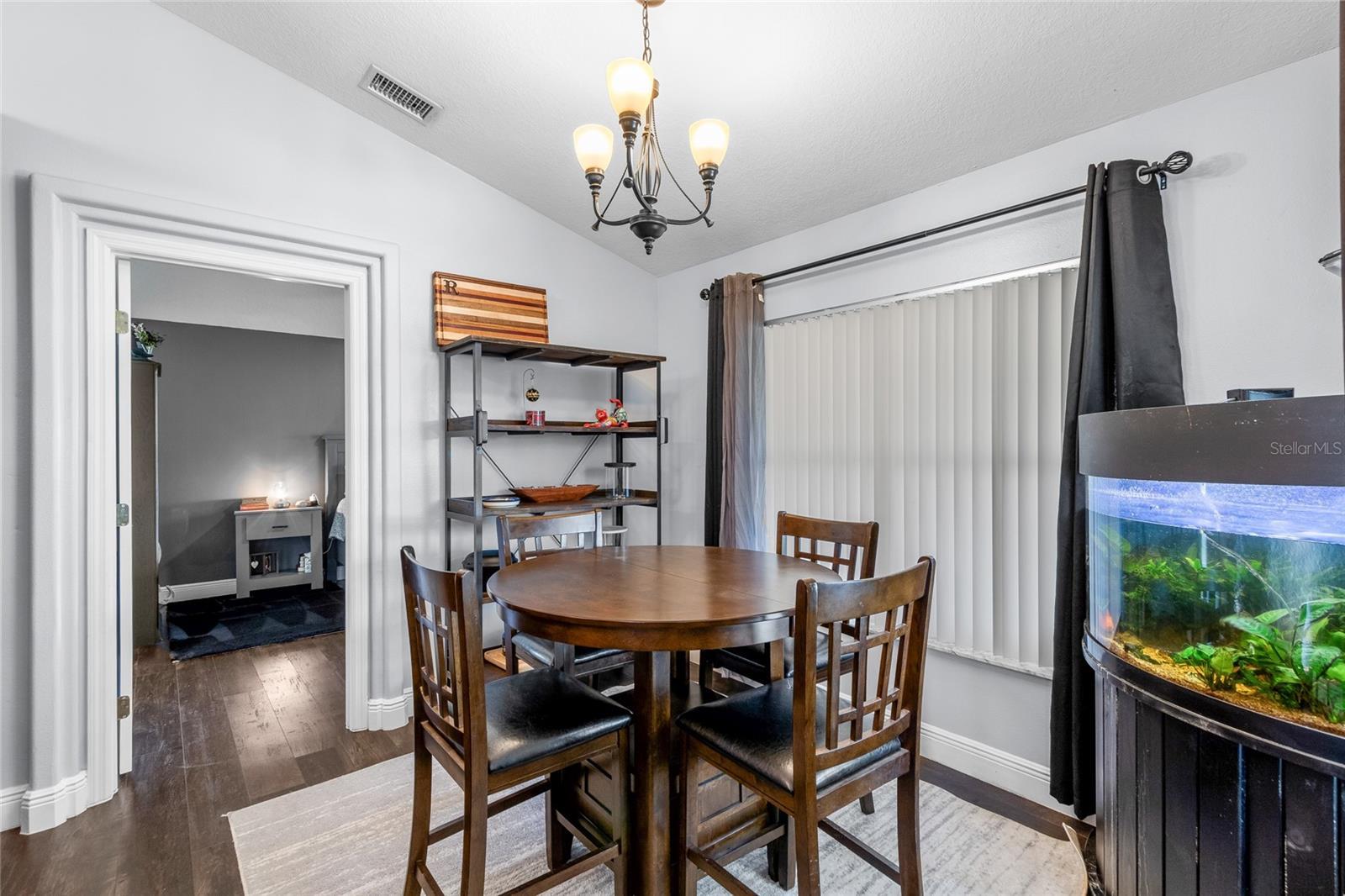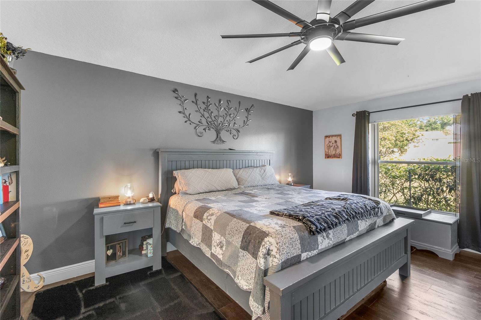 - Ceiling Fans(s), Eat-in Kitchen, High Ceilings, L Dining, Open Floorplan, Primary Bedroom Main Floor, Solid Wood Cabinets, Split Bedroom, Stone Counters, Thermostat, Vaulted Ceiling(s), Walk-In Closet(s)