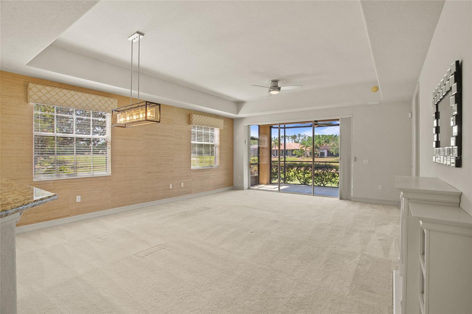 Experience true resort-style living in this beautifully appointed first-floor condominium overlooking the 17th tee of the Las Colinas Golf Course, nestled in the heart of the prestigious Mission Inn Resort & Club. Offering 2,031 square feet of thoughtfully designed living space, this residence features 9 rooms, 2 spacious bedrooms, 2 full bathrooms, den and a versatile bonus room ideal for a home office, library, fitness space, or creative retreat. Set within 1,100 acres of lush, manicured grounds, Mission Inn delivers an unparalleled lifestyle centered on luxury, leisure, and connection. Residents enjoy access to two championship 18-hole golf courses, a world-class spa, sparkling resort-style pool, and an impressive array of social and recreational activities including bridge, billiards, yoga, mahjong, and more. Four distinctive onsite dining venues elevate everyday living, highlighted by the beloved Sunday Champagne Brunch and the ever-popular Saturday Night Seafood Buffet. Surrounded by scenic lakes, the community is also a haven for outdoor enthusiasts who enjoy bass fishing, boating, and water sports. Inside, the home welcomes you with an open-concept layout, vaulted ceilings, and abundant natural light that frames serene golf course and pond views. The screened-in lanai with ceiling fan provides the perfect setting for year-round relaxation while enjoying the tranquil surroundings. The elegant owner’s suite features a charming bay window overlooking the greens, dual walk-in closets, and a luxurious garden tub. A split-bedroom floor plan ensures privacy for guests, while the large laundry room adds everyday convenience. Completing the home is an oversized two-car garage and a flexible bonus space that adapts effortlessly to your lifestyle needs. This is more than a residence—it’s an invitation to elevated living in one of Central Florida’s most treasured golf and resort communities. ***Social Membership is required, golfers have the option to become full golf members or simply pay green fees as you go.**