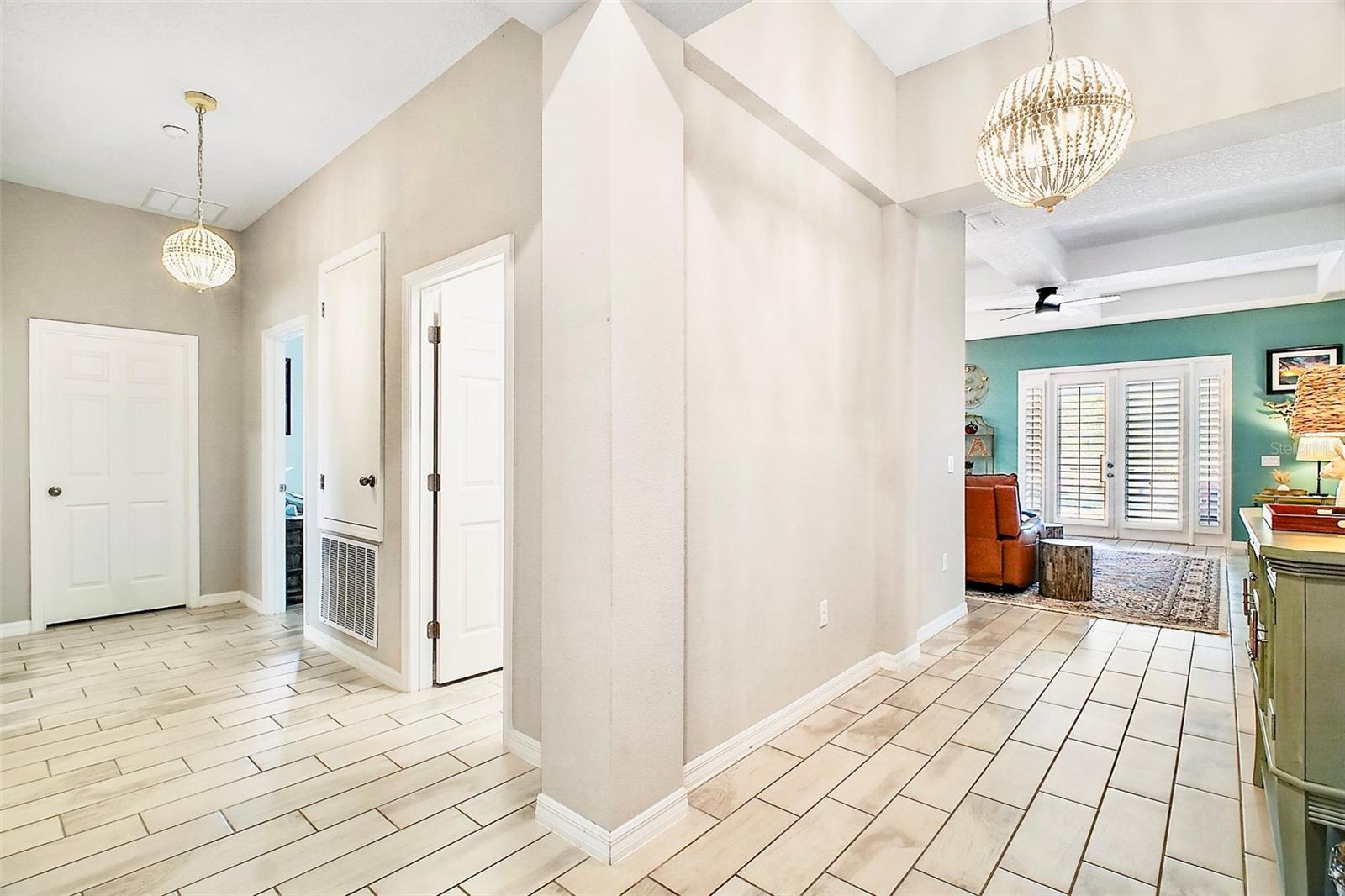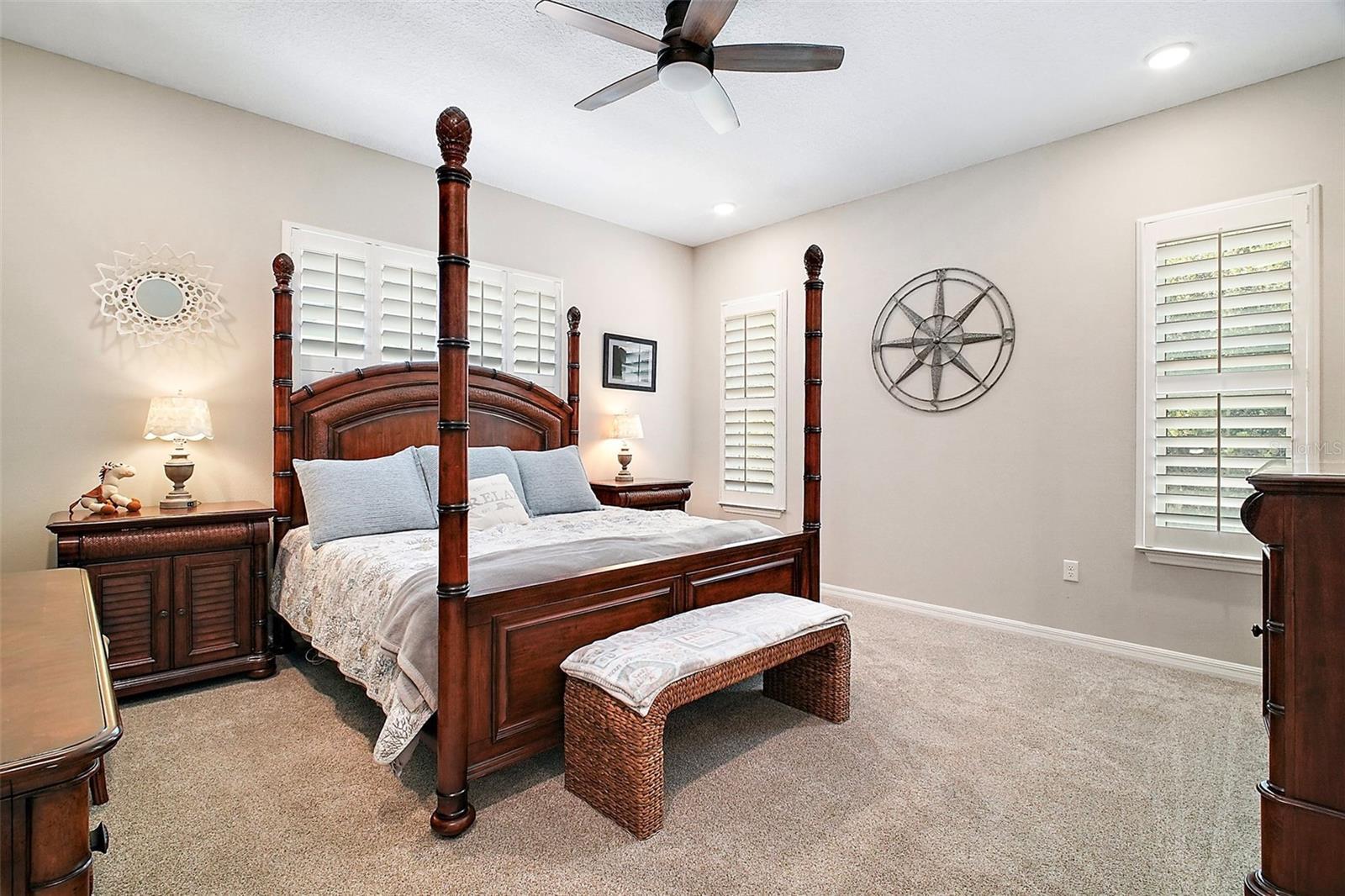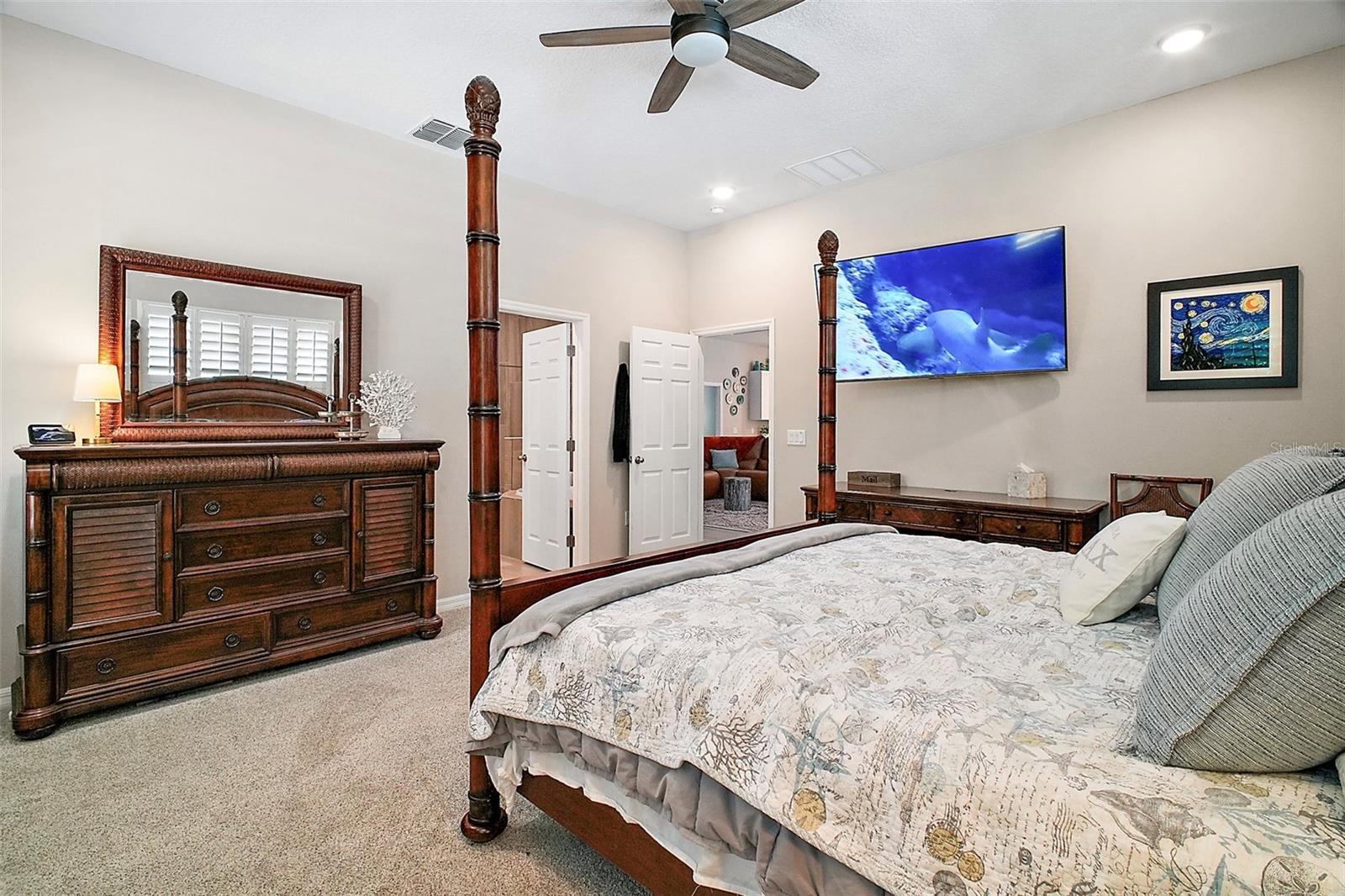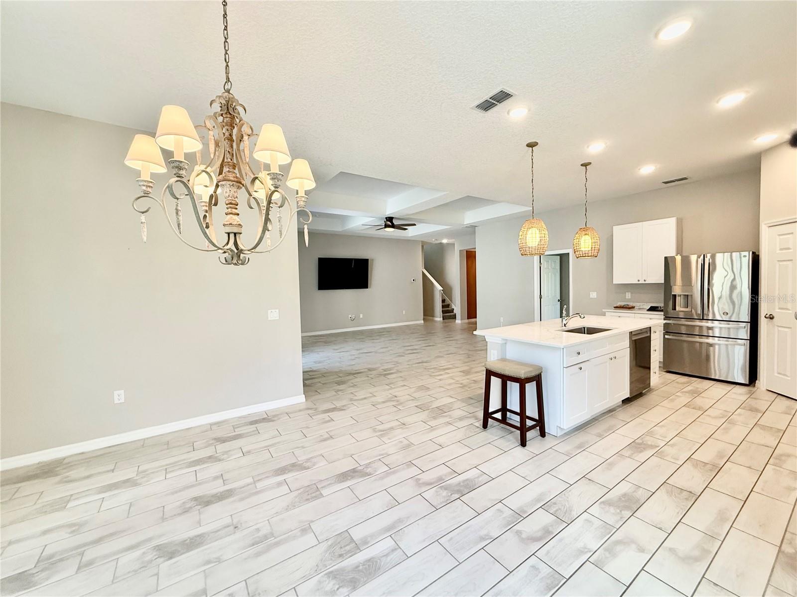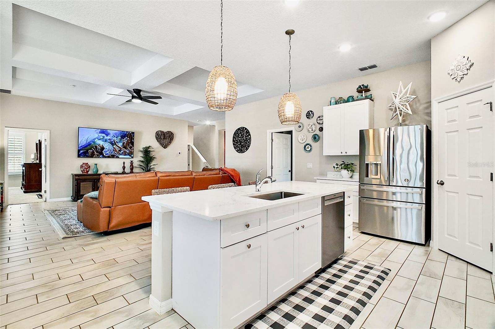 - Ceiling Fans(s), Coffered Ceiling(s), Kitchen/Family Room Combo, Living Room/Dining Room Combo, Open Floorplan, Primary Bedroom Main Floor, Solid Surface Counters, Split Bedroom, Thermostat, Tray Ceiling(s), Walk-In Closet(s)