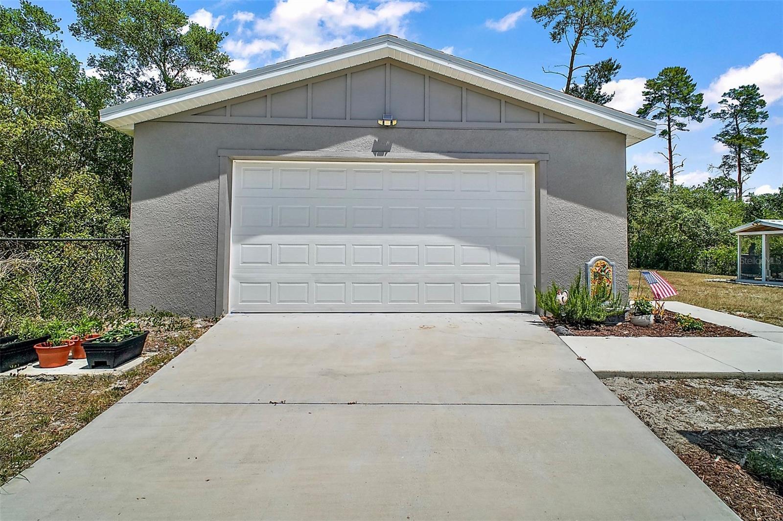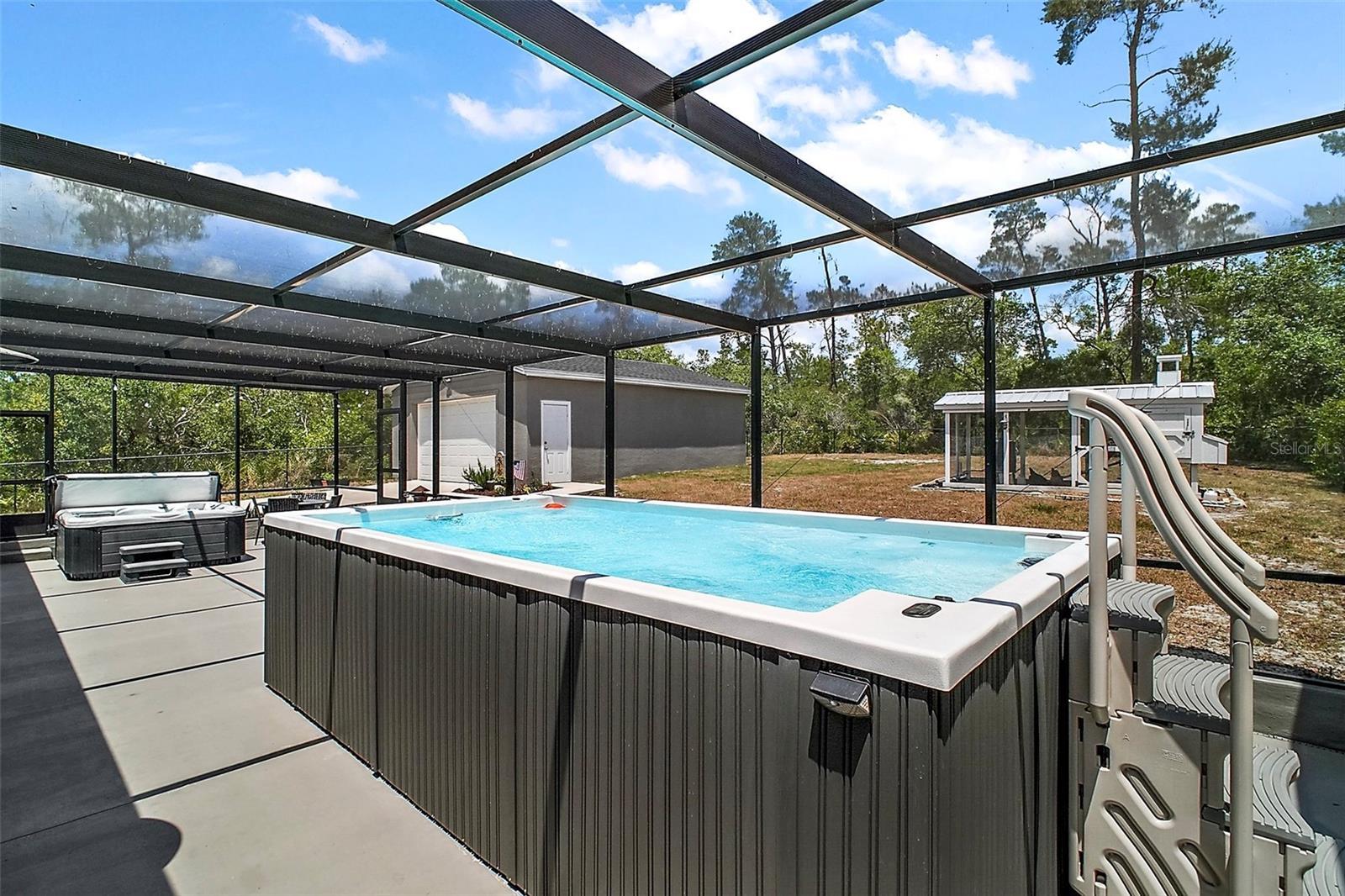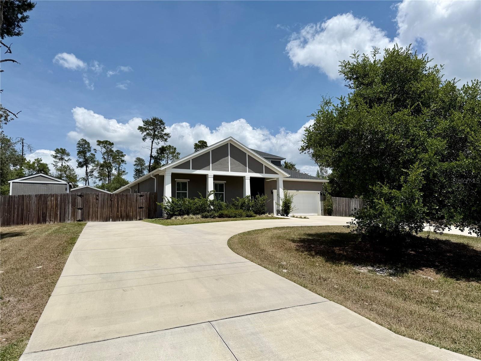 Move-In Ready with Premium Features-Stunning 5-bedroom, 3.5-bathroom residence offers spacious living on a beautifully 1-acre parcel. A circular driveway, 2-car garage PLUS a 25' x 25' detached garage—ideal for additional vehicles, storage, or workshop space. Inside, enjoy an open-concept layout with split bedrooms, Quartz countertops, stainless steel appliances, a walk-in pantry, and plantation shutters on every window. Relax in your private lap pool, Jacuzzi, and enjoy the screened lanai for entertaining. 75" TV—all included, Starlink satellite system for high-speed internet connectivity. HOA only $92/year, Boat & RV parking permitted, Deeded access to Lake Norris & Lake Marion, SURVEY and floor plan available. Seeking comfort, space, and convenience. Schedule your private tour today!