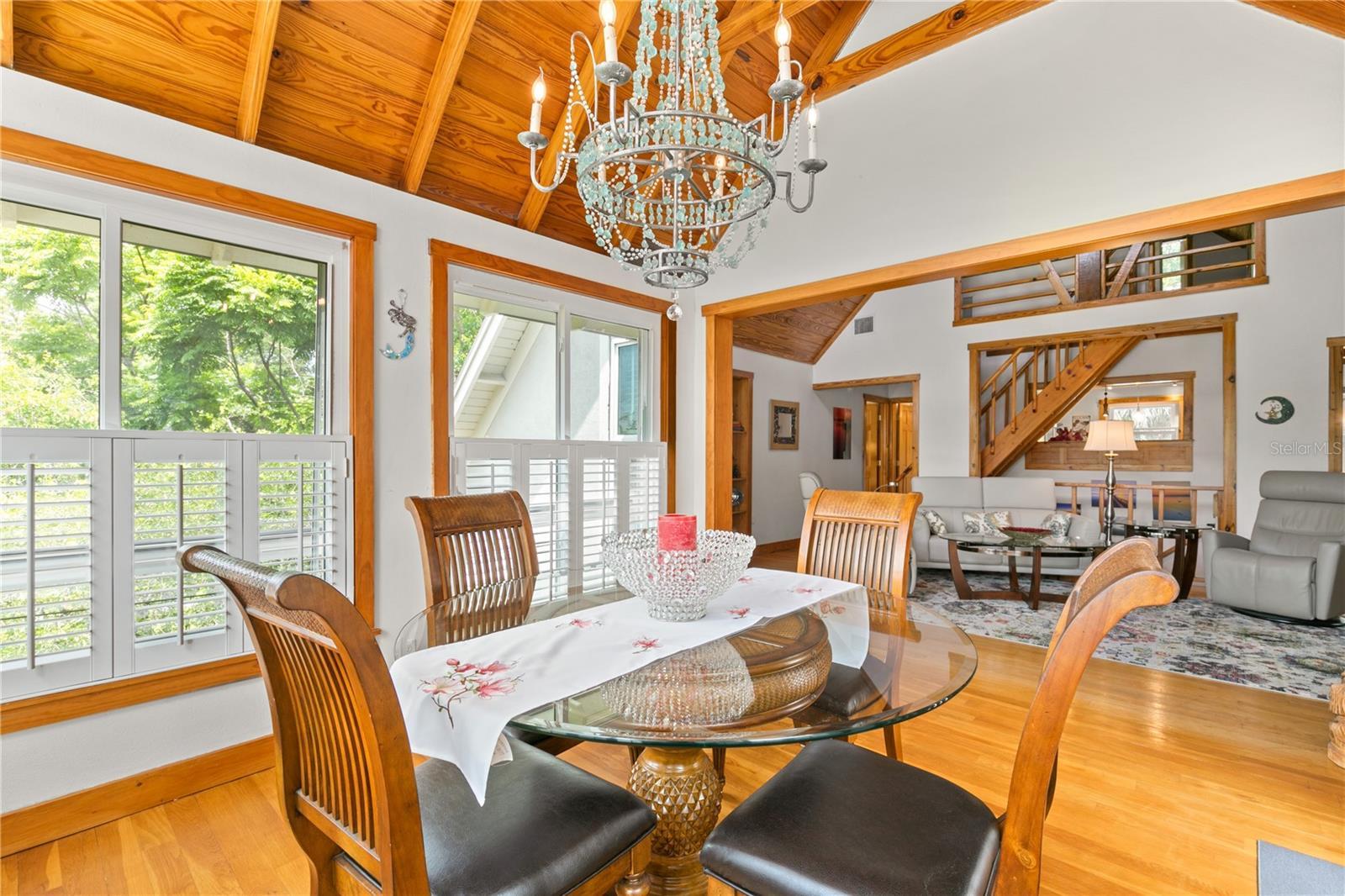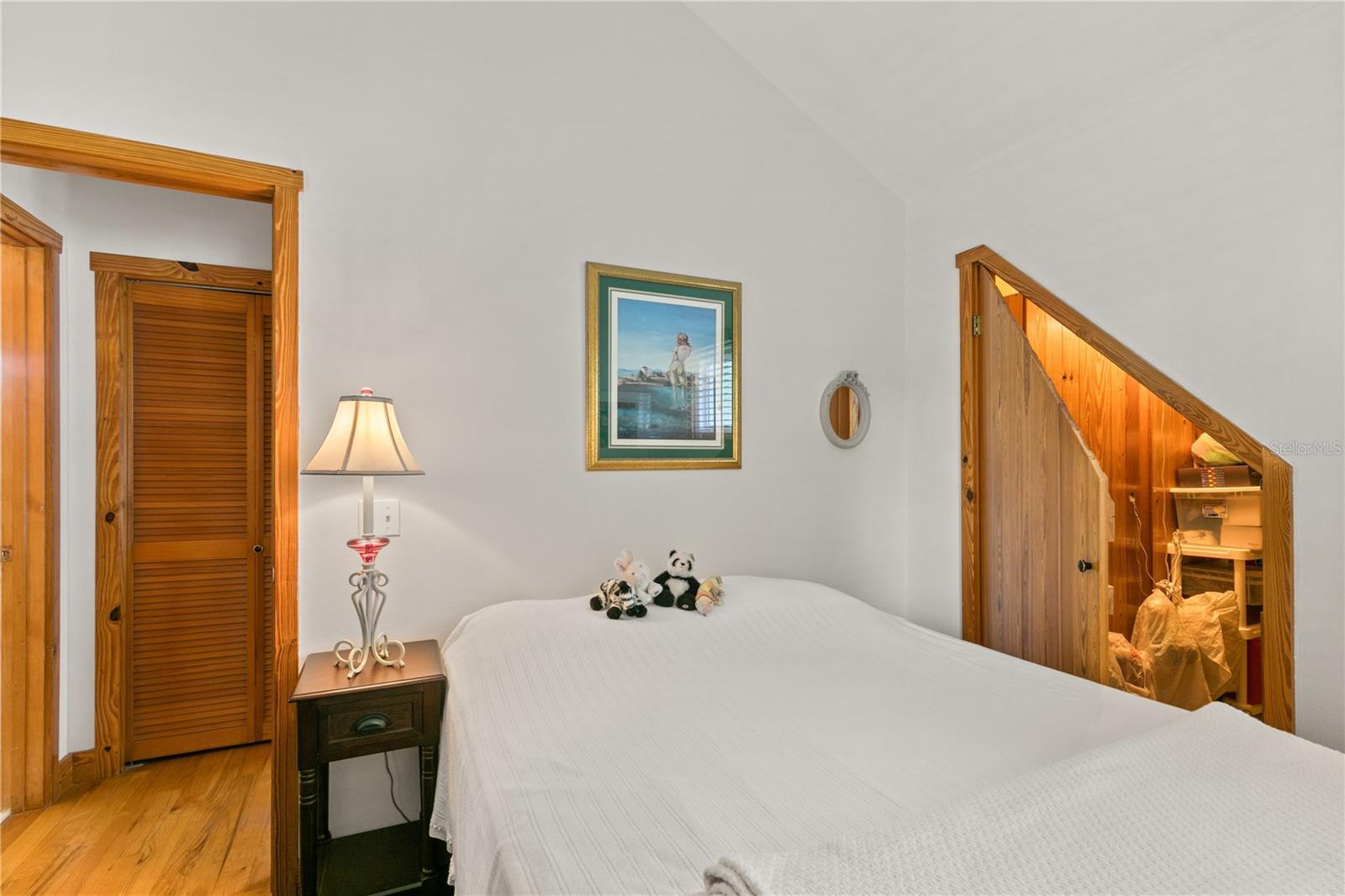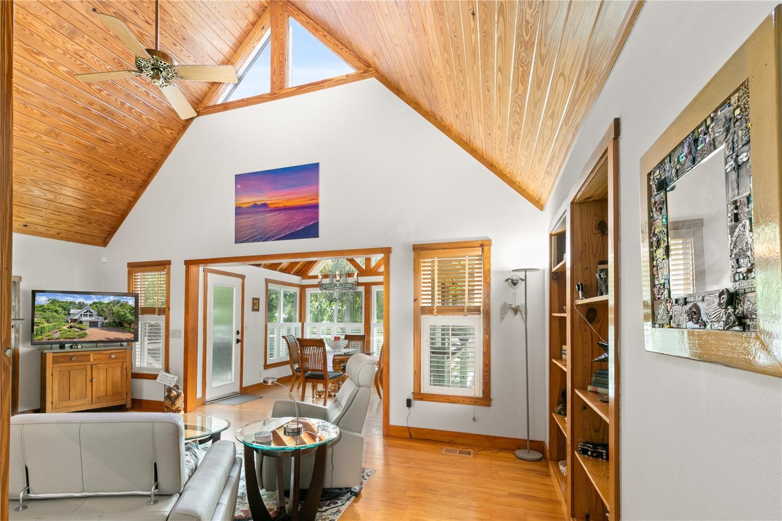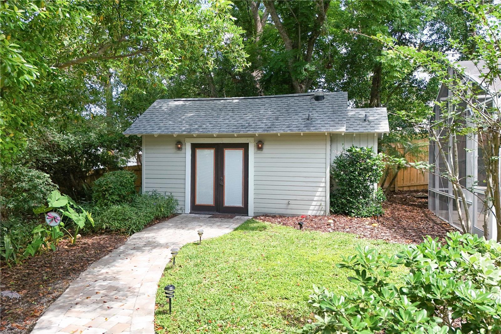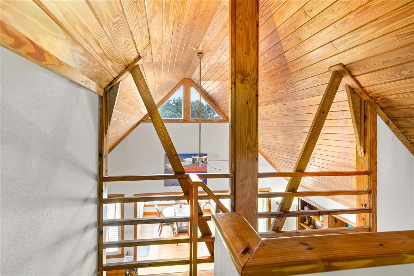 Under contract-accepting backup offers. Discover this treasure on the west side of Donnelly, near downtown Mount Dora. Lots of history and love went into creating this unique pool home, hidden in a very private setting. What started in 1948 as just a garage, the home evolved in the early 1990’s to be a unique custom-built primary home or a hide-a-way retreat second home or rental. What a find... and only a few blocks from downtown! The 2-story home with loft and a guest cottage has tree-top decking overlooking the gardens, with the pleasant sound of the fountain below. Your eye will be delighted by Custom-built cabinetry, shelving, wood floors, trim and ceilings & beams! Detailed craftsmanship & natural materials enhance the home's simple elegance. The unique floor plan offers a spacious primary suite with sky lights & special windows, plus a 3rd bedroom (or a den or office) and a laundry room on the ground level. From the bedroom, step out to the patio and gardens with a path to the pool and a short path winds to the 1/1 guest cottage - a welcoming retreat for family or friends. On the home's second floor, there is a well-planned eat-in kitchen and a cozy 2nd bedroom & bathroom. Living & Dining rooms with vaulted ceilings open to a spacious deck brushed by gentle breezes. High above the living room, a LOFT sparks the imagination - perhaps a studio for art, yoga or music! Throughout the home, natural light pours in through wide windows; picturesque views abound. Most recent updates were: Roofs were replaced in 2017, HVAC in 2019. Also in 2015 windows were replaced with energy-efficient double pane, a tankless hot water system was added, Central AC replaced, & new garage door. . Quartz countertops grace the laundry room and the kitchen. Kitchen features include: Subway tile back splash and stainless steel appliances along with a cozy nook for kitchen dining. The main dining room is surrounded by windows - wood pitched ceiling and a glass French door leading out to the deck. The 1/1 guest house (208sf) has tile floors, a mini-split AC system, a French door and a beautiful walk in shower that would make any guest want to stay. . Being just a few short blocks from downtown & Lake Dora, nearby are parks, lakeside walks and the many delights of historic downtown; walk to gallery openings, cafes and after-dinner concerts. You will love living in Mount Dora, known for its tree-lined streets and year around festivals on the shores of Lake Dora.