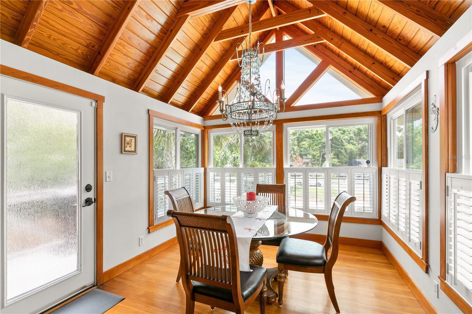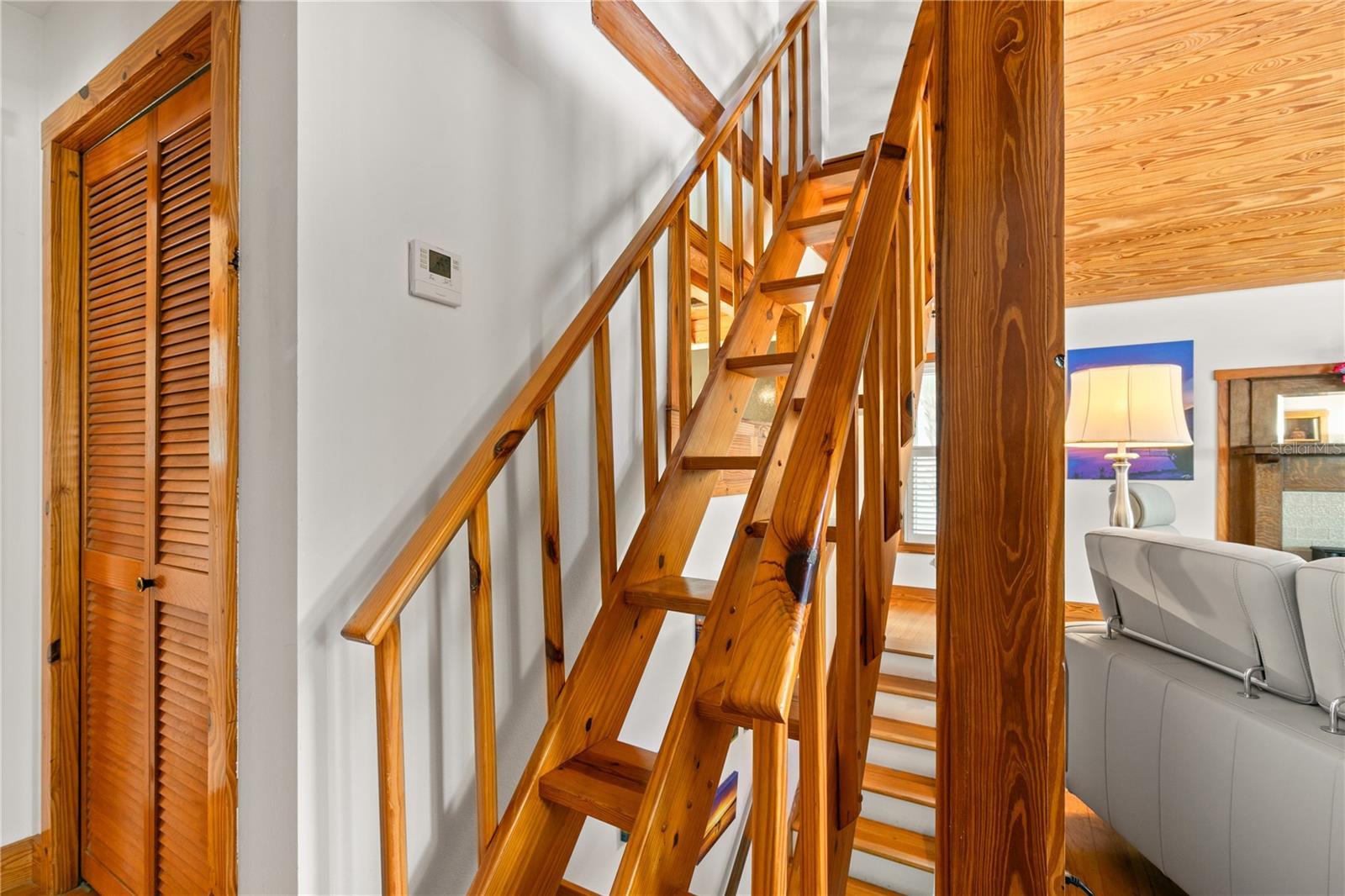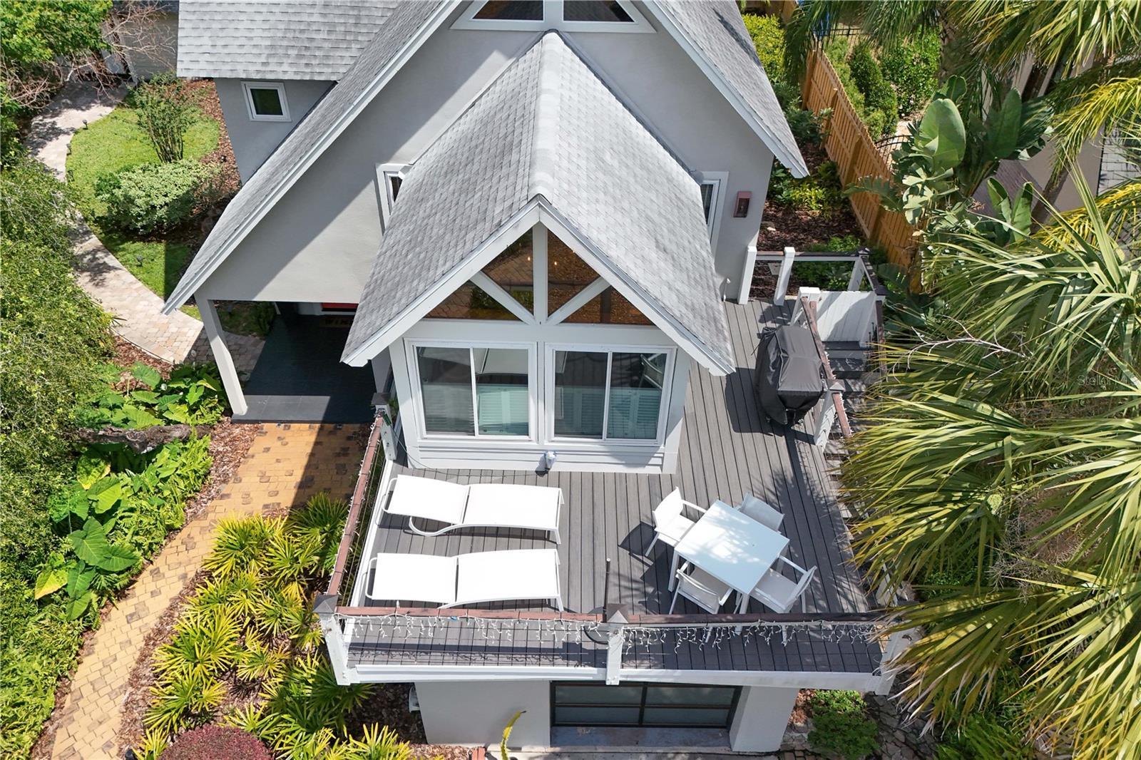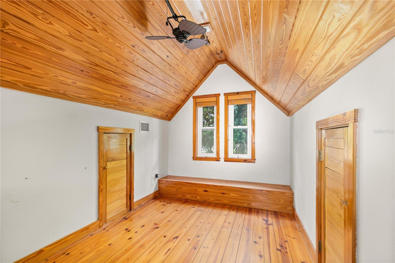 Under contract-accepting backup offers. Discover this treasure on the west side of Donnelly, near downtown Mount Dora. Lots of history and love went into creating this unique pool home, hidden in a very private setting. What started in 1948 as just a garage, the home evolved in the early 1990’s to be a unique custom-built primary home or a hide-a-way retreat second home or rental. What a find... and only a few blocks from downtown! The 2-story home with loft and a guest cottage has tree-top decking overlooking the gardens, with the pleasant sound of the fountain below. Your eye will be delighted by Custom-built cabinetry, shelving, wood floors, trim and ceilings & beams! Detailed craftsmanship & natural materials enhance the home's simple elegance. The unique floor plan offers a spacious primary suite with sky lights & special windows, plus a 3rd bedroom (or a den or office) and a laundry room on the ground level. From the bedroom, step out to the patio and gardens with a path to the pool and a short path winds to the 1/1 guest cottage - a welcoming retreat for family or friends. On the home's second floor, there is a well-planned eat-in kitchen and a cozy 2nd bedroom & bathroom. Living & Dining rooms with vaulted ceilings open to a spacious deck brushed by gentle breezes. High above the living room, a LOFT sparks the imagination - perhaps a studio for art, yoga or music! Throughout the home, natural light pours in through wide windows; picturesque views abound. Most recent updates were: Roofs were replaced in 2017, HVAC in 2019. Also in 2015 windows were replaced with energy-efficient double pane, a tankless hot water system was added, Central AC replaced, & new garage door. . Quartz countertops grace the laundry room and the kitchen. Kitchen features include: Subway tile back splash and stainless steel appliances along with a cozy nook for kitchen dining. The main dining room is surrounded by windows - wood pitched ceiling and a glass French door leading out to the deck. The 1/1 guest house (208sf) has tile floors, a mini-split AC system, a French door and a beautiful walk in shower that would make any guest want to stay. . Being just a few short blocks from downtown & Lake Dora, nearby are parks, lakeside walks and the many delights of historic downtown; walk to gallery openings, cafes and after-dinner concerts. You will love living in Mount Dora, known for its tree-lined streets and year around festivals on the shores of Lake Dora.