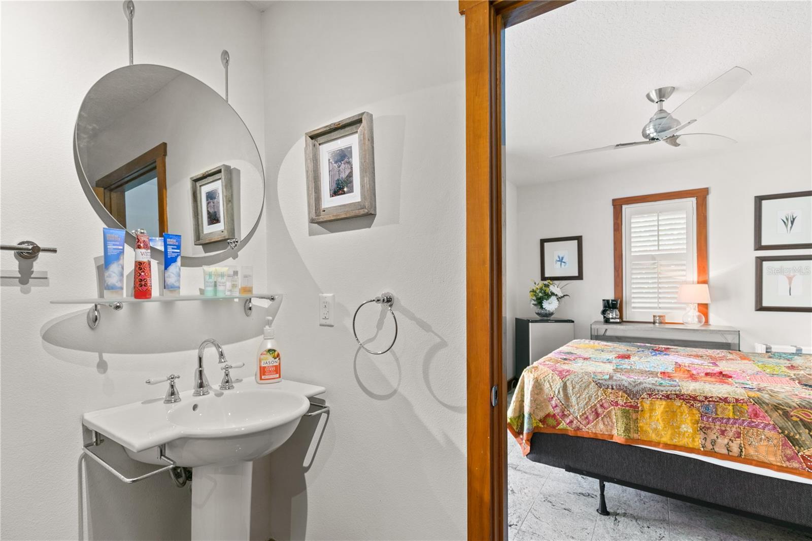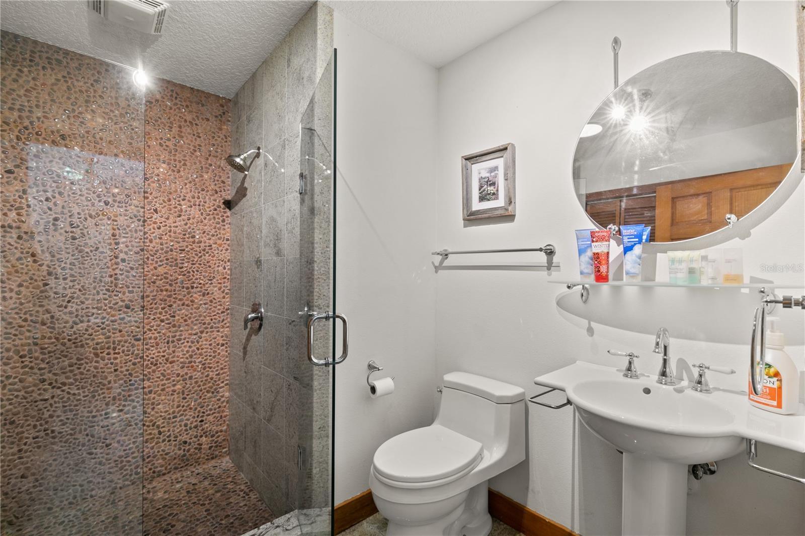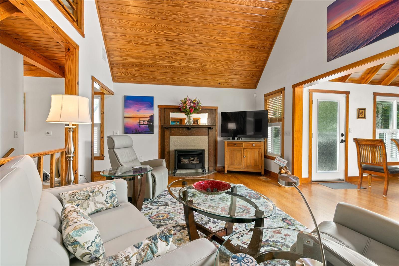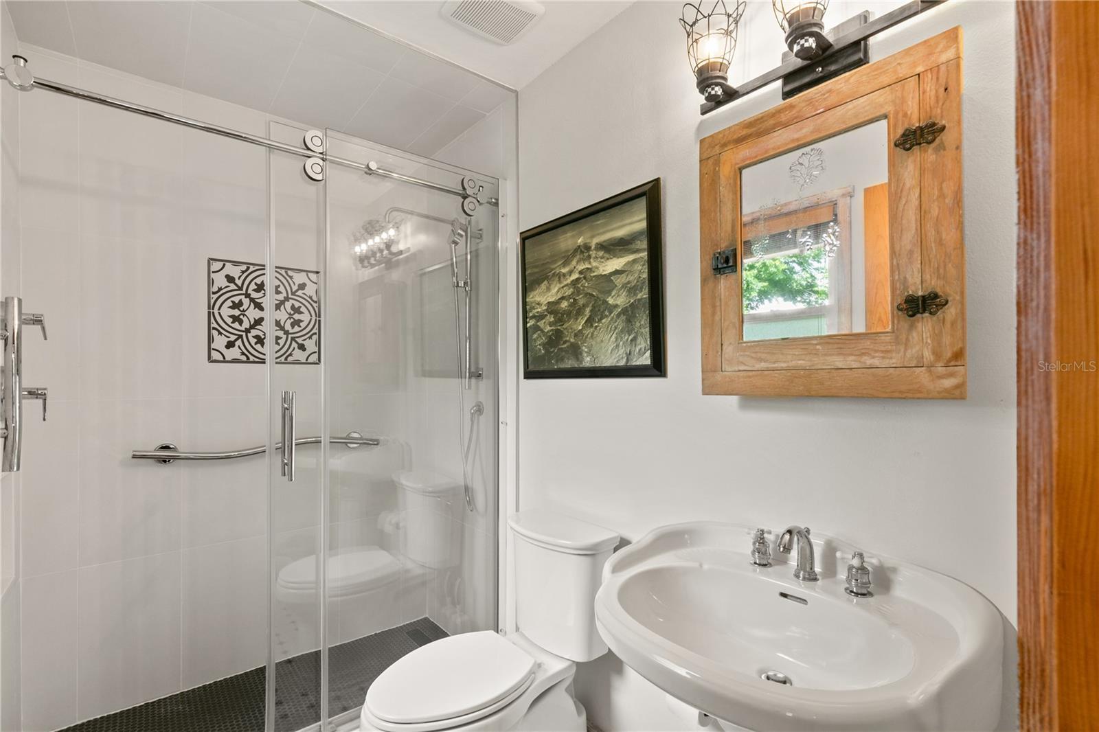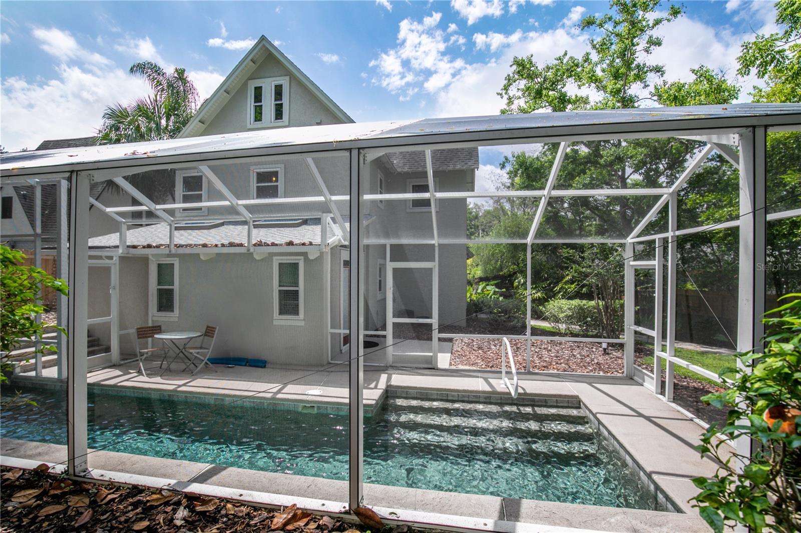 Under contract-accepting backup offers. Discover this treasure on the west side of Donnelly, near downtown Mount Dora. Lots of history and love went into creating this unique pool home, hidden in a very private setting. What started in 1948 as just a garage, the home evolved in the early 1990’s to be a unique custom-built primary home or a hide-a-way retreat second home or rental. What a find... and only a few blocks from downtown! The 2-story home with loft and a guest cottage has tree-top decking overlooking the gardens, with the pleasant sound of the fountain below. Your eye will be delighted by Custom-built cabinetry, shelving, wood floors, trim and ceilings & beams! Detailed craftsmanship & natural materials enhance the home's simple elegance. The unique floor plan offers a spacious primary suite with sky lights & special windows, plus a 3rd bedroom (or a den or office) and a laundry room on the ground level. From the bedroom, step out to the patio and gardens with a path to the pool and a short path winds to the 1/1 guest cottage - a welcoming retreat for family or friends. On the home's second floor, there is a well-planned eat-in kitchen and a cozy 2nd bedroom & bathroom. Living & Dining rooms with vaulted ceilings open to a spacious deck brushed by gentle breezes. High above the living room, a LOFT sparks the imagination - perhaps a studio for art, yoga or music! Throughout the home, natural light pours in through wide windows; picturesque views abound. Most recent updates were: Roofs were replaced in 2017, HVAC in 2019. Also in 2015 windows were replaced with energy-efficient double pane, a tankless hot water system was added, Central AC replaced, & new garage door. . Quartz countertops grace the laundry room and the kitchen. Kitchen features include: Subway tile back splash and stainless steel appliances along with a cozy nook for kitchen dining. The main dining room is surrounded by windows - wood pitched ceiling and a glass French door leading out to the deck. The 1/1 guest house (208sf) has tile floors, a mini-split AC system, a French door and a beautiful walk in shower that would make any guest want to stay. . Being just a few short blocks from downtown & Lake Dora, nearby are parks, lakeside walks and the many delights of historic downtown; walk to gallery openings, cafes and after-dinner concerts. You will love living in Mount Dora, known for its tree-lined streets and year around festivals on the shores of Lake Dora.