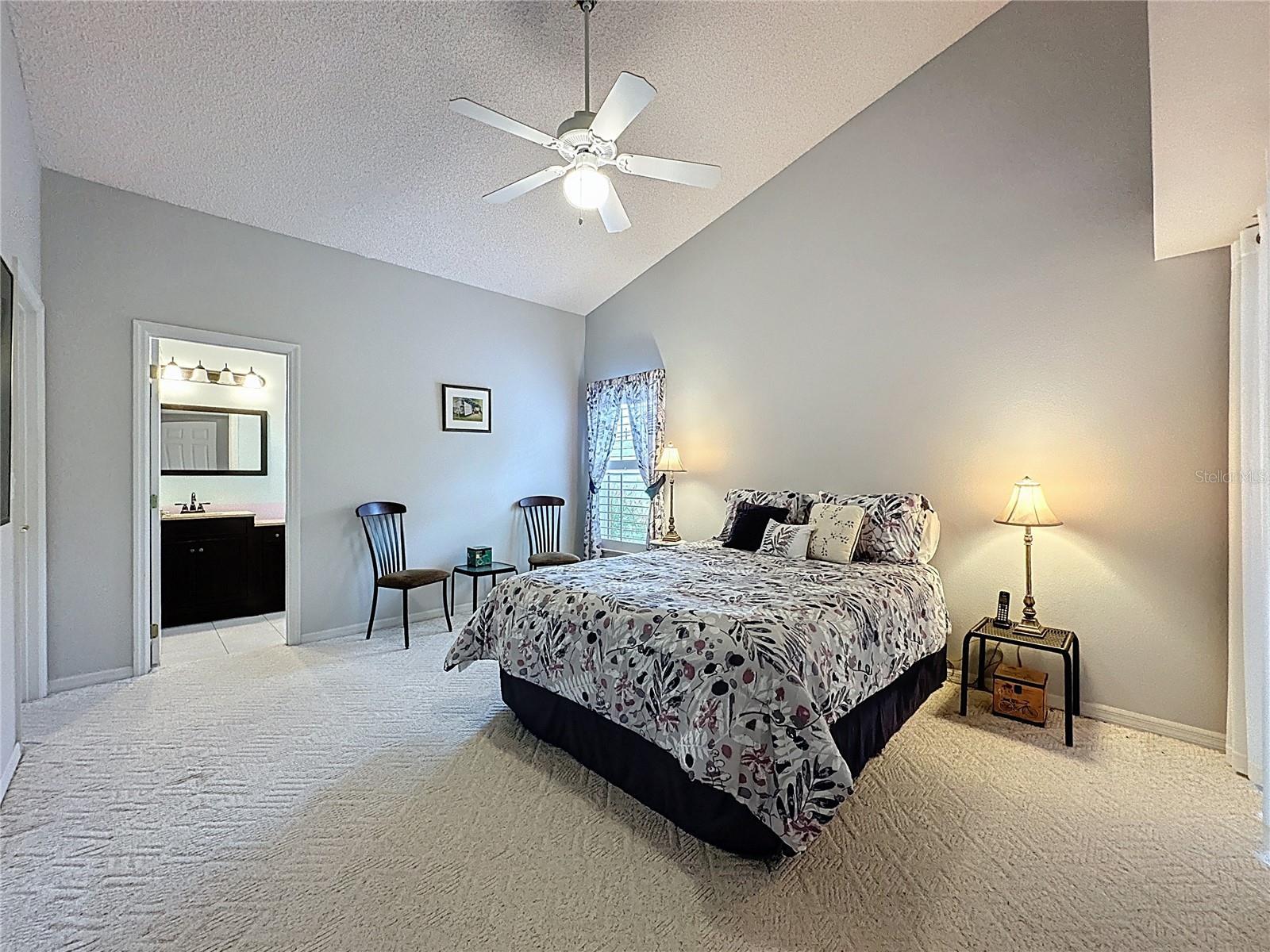 - Cathedral Ceiling(s), Ceiling Fans(s), Eat-in Kitchen, High Ceilings, Kitchen/Family Room Combo, Living Room/Dining Room Combo, Open Floorplan, Primary Bedroom Main Floor, Split Bedroom, Walk-In Closet(s), Window Treatments