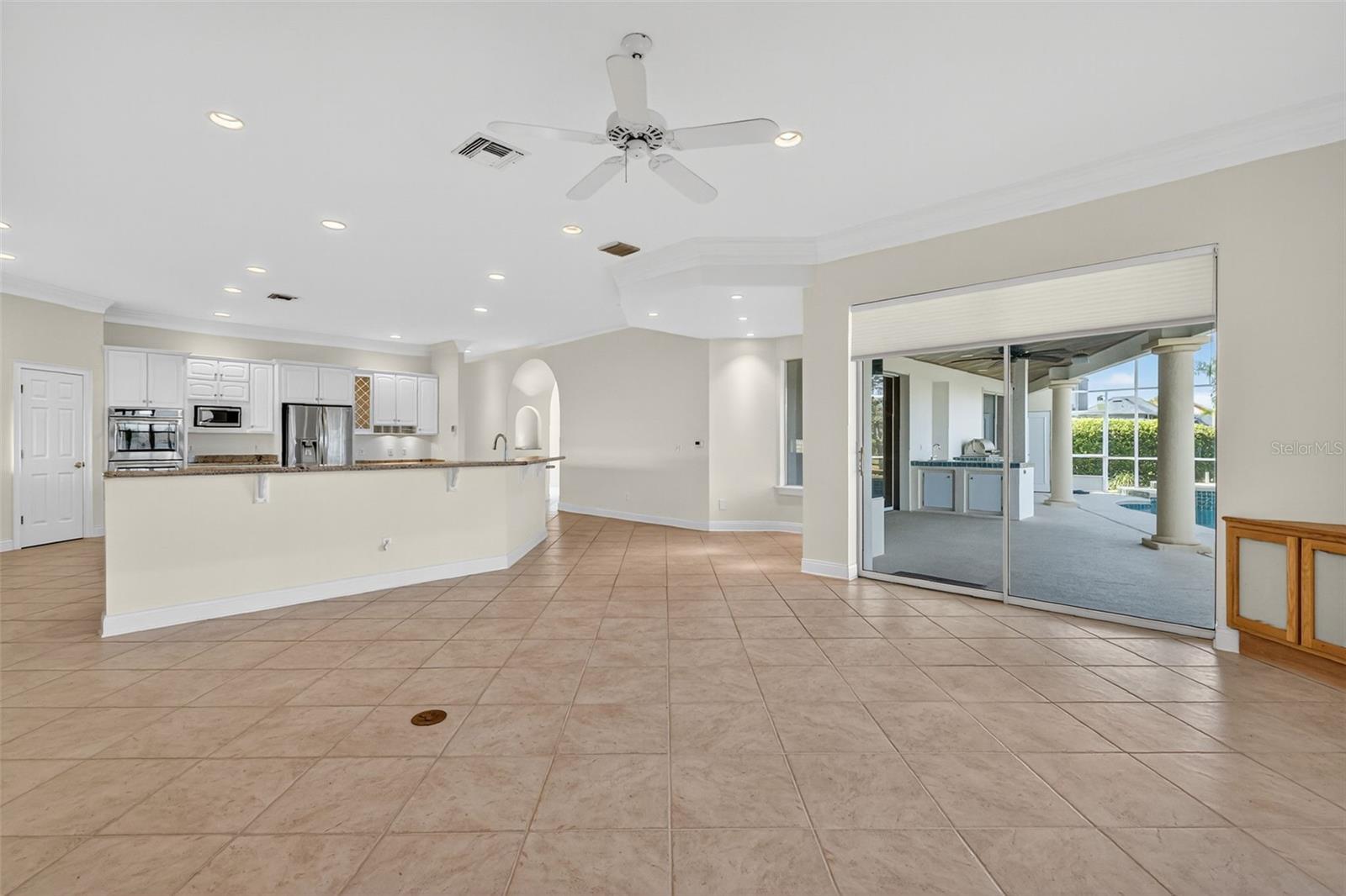 - Cathedral Ceiling(s), Ceiling Fans(s), Central Vaccum, Crown Molding, Eat-in Kitchen, High Ceilings, Kitchen/Family Room Combo, PrimaryBedroom Upstairs, Solid Surface Counters, Solid Wood Cabinets, Walk-In Closet(s), Wet Bar